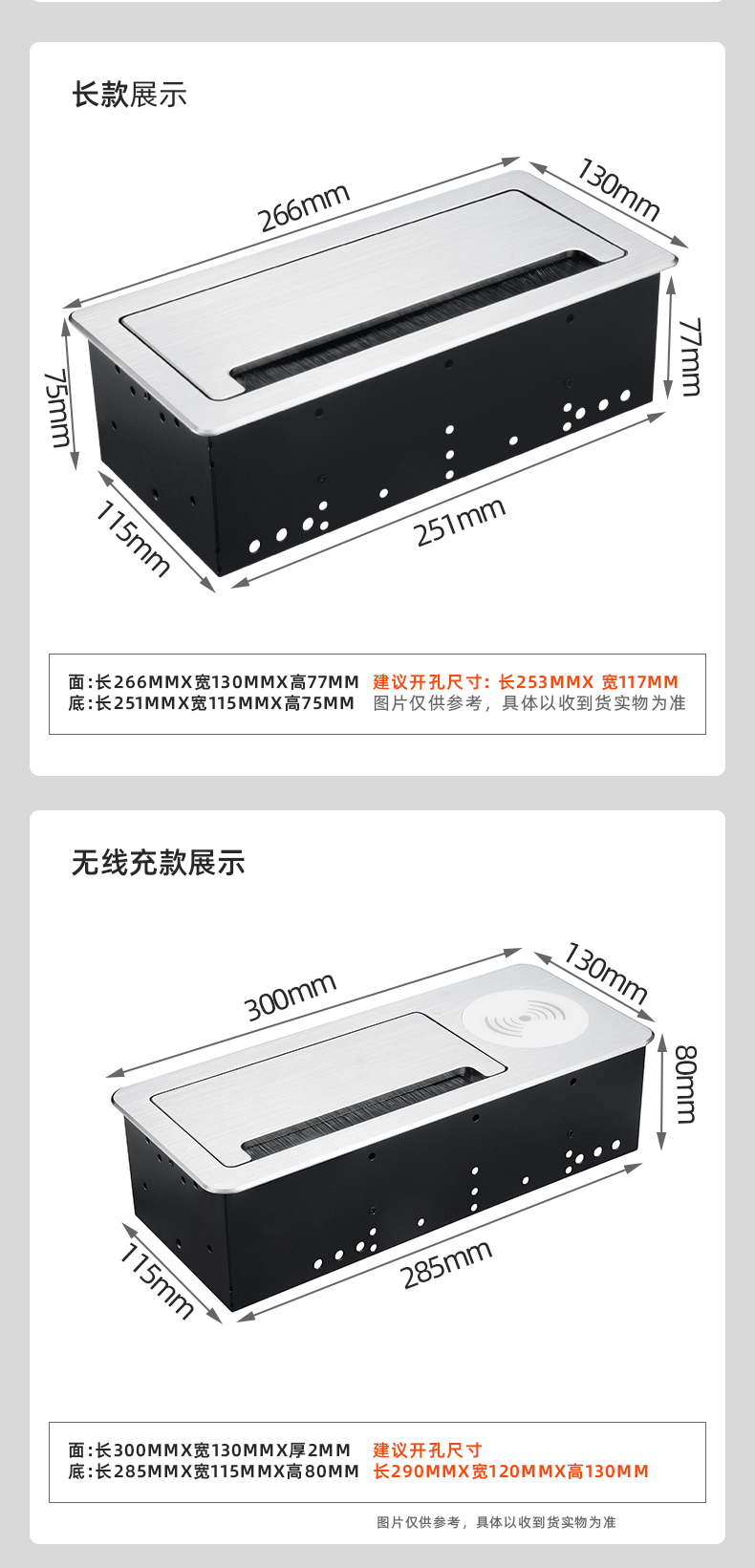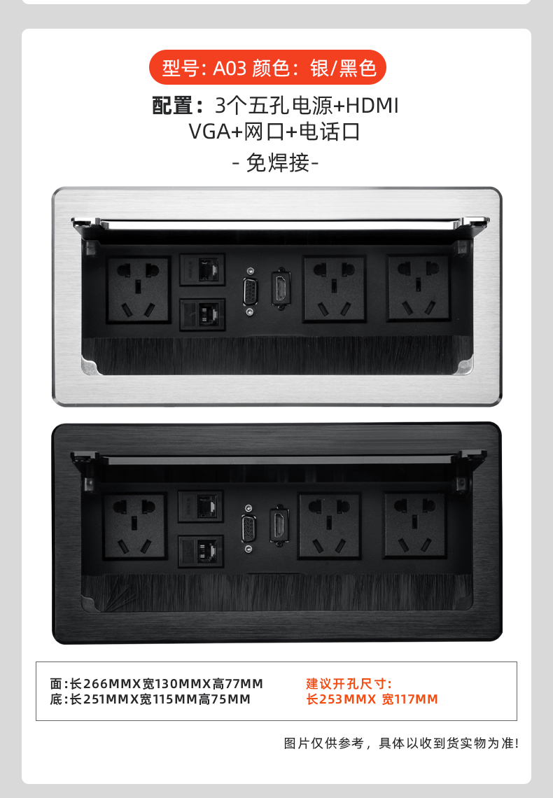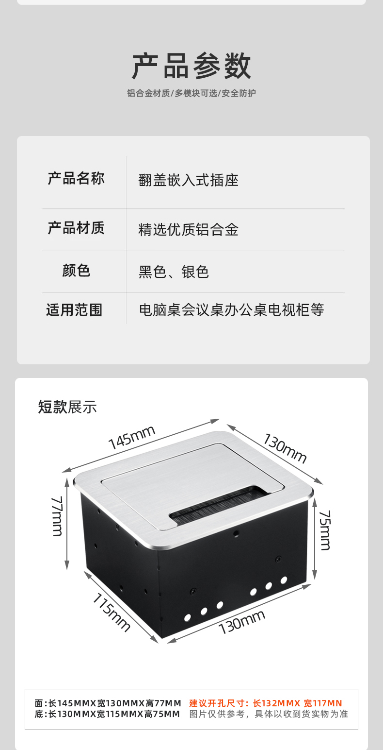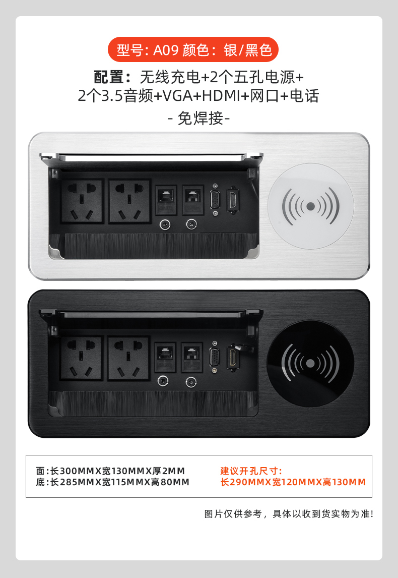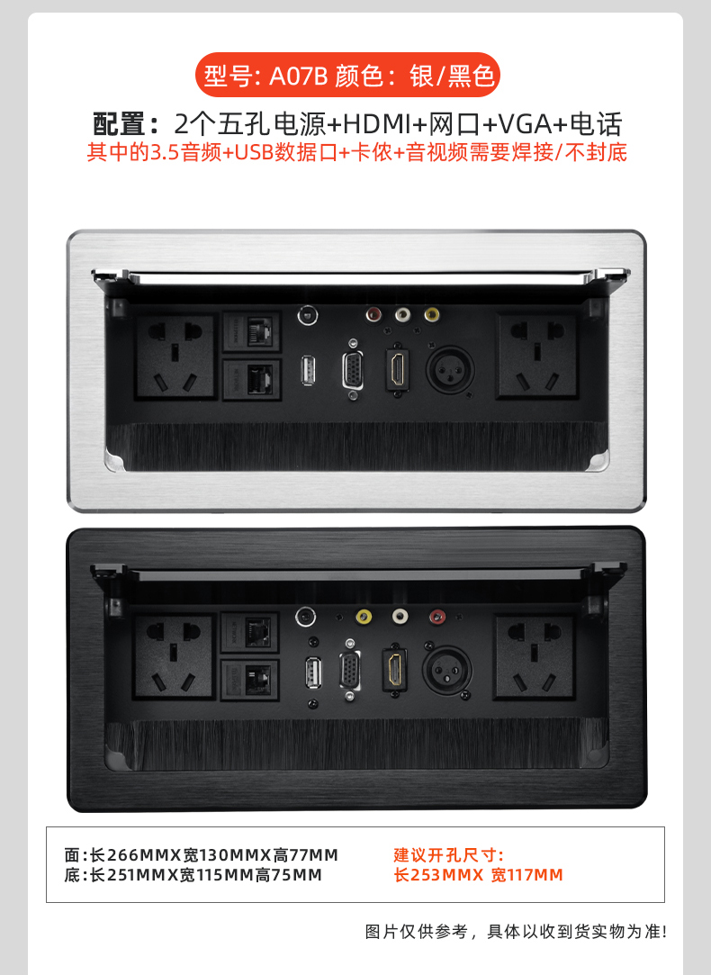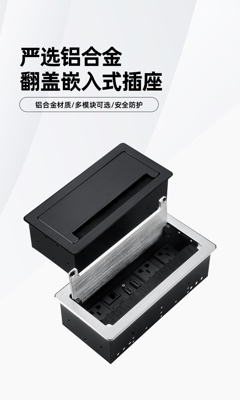 Flip multi-function office desk conference desk wire box multimedia power desktop socket hidden embedded aluminum alloy