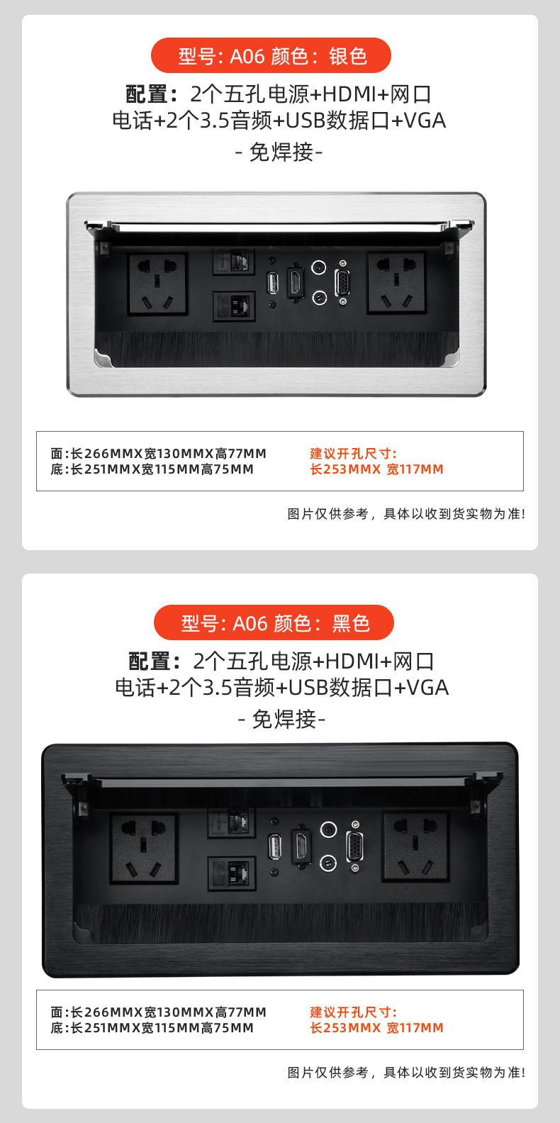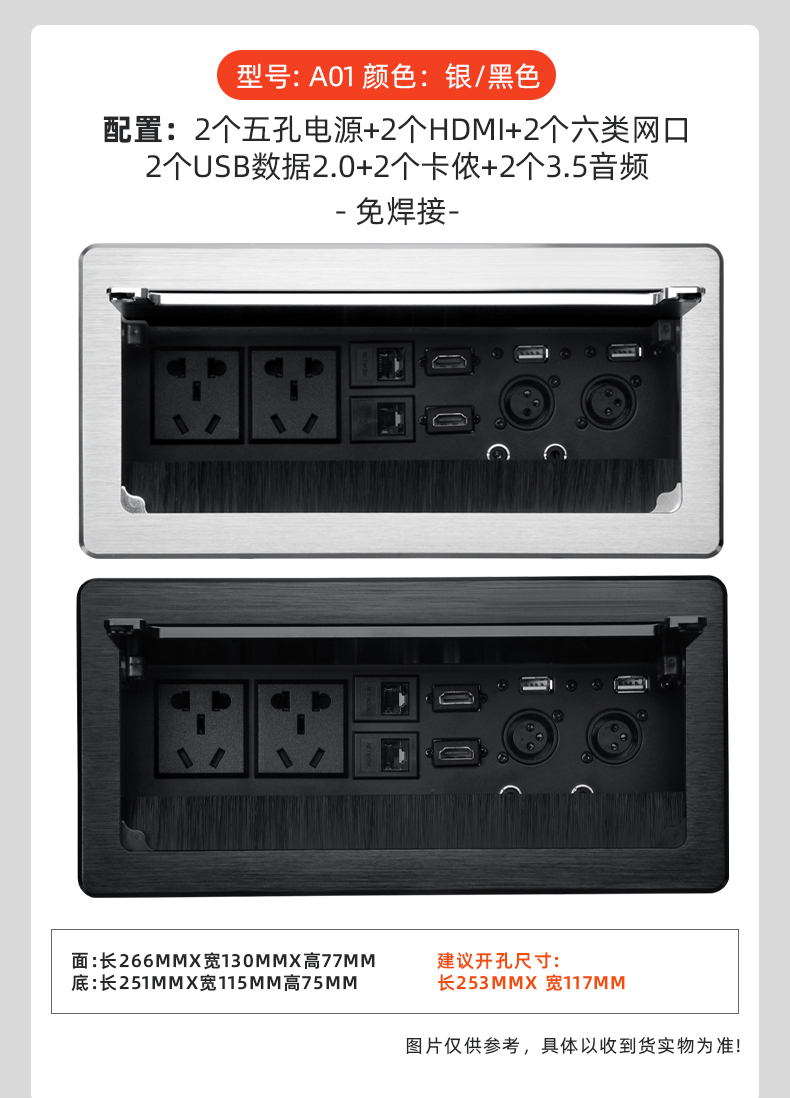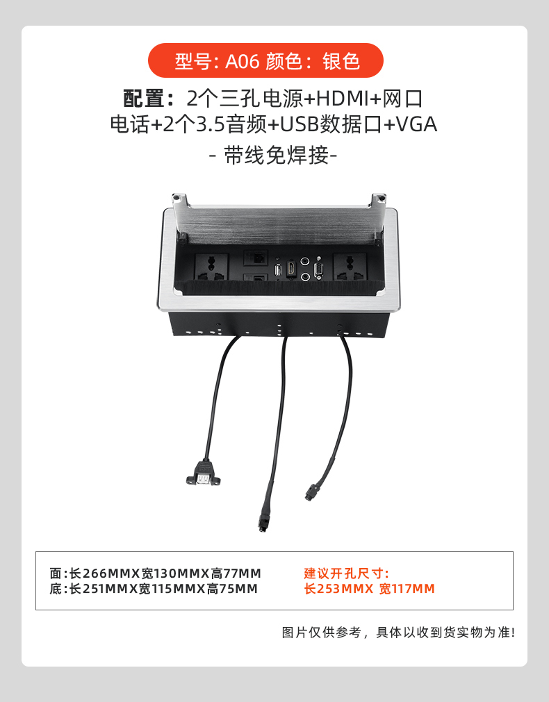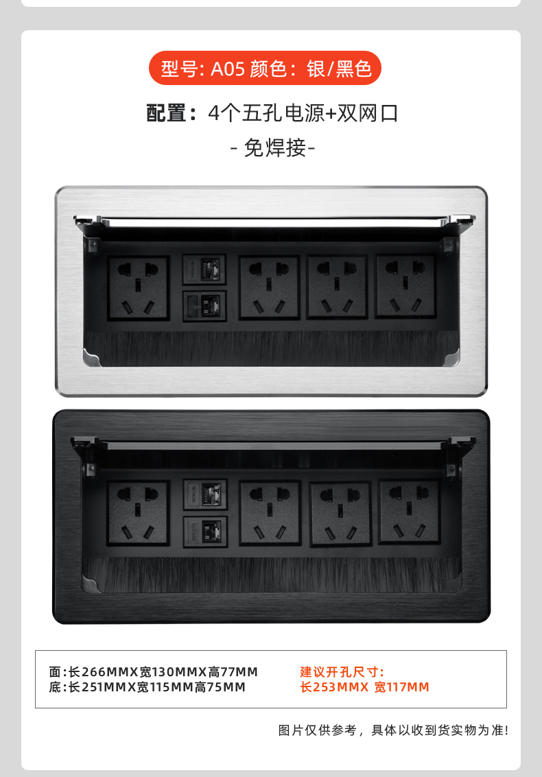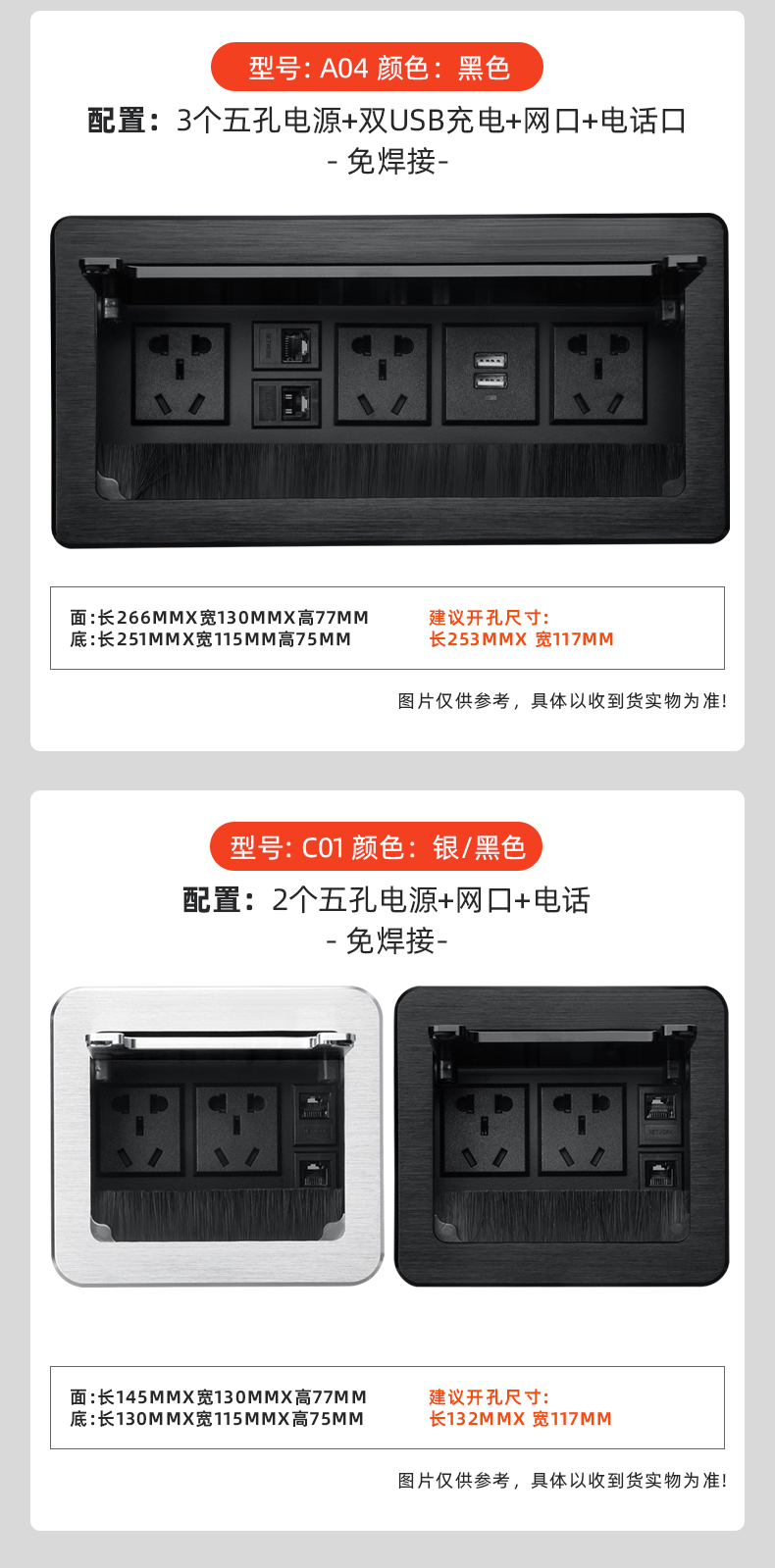 Flip multi-function office desk conference desk wire box multimedia power desktop socket hidden embedded aluminum alloy