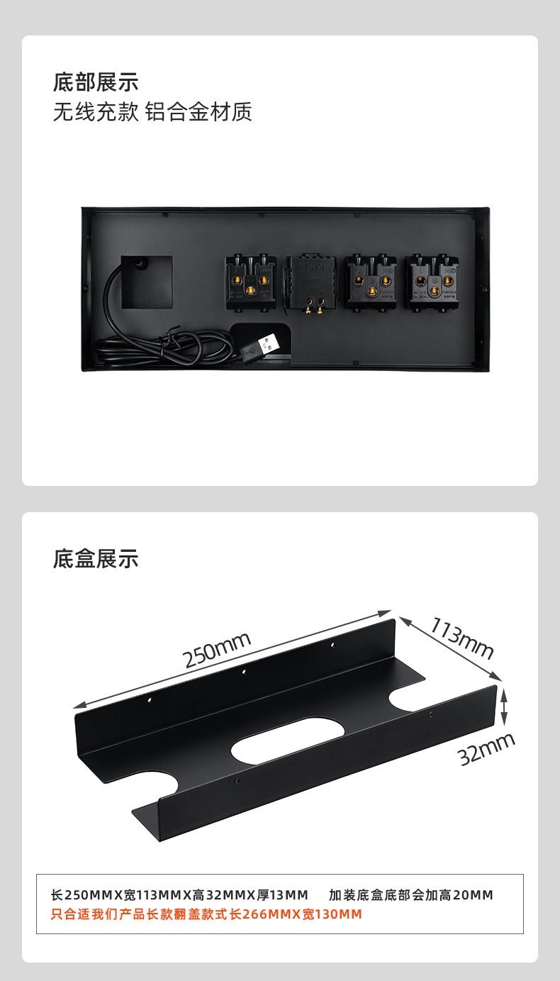 Sort by color Long black brushed-A01 (no welding required),Long silver brushed-A01 (no welding required),Long black brushed-A02 (no welding required),Long silver brushed-A02 (no welding required),Long black brushed-A03 (no welding required),Long silver brushed-A03 (no welding required),Long black brushed-A04 (no welding required),Long silver brushed-A04 (no welding required),Long black brushed-A05 (no welding required),Long silver brushed-A05 (no welding required),Long black brushed-A06 (no welding required),Long silver brushed-A06 (no welding required),Long black brushed-A07 (no welding required),Long silver brushed-A07 (no welding required),Long black brushed-A07B (several functions require welding),Long silver wire drawing-A07B (several functions require welding),Wireless charging model black brushed-A08 (no welding required),Wireless charging model silver brushed-A08 (no welding required),Wireless charging model black brushed-A09 (no welding required),Wireless charging model silver brushed-A09 (no welding required),Short style black brushed-C01 (no welding required),Short silver brushed-C01 (no welding required),Short style black brushed-C02 (no welding required),Short silver brushed-C02 (no welding required),Short black brushed-C03 (no welding required),Short silver brushed-C03 (no welding required),The bottom cover is only suitable for the installation of our long clamshell 266*130mm