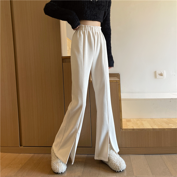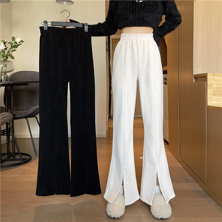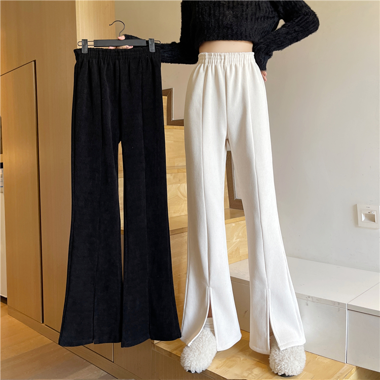 Extra Large Size 1150kg Corduroy Thickened Casual Straight Pants for Women, Plus-Size mm Wide-Leg Slit Flared Long Pants