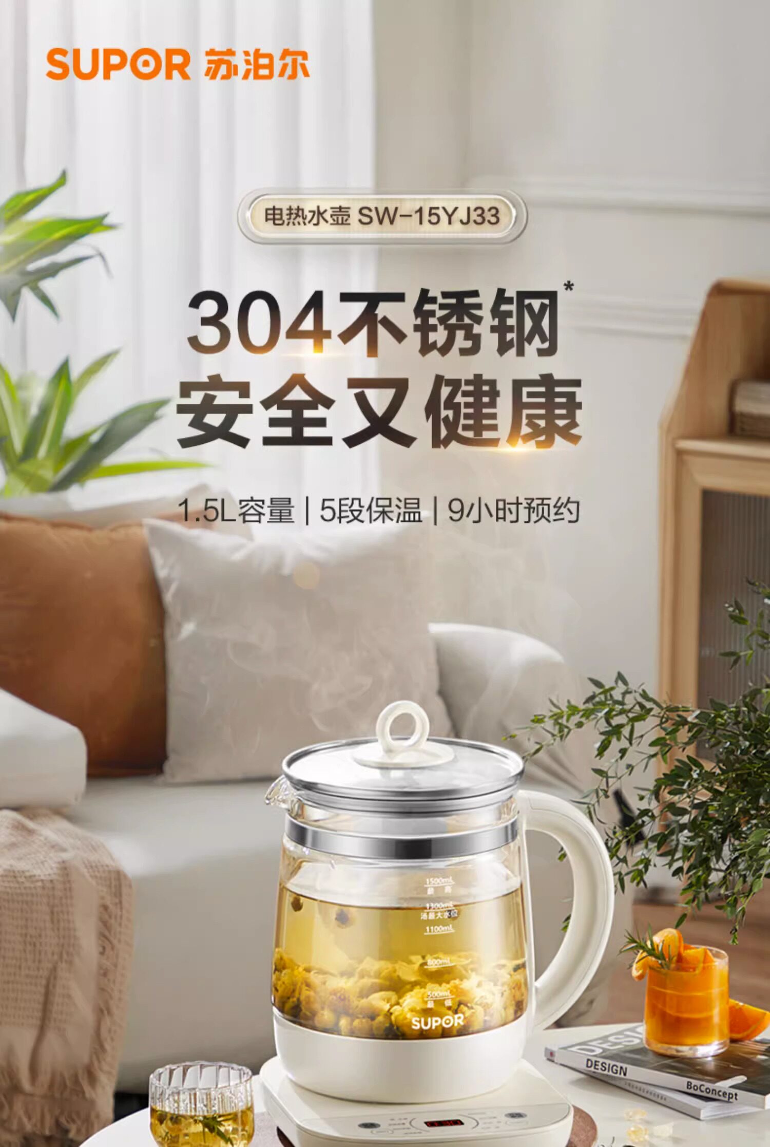 Supor Electric Kettle for Home Use, Constant Temperature Electric Kettle, Automatic Insulation, Integrated Tea Brewing, Health-Preserving Kettle