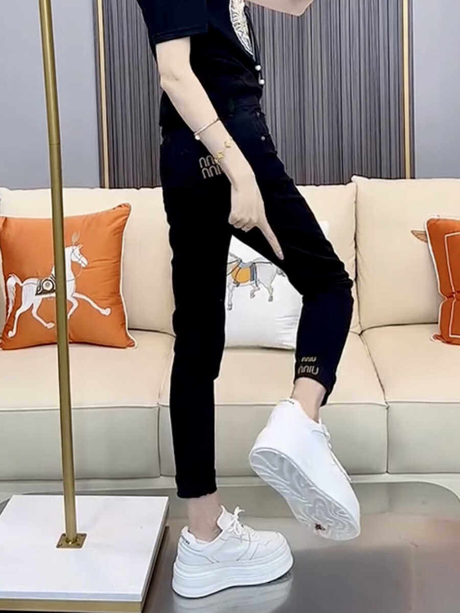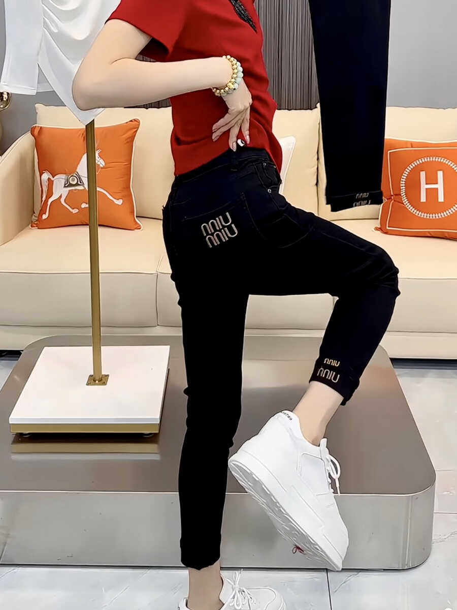 Plus Size Women's Retro High-Waisted Skinny Jeans, New Autumn Style, Plus Size Stretchy Tight Pencil Cropped Pants