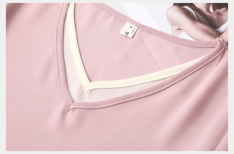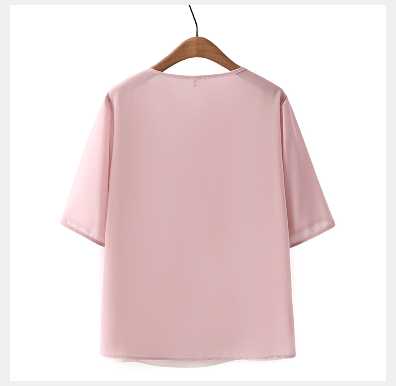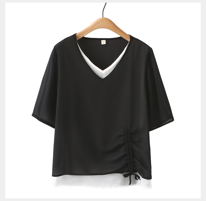 Plus size fat mom summer dress fake two-piece chiffon shirt top loose fashionable age-reducing V-neck short-sleeved T-shirt for women 200Jin Jin is equal to 0.5 kg