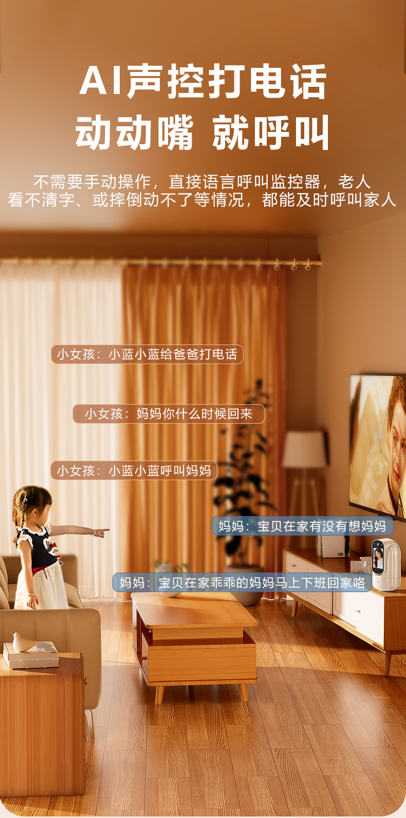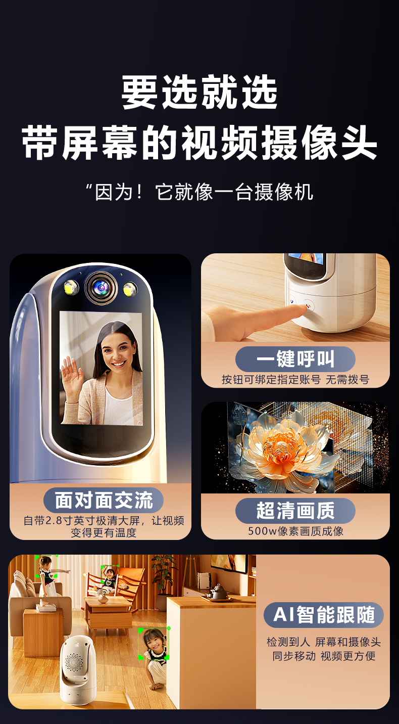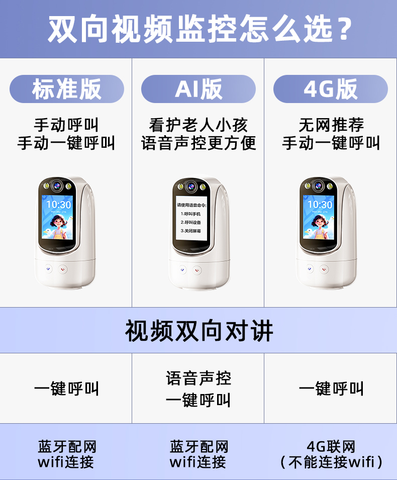 Camera 360 Degrees Two-Way Video Phone for the Elderly For Home Indoor Night Vision Intercom Mobile Phone Remote Monitoring