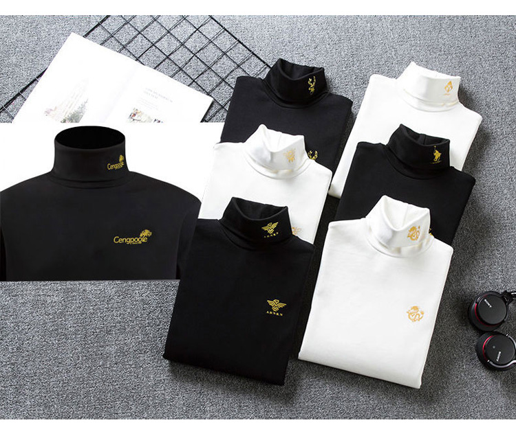 New Autumn and Winter Velvet Thickeneded Men's Sweatshirt Long-Sleeved Clothes for Young and Middle-Aged People Turtleneck Thermal Intimates with Bottoming Top