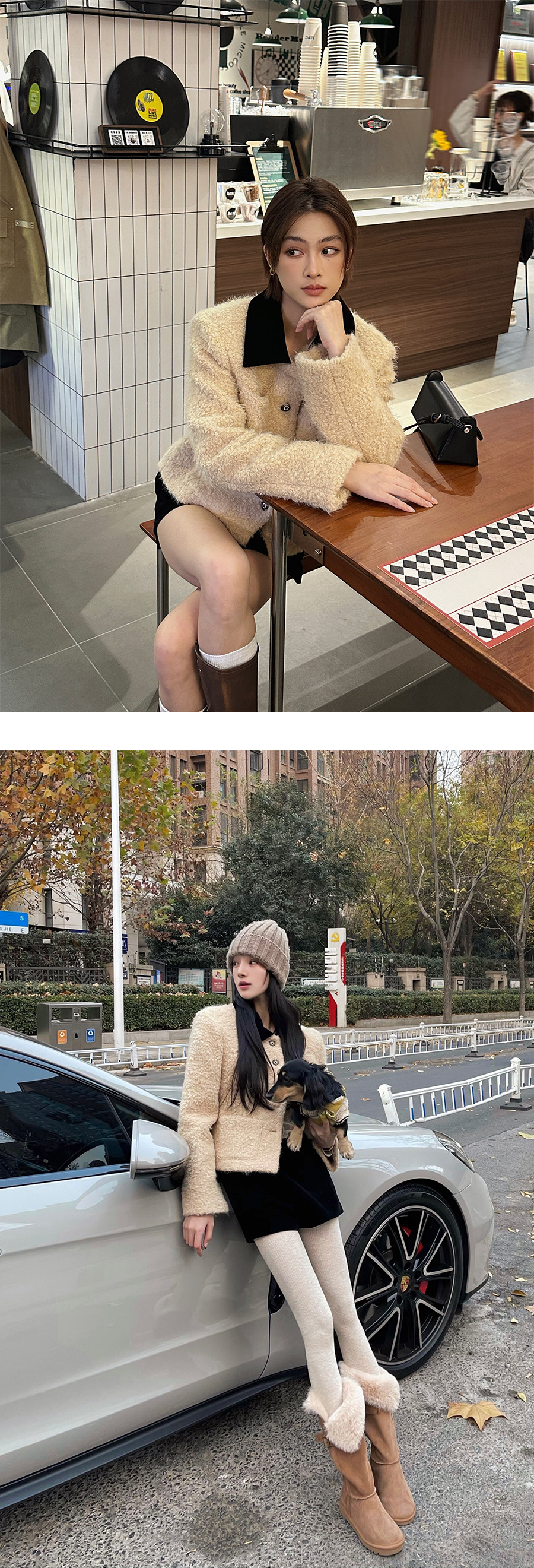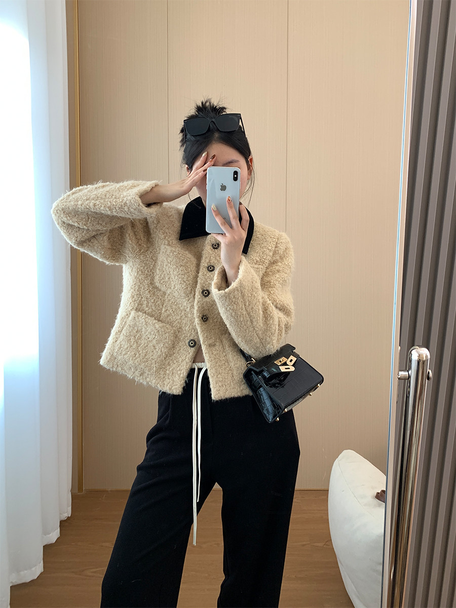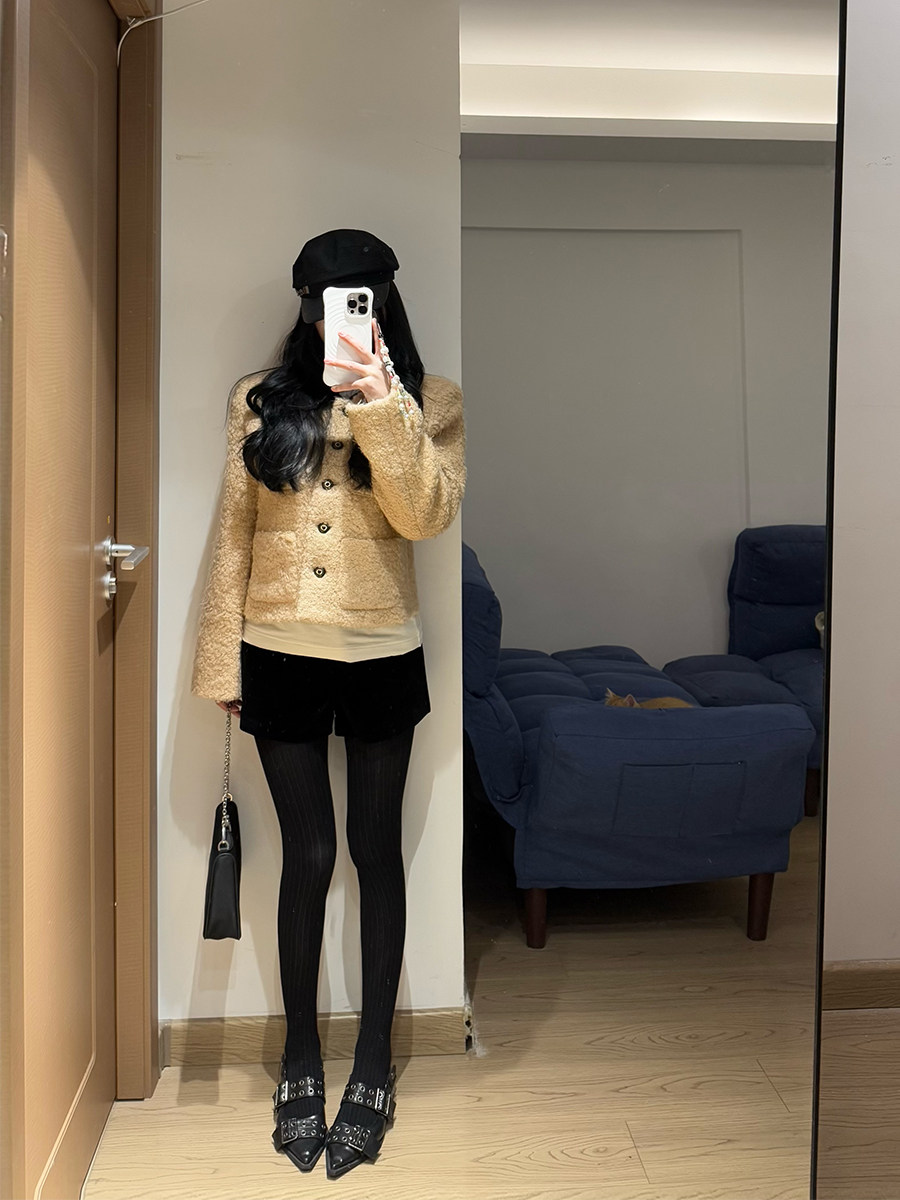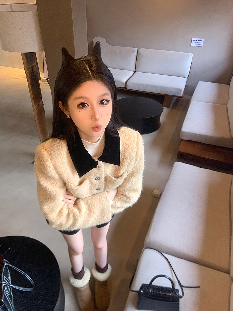[Little Relative]Fulffy Mei Mei 2025 Autumn/Winter Women's New Miu-Style Brown Lapel Lamb Wool Coat