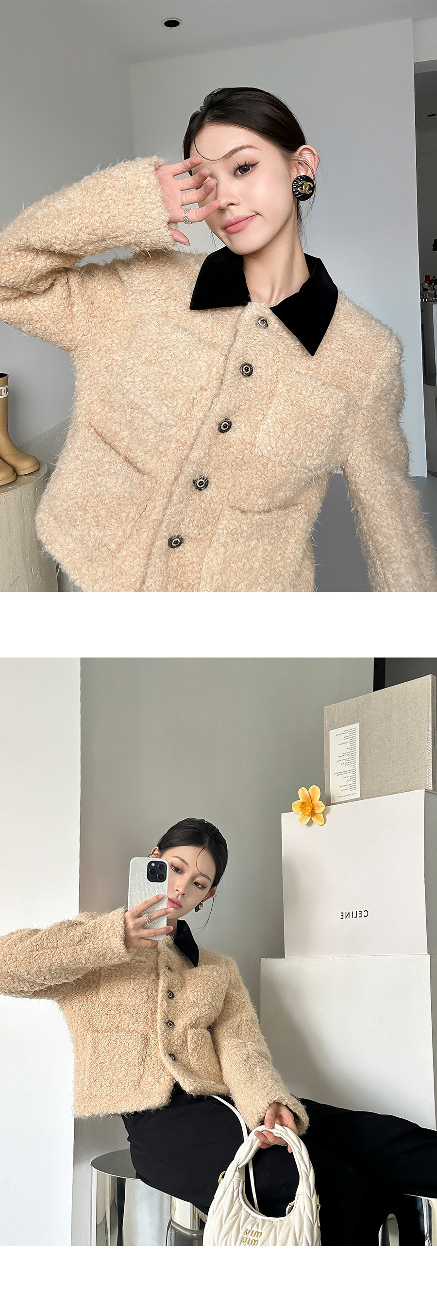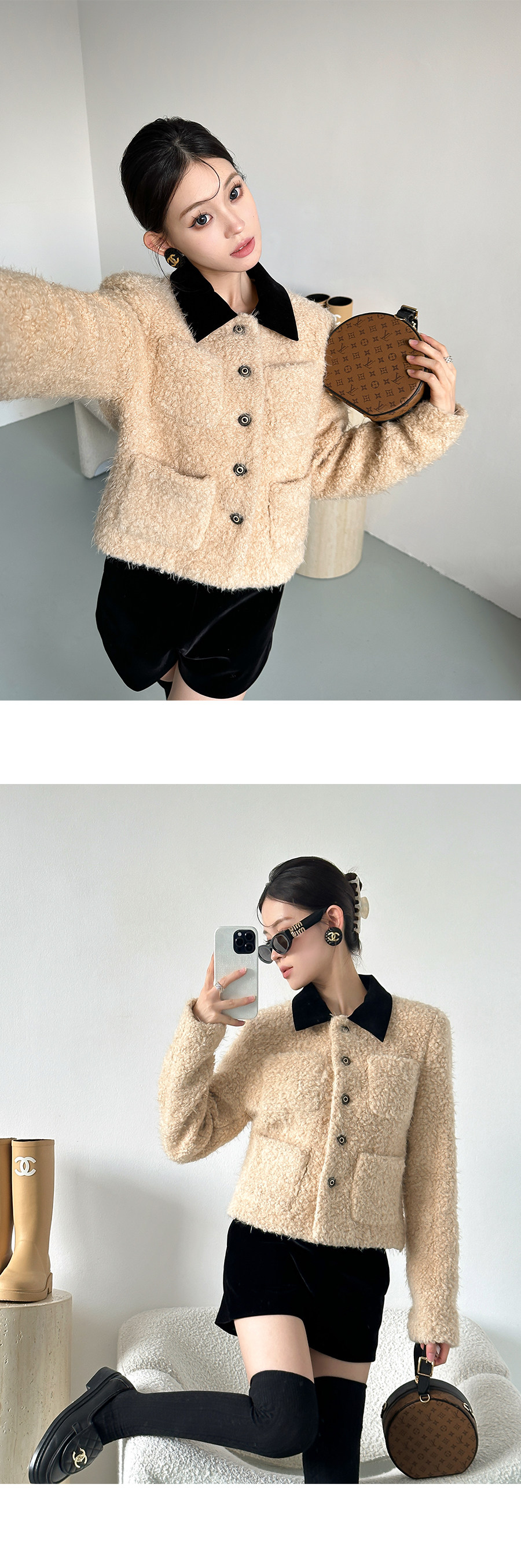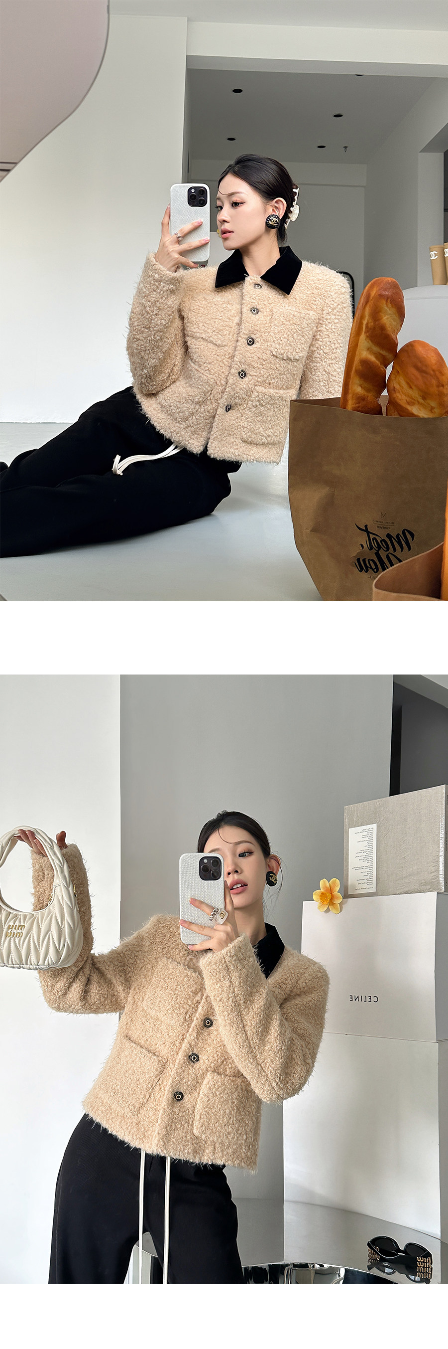 [Little Relative]Fulffy Mei Mei 2025 Autumn/Winter Women's New Miu-Style Brown Lapel Lamb Wool Coat