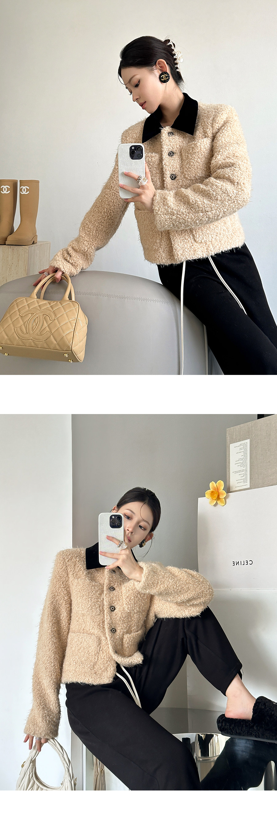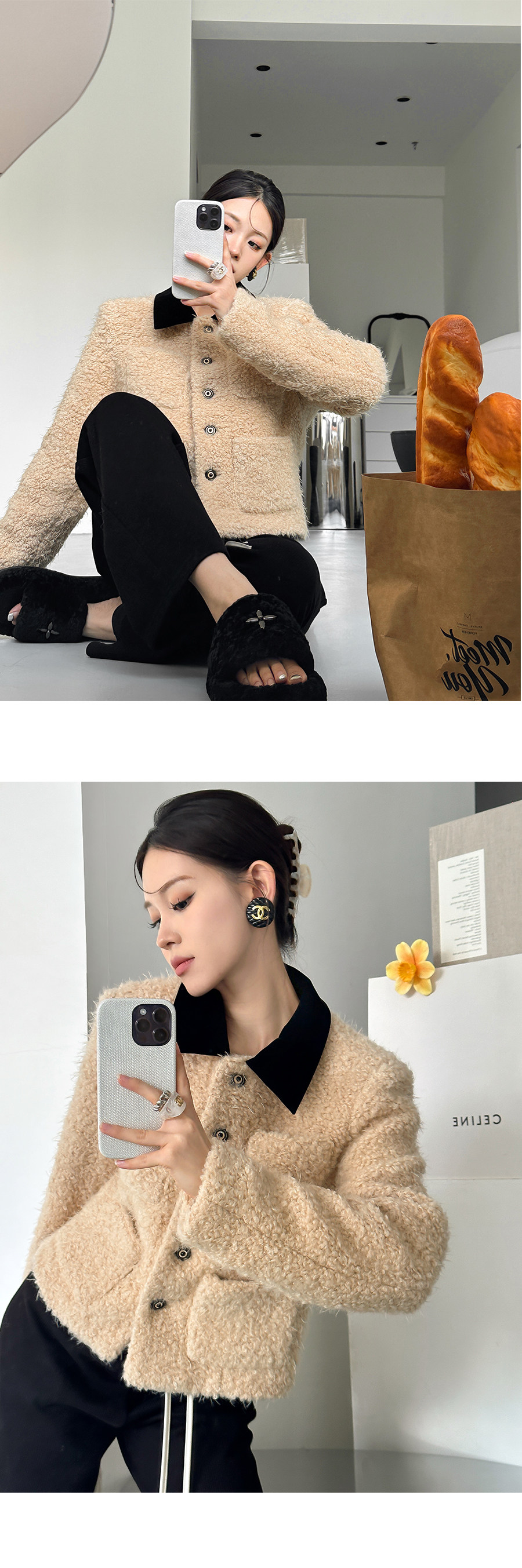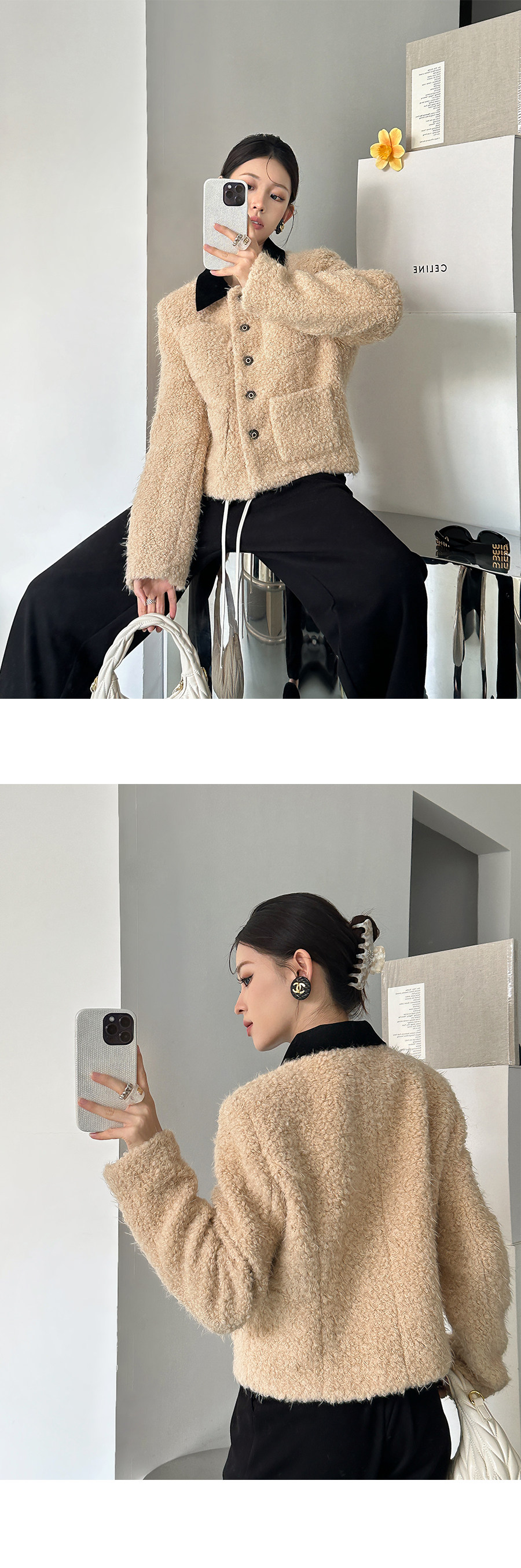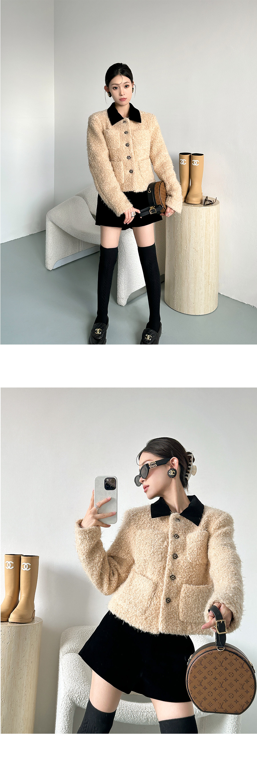 [Little Relative]Fulffy Mei Mei 2025 Autumn/Winter Women's New Miu-Style Brown Lapel Lamb Wool Coat