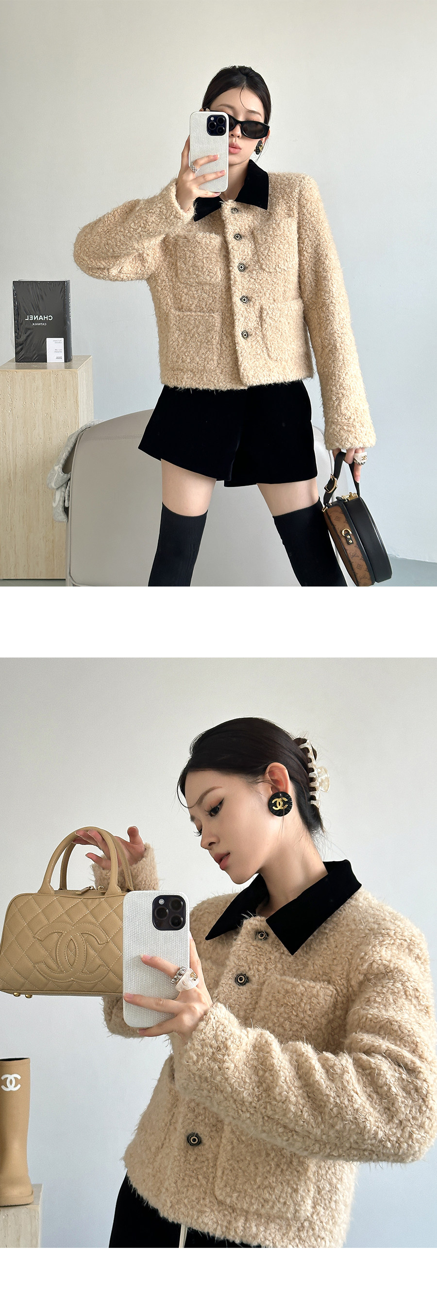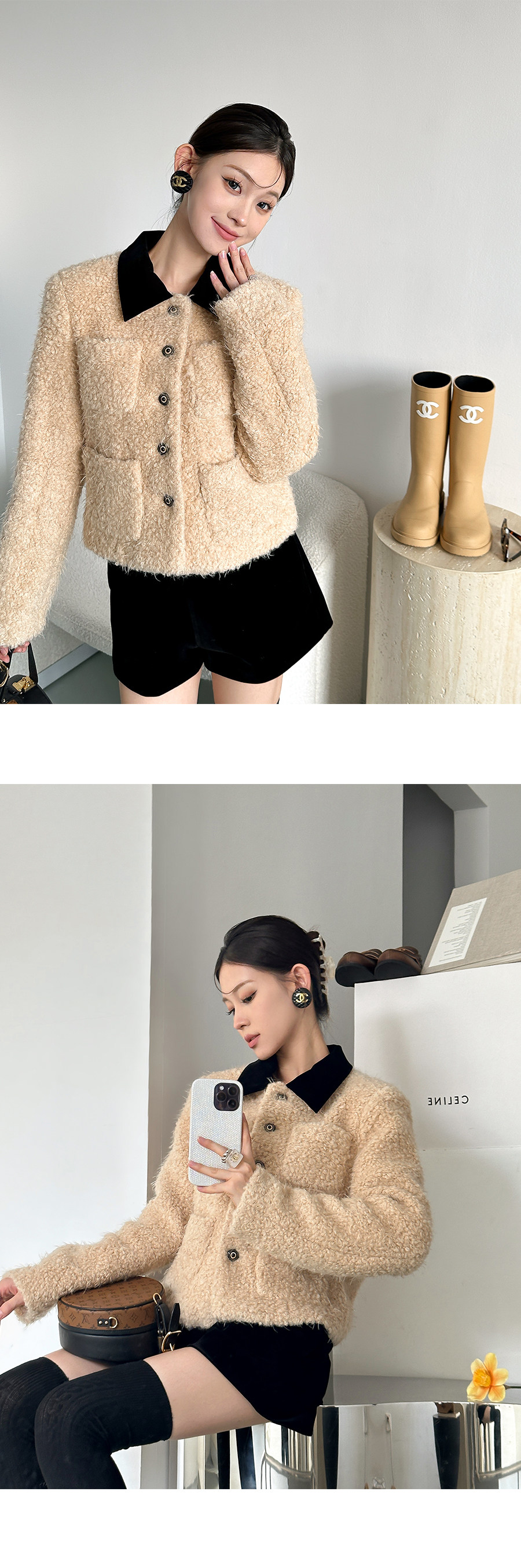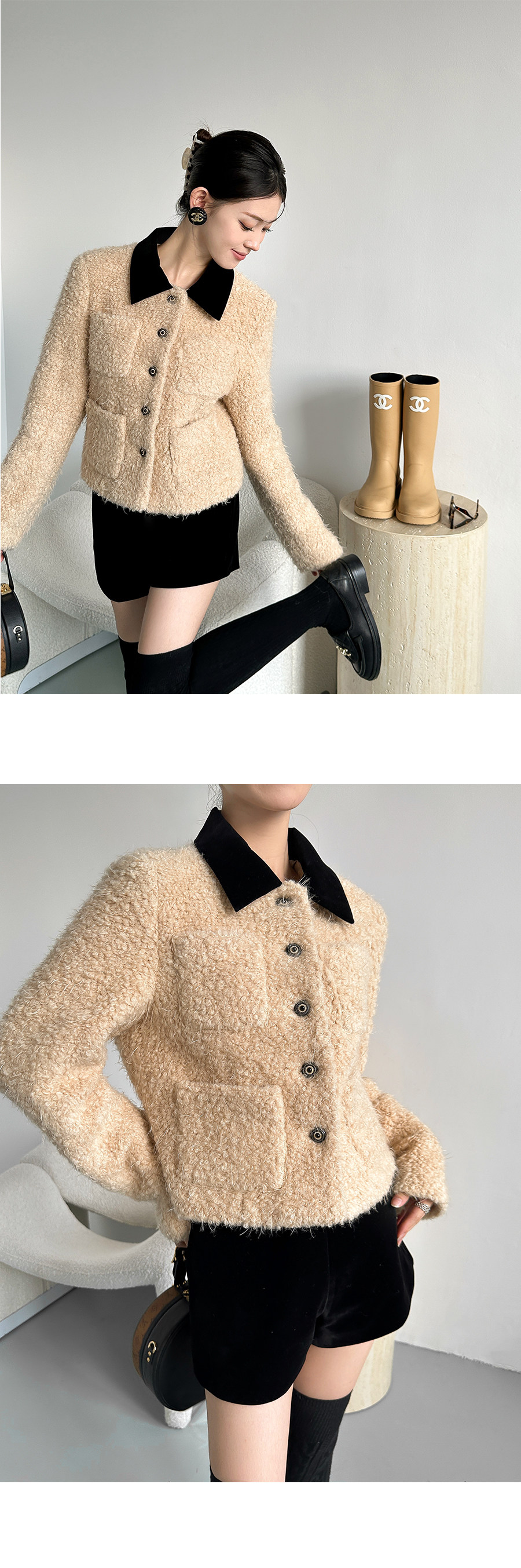 Color Classification Lamb Brown,Velvet Black Shorts