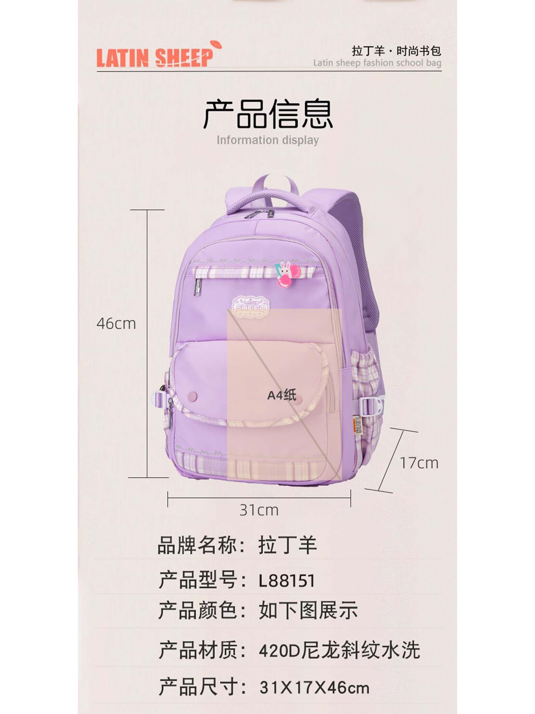 Latin sheep schoolbag clearance suitable for 4th, 5th and 6th grade junior high school and high school spine protective light waterproof women's backpack