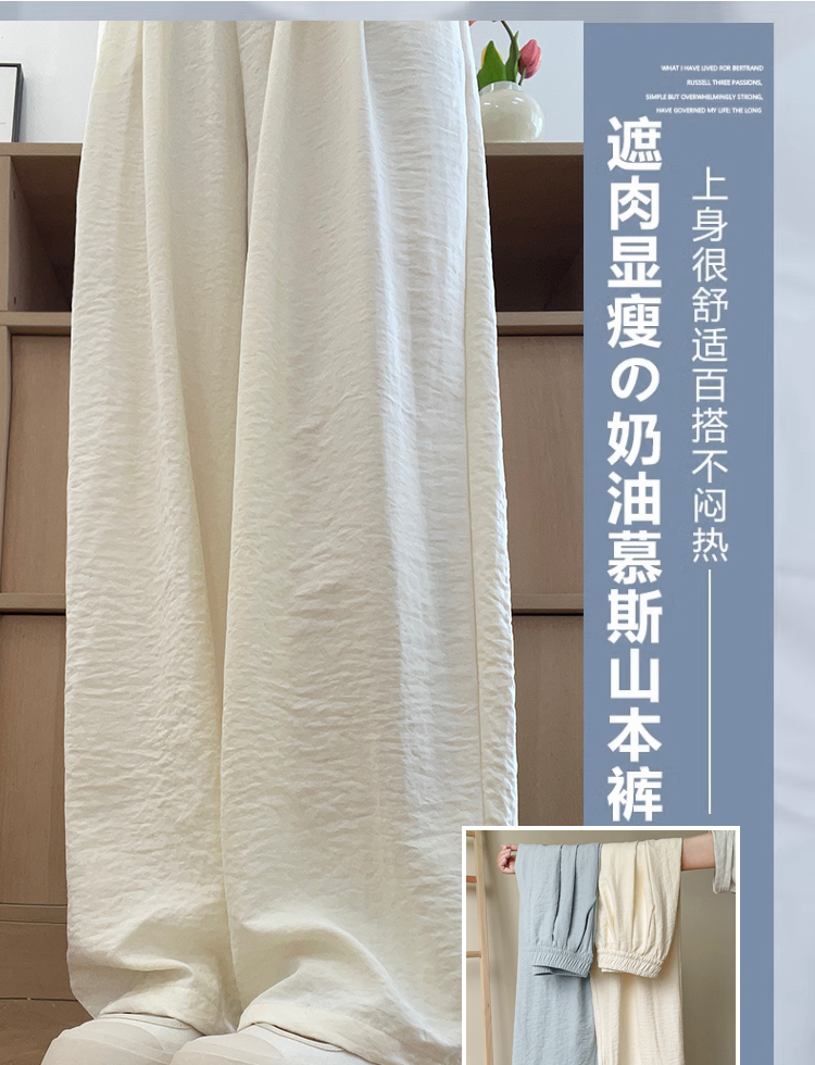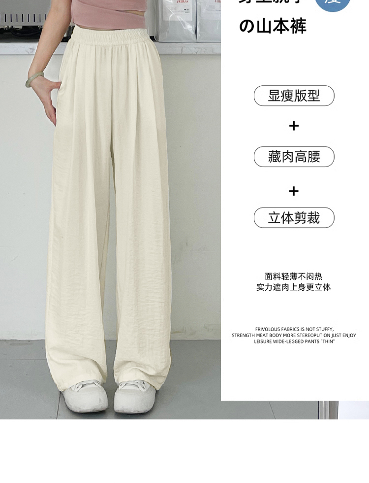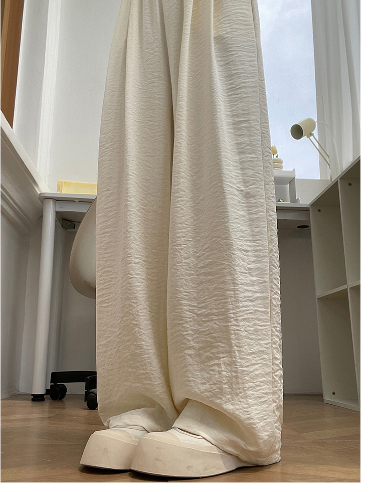 White Lazy-Style Milk Pants for Women, Summer Thin 2025 New High-Waisted Drape Texture Yamamoto Ice Silk Wide-Leg Pants