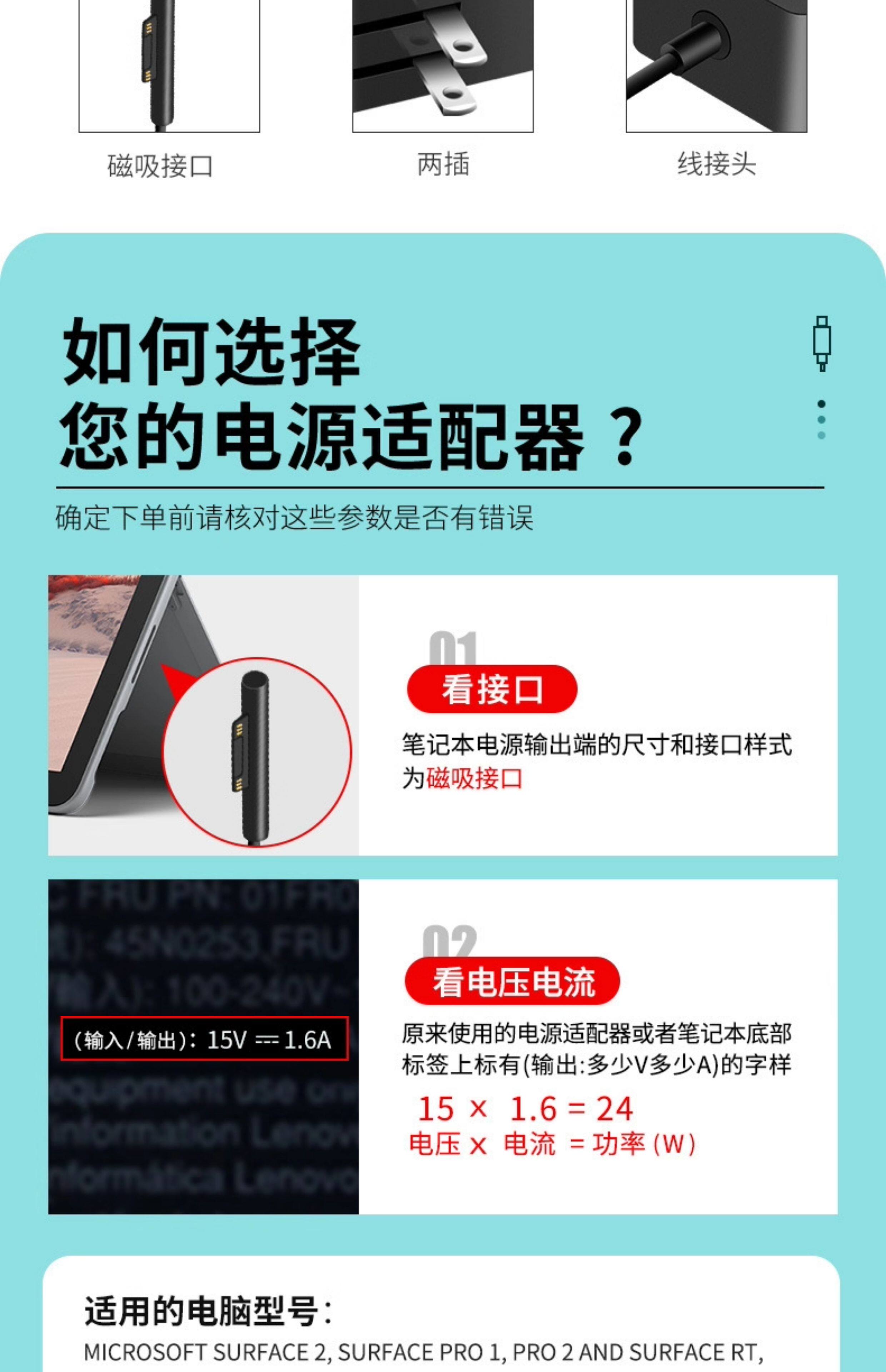 Color Classification Suitable for Microsoft Laptops●Power Adapter●24W Black