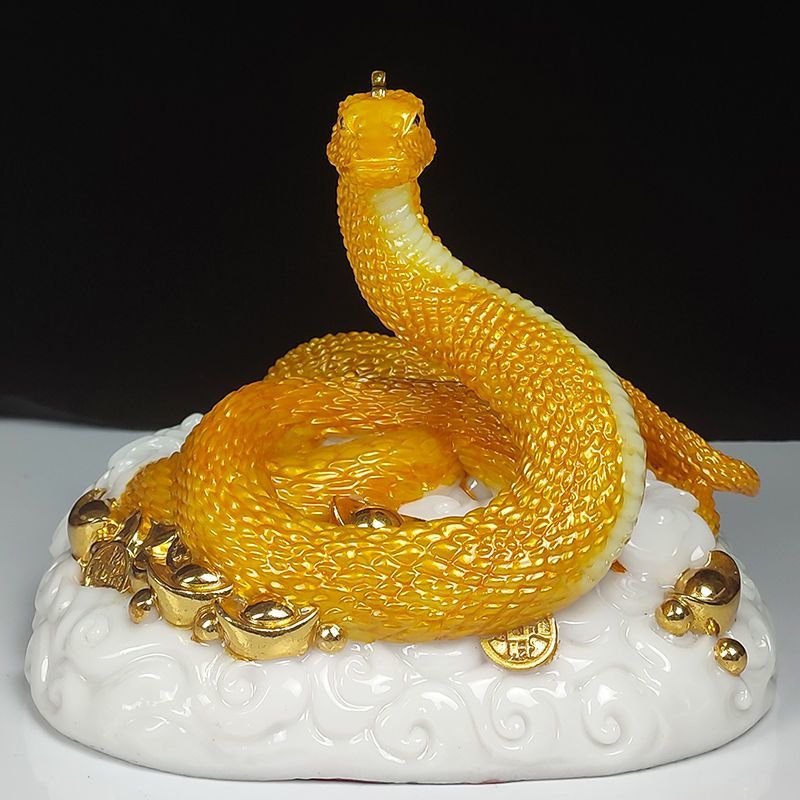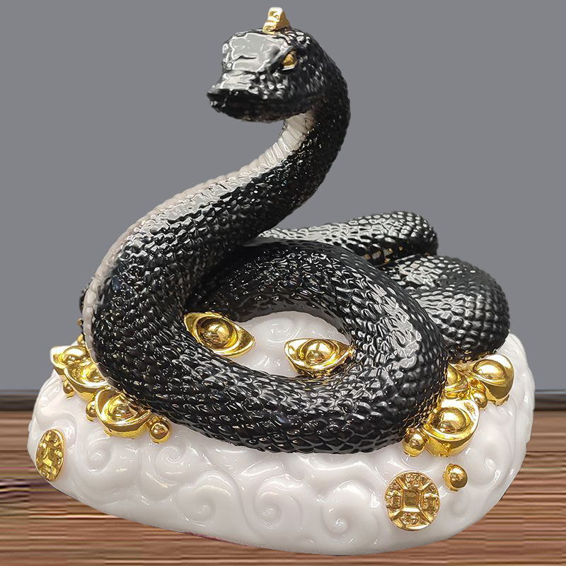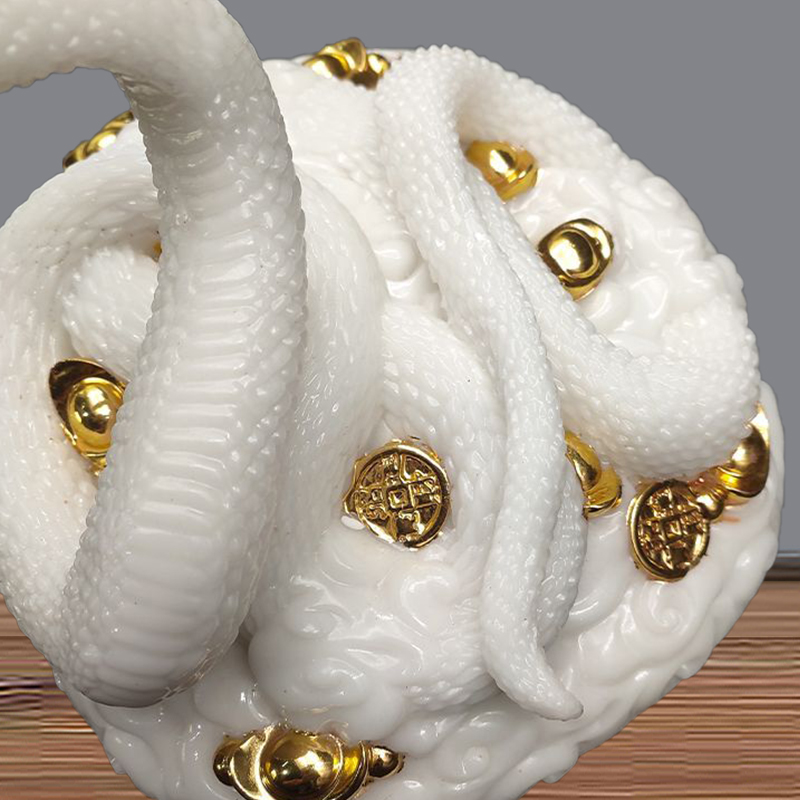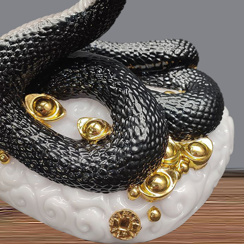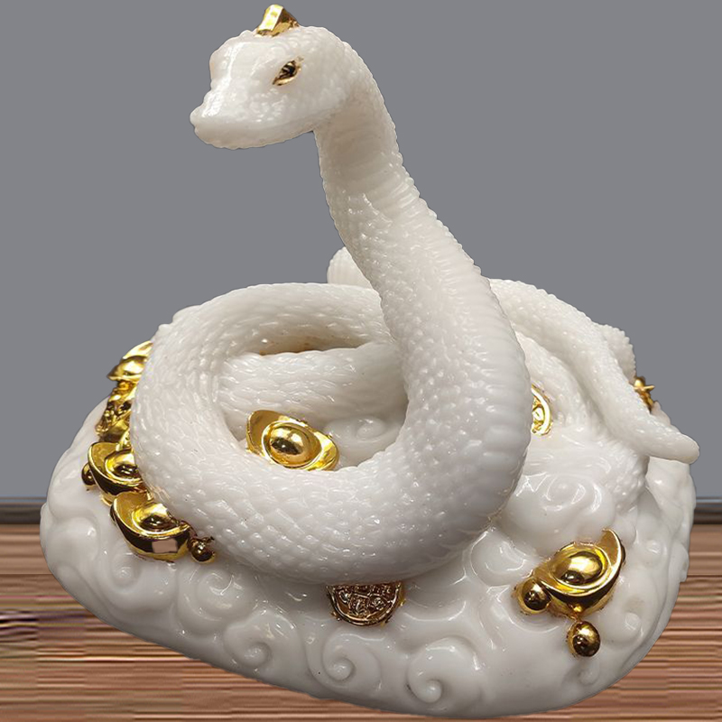 Solid White Jade Snake Statue, Black Python Snake Ingot, Zodiac Snake, Wealth Figurine, Home Craft Ornament, Real Figure for Worship