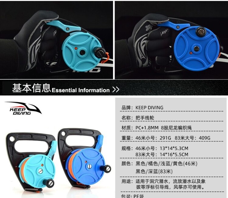 46/83m diving handle reel scuba deep diving cave exile technical diving traction rope s