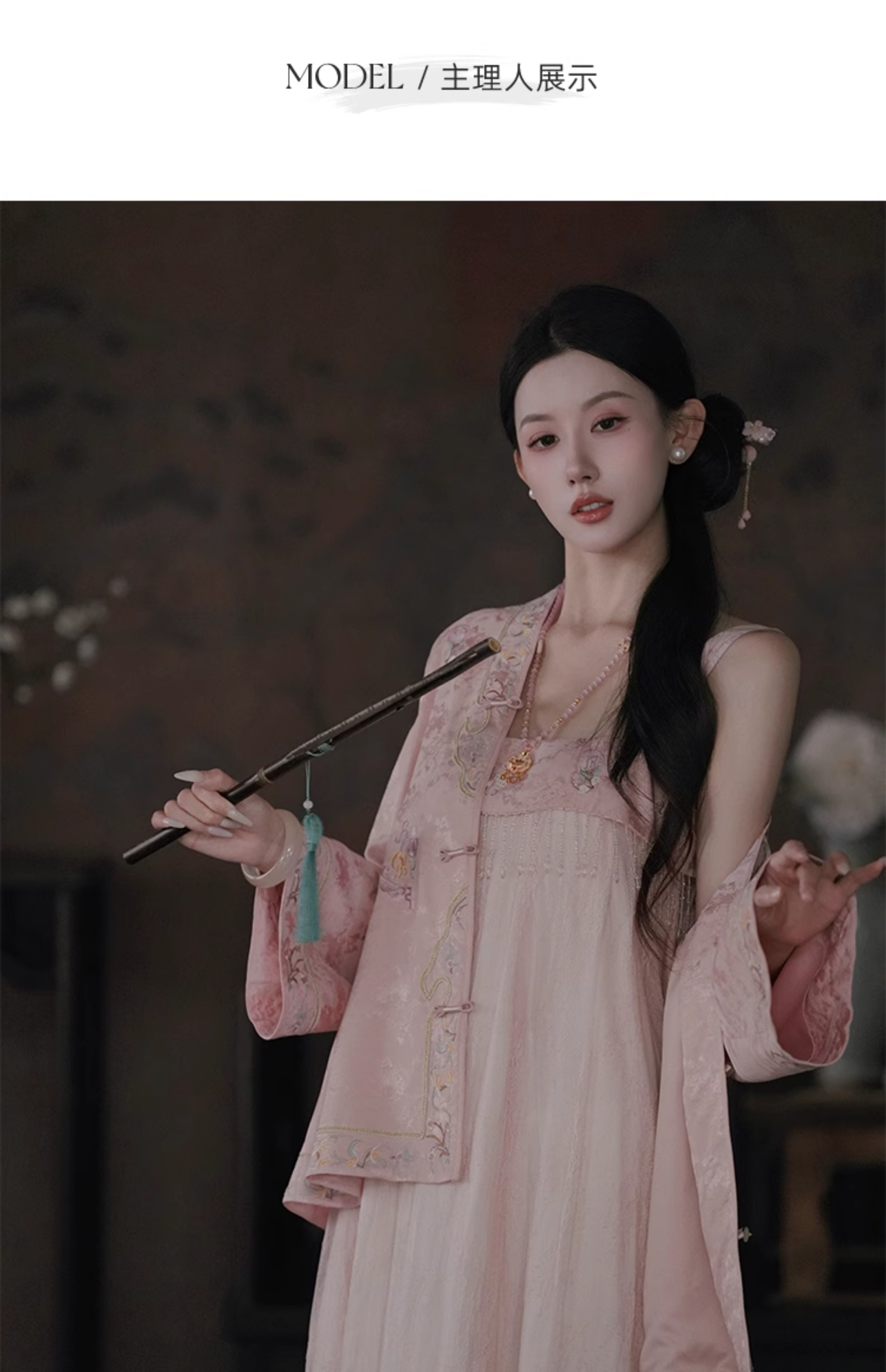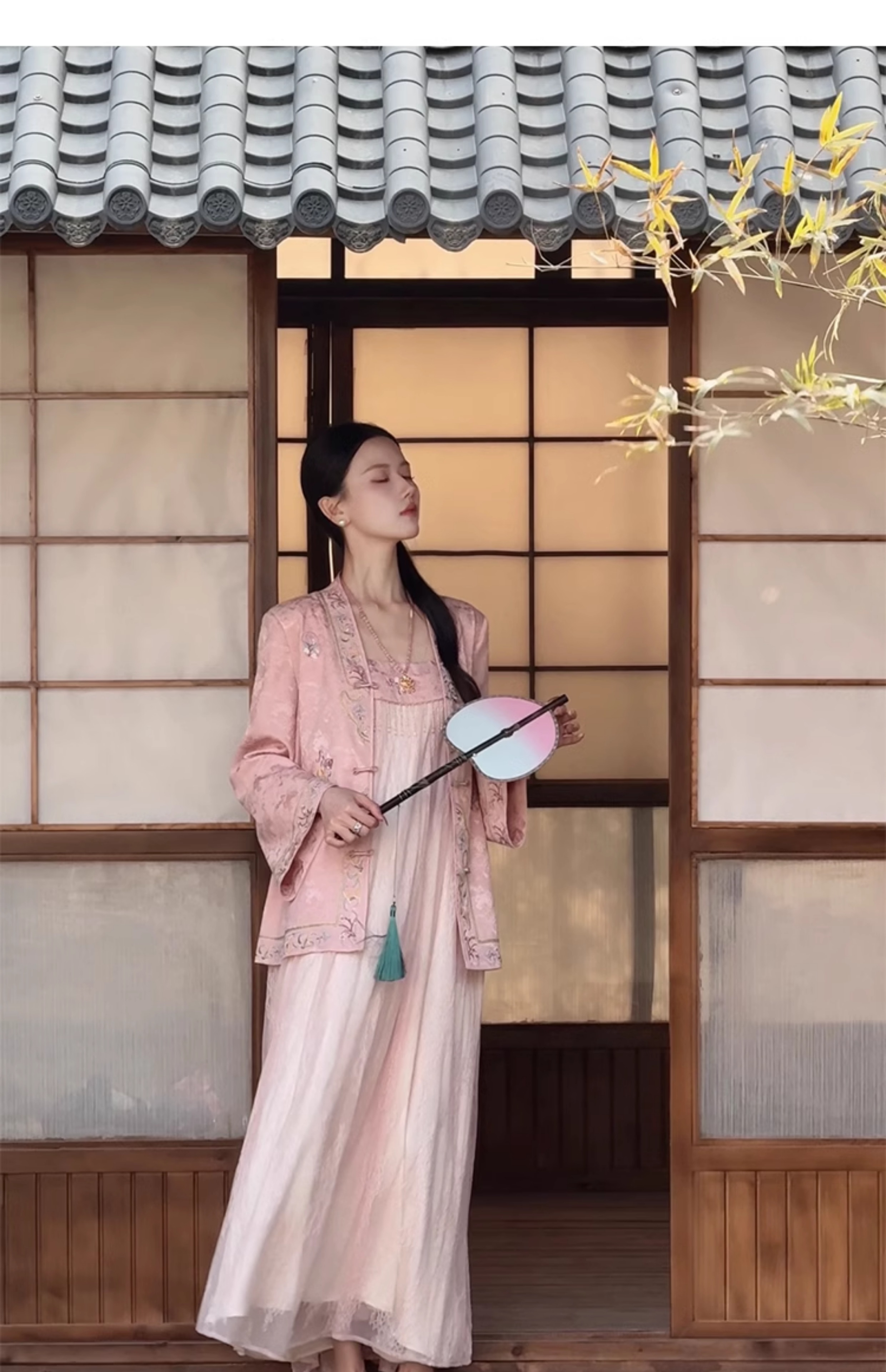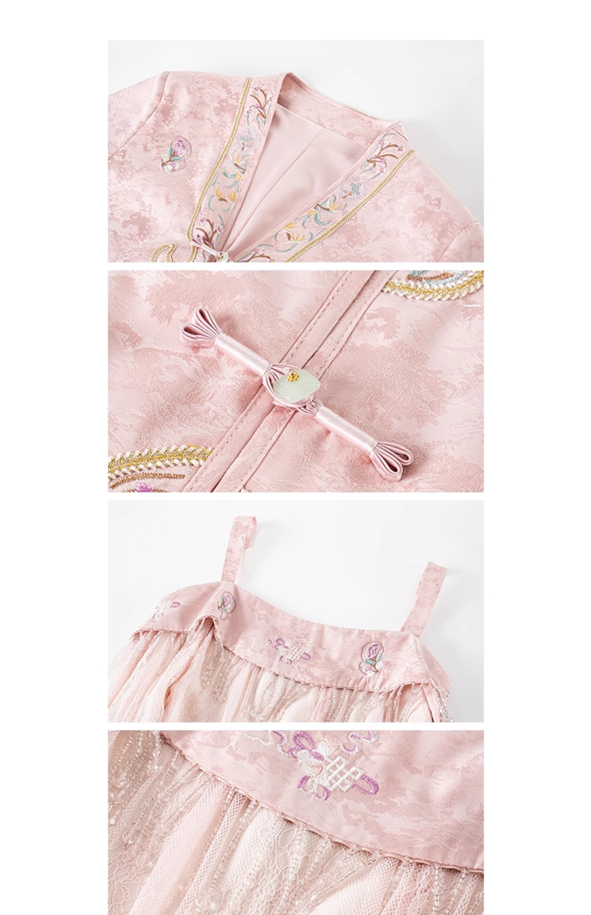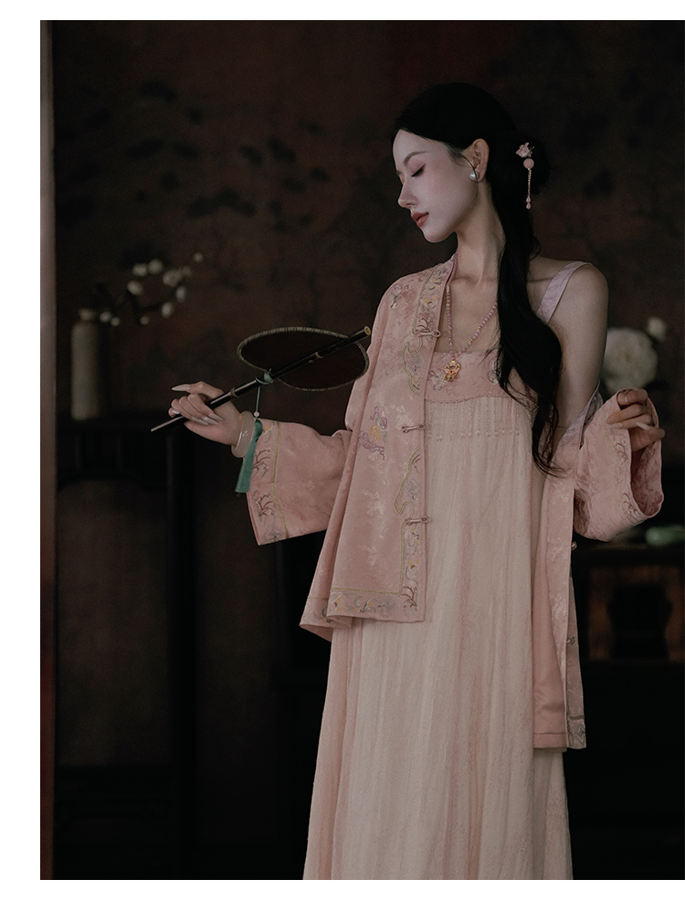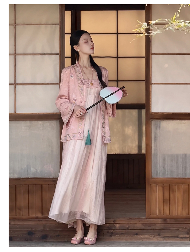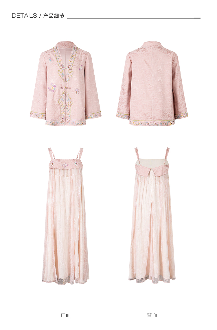 Wuyan Yihuo【Furong Zuiyu】New Chinese-Style Heavy Embroidery Jacquard Jacket + Lace Tassel Slip Dress