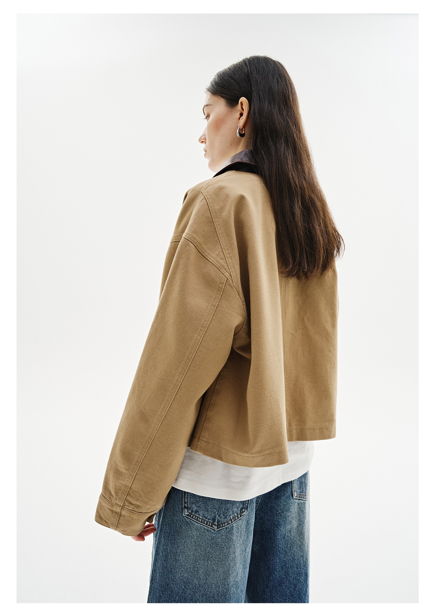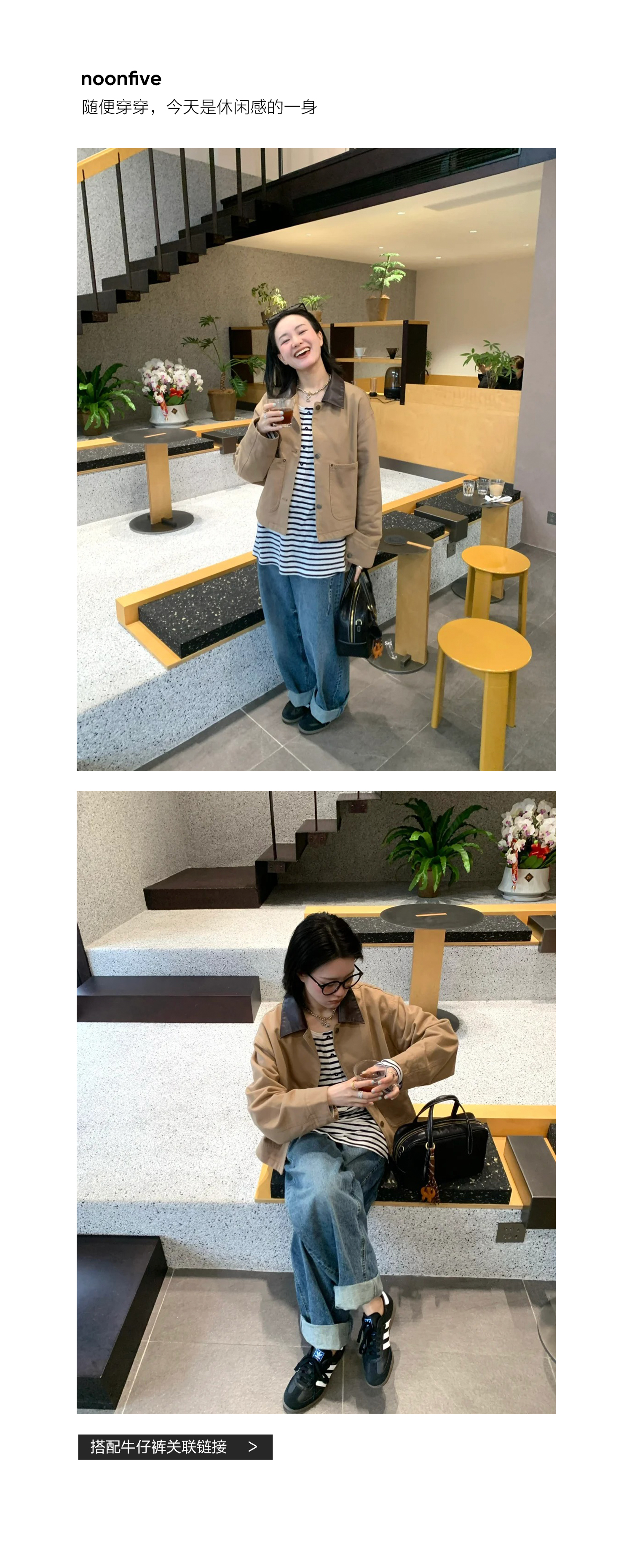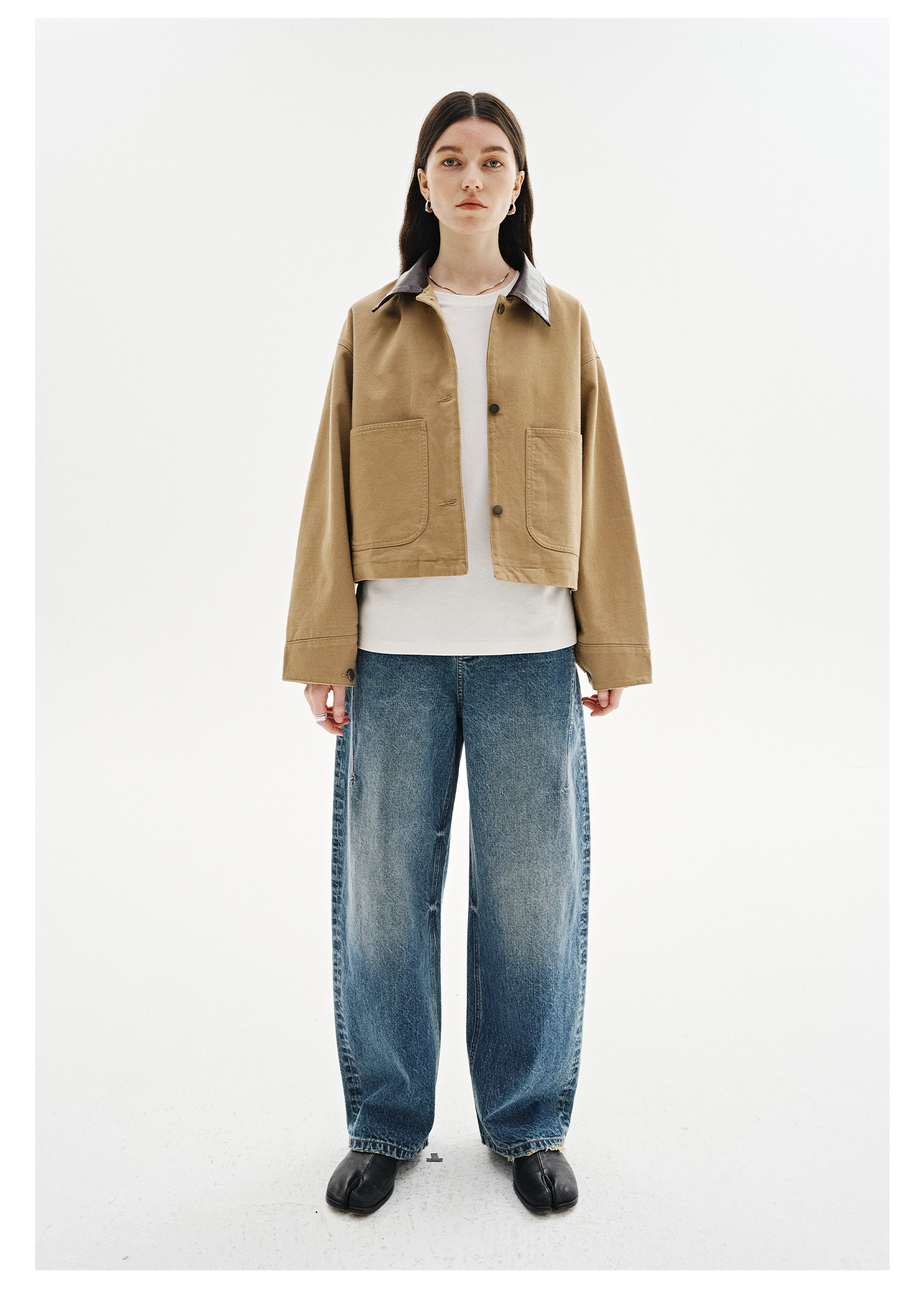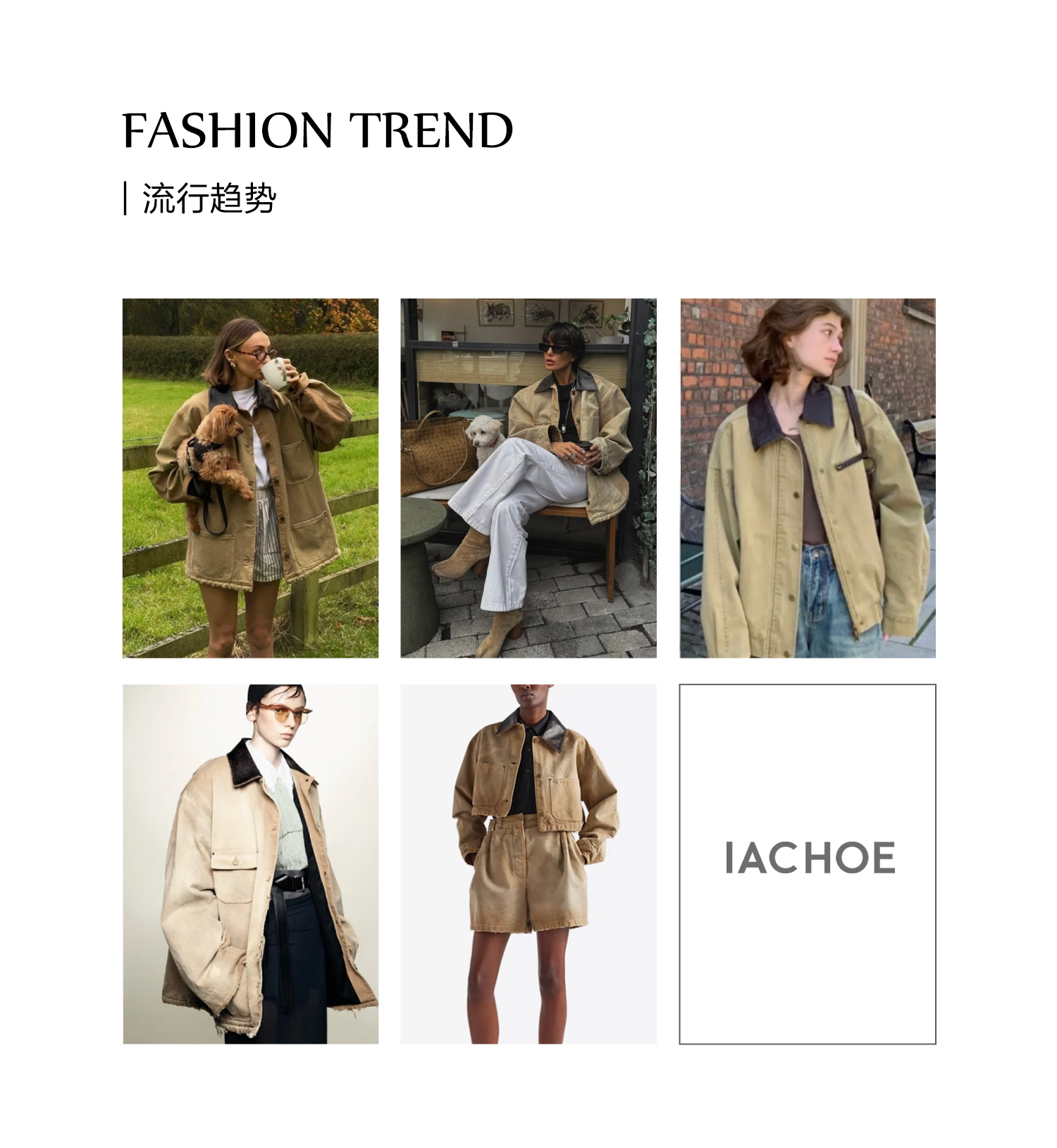 Iachoe bath style 25 autumn lapel leather short loose straight khaki short coat distressed cotton jacket