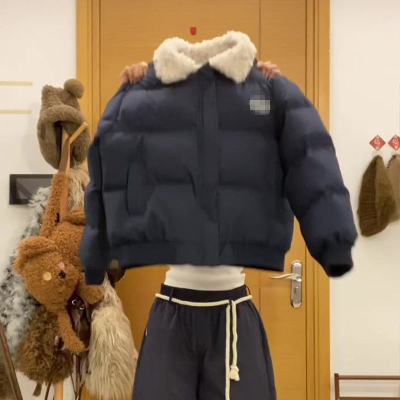 Plus-Size American Retro Short Cotton Jacket for Women, Autumn and Winter, Loose Fit, Turn-Down Collar, Thickened Fur Collar, Puffer Jacket, Trendy Cotton Coat