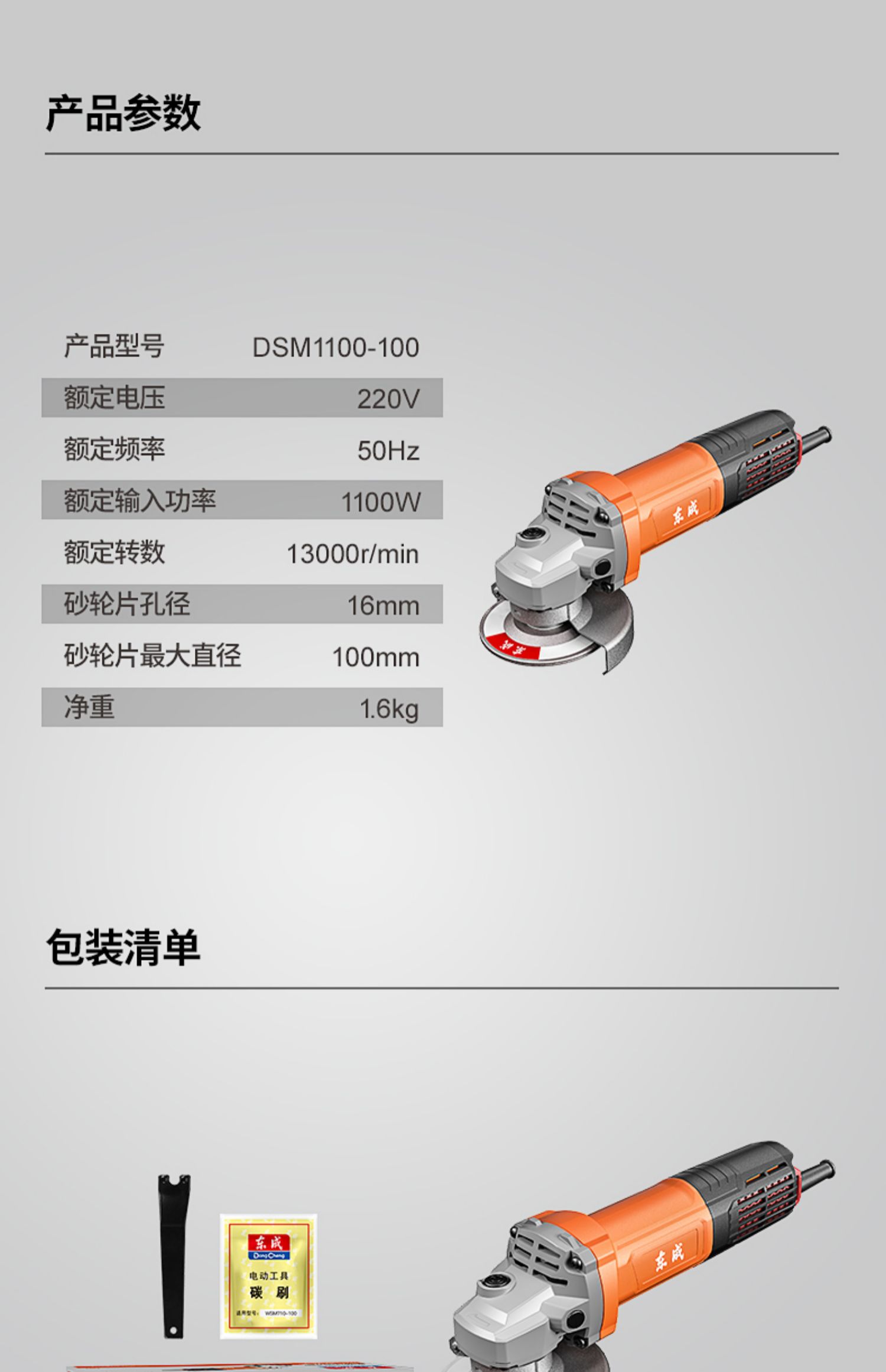 Dongcheng Angle Grinder Multifunctional Cutting Machine Household Hand Grinder Polishing Machine Electric Tool