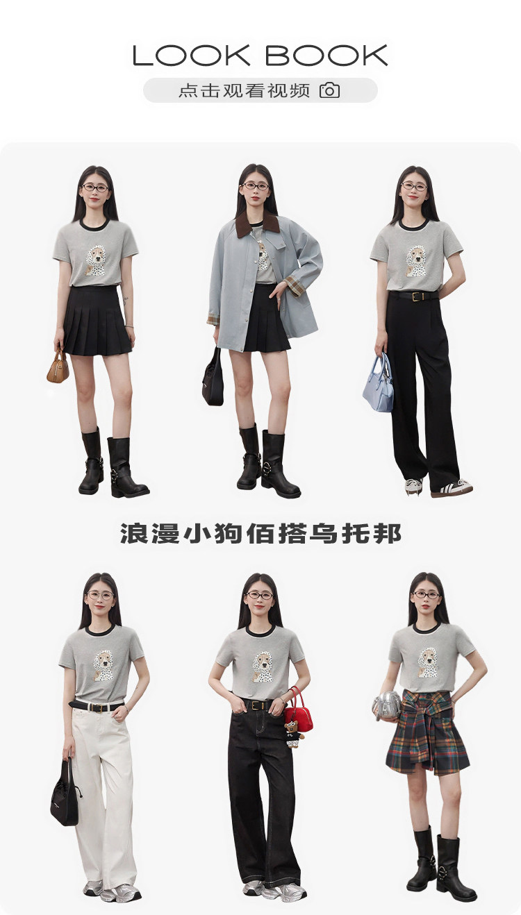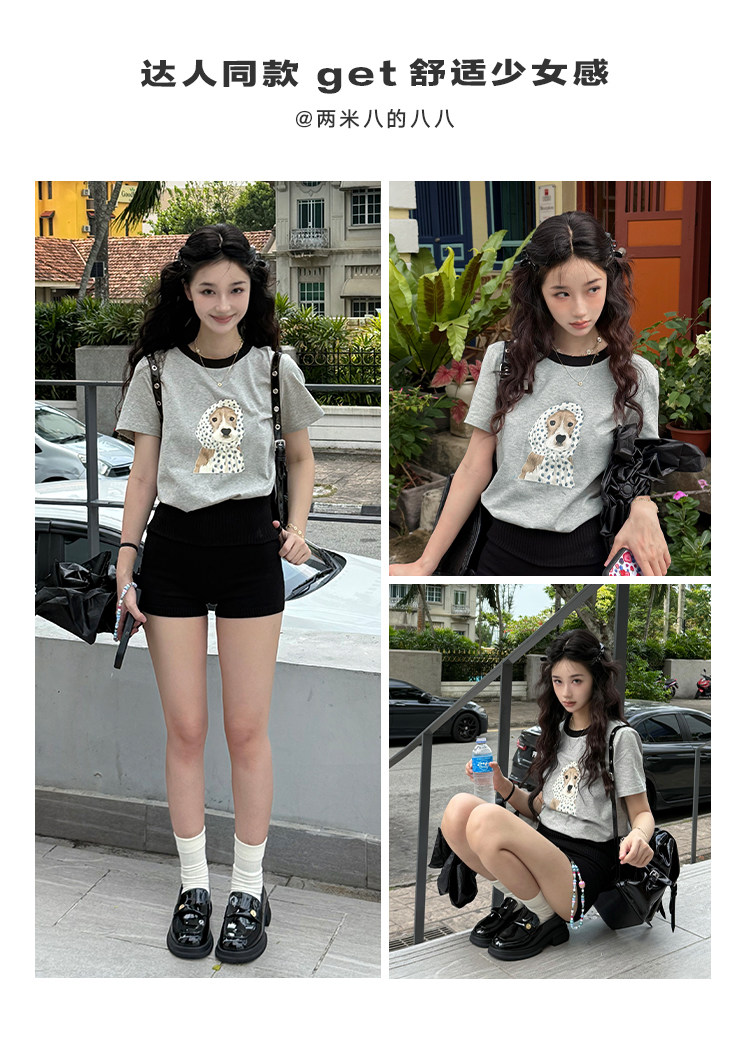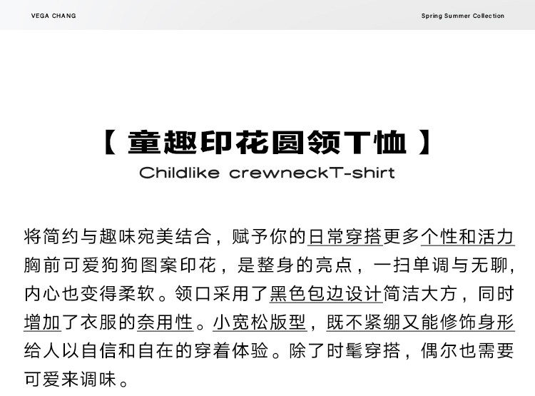 Vega Chang Short-Sleeved T-Shirt for Women 2026 Summer New Style Loose Round Neck Casual Vacation Puppy Print Top