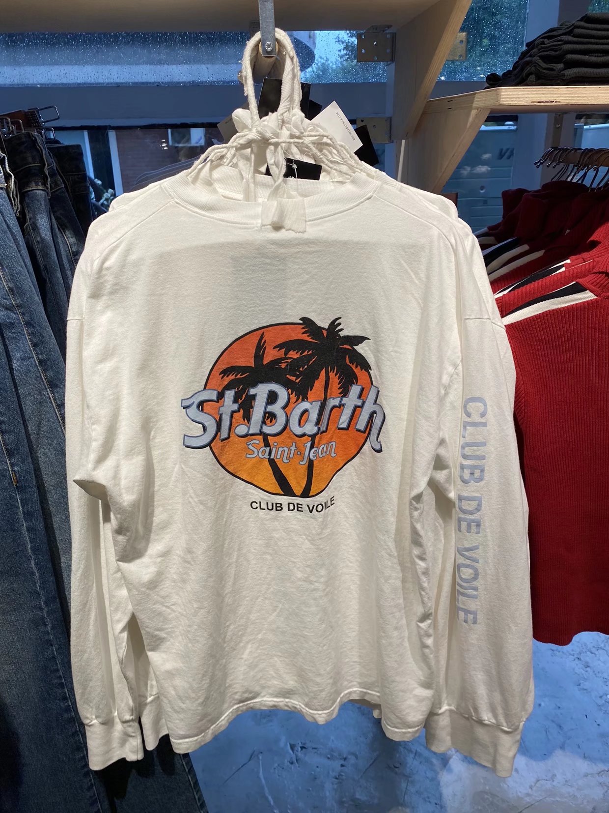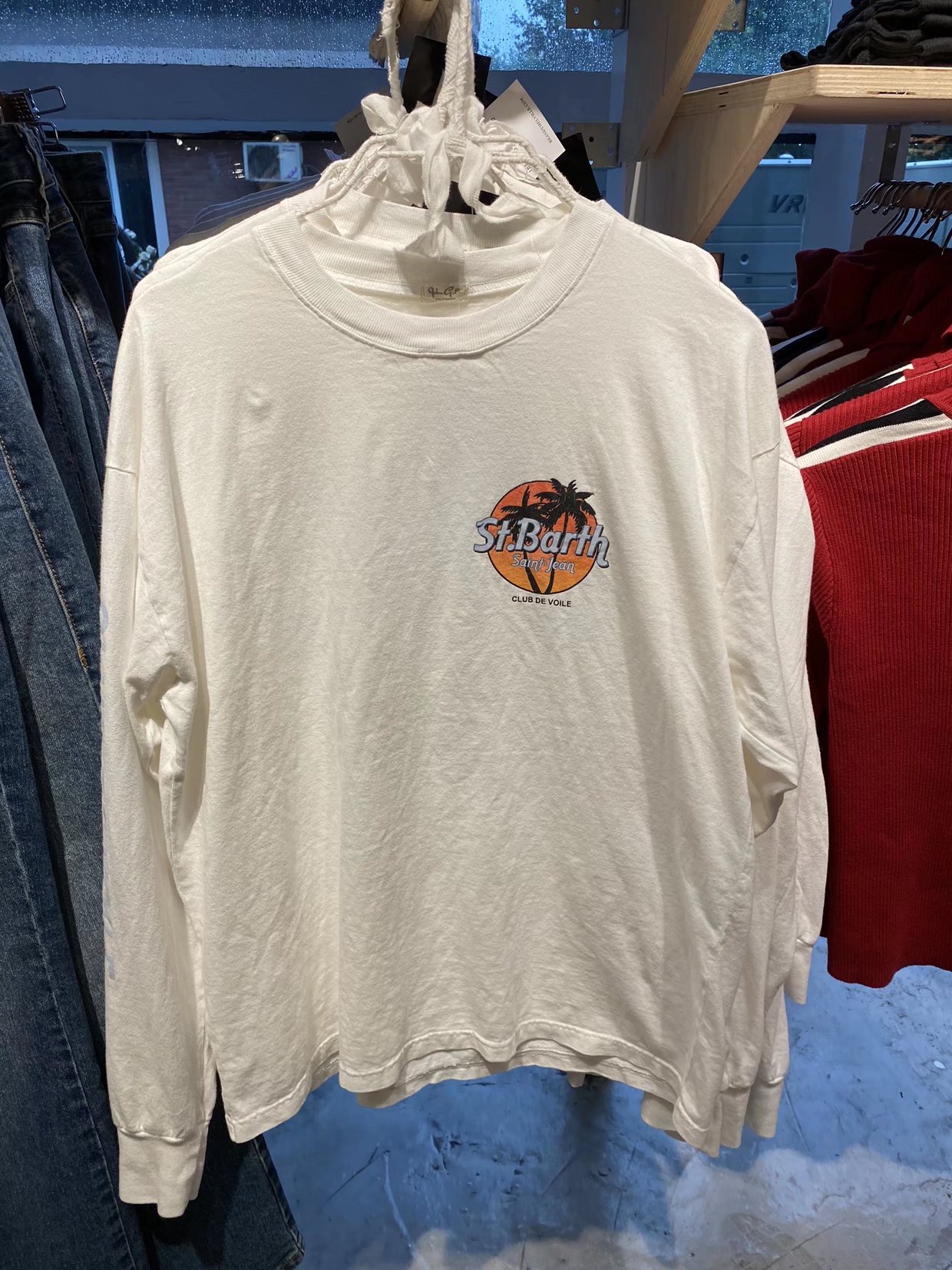Bm Coconut Tree Print Long-Sleeve T-Shirt Official New Early Autumn Round Neck Casual Pullover Versatile Slimming Women's Top