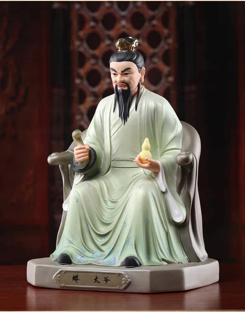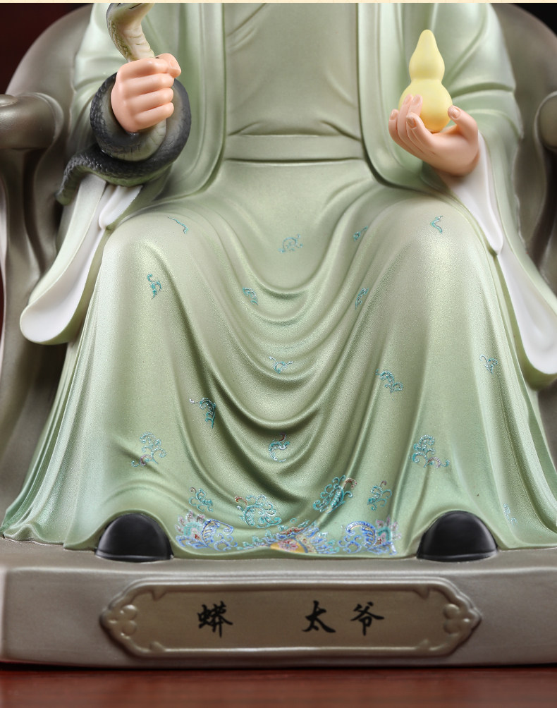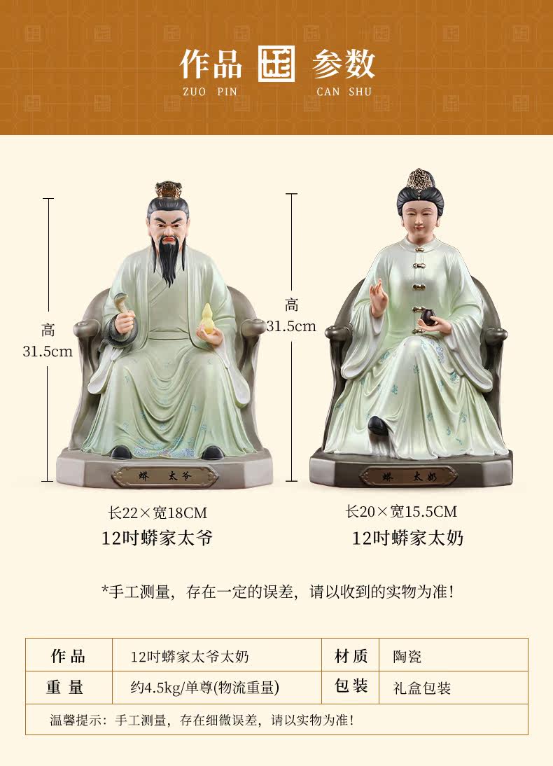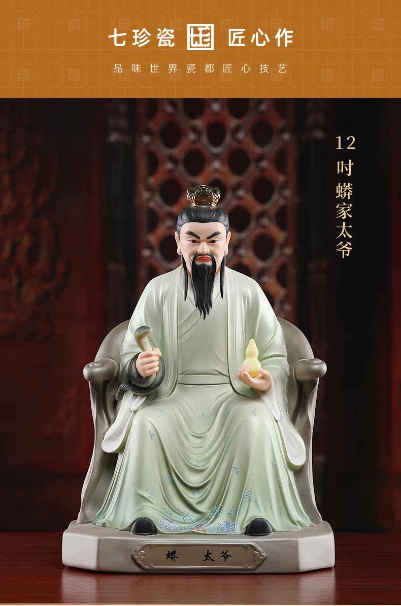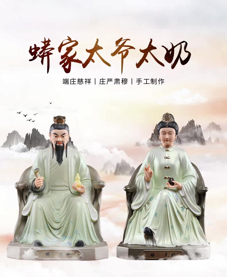 Seven Treasures Ceramics 12inch Ceramic Statues of the Grandfather and Grandmother of the Python Clan, the Four Great Families, for Home Worship
