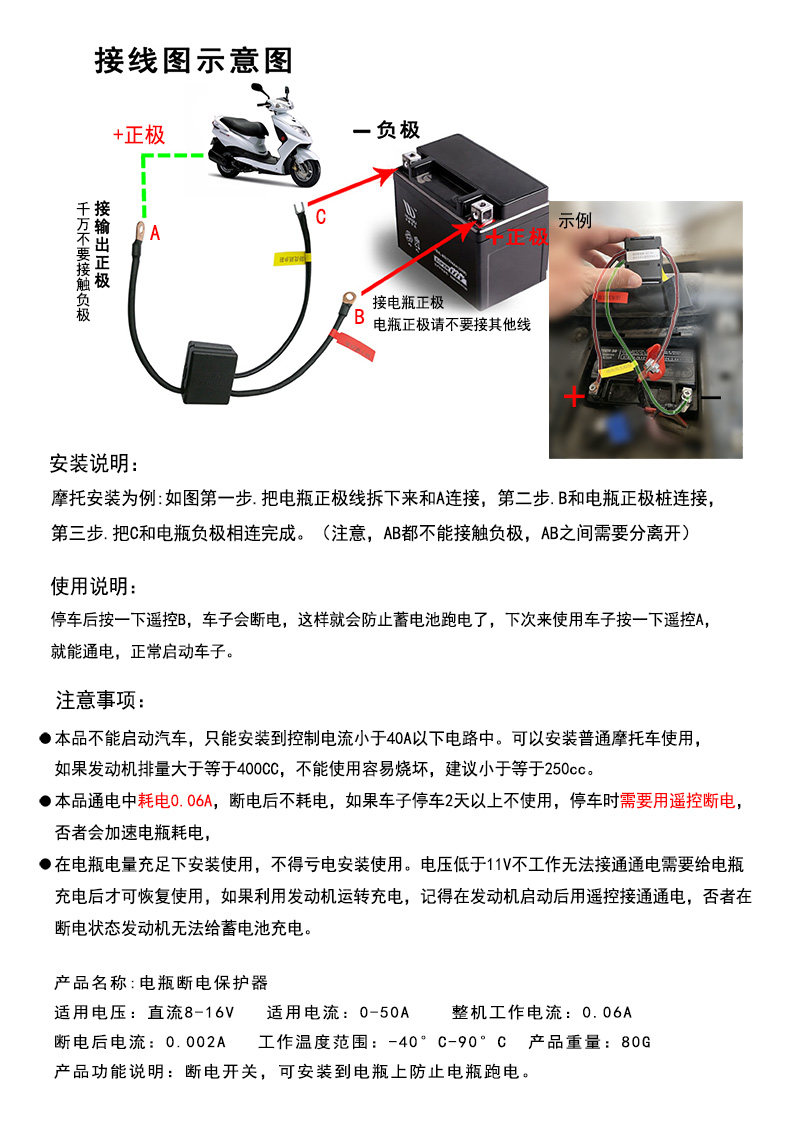 Motorcycle battery power cut switch, leakage, loss, power run protector, power supply, main remote control switch, general main gate