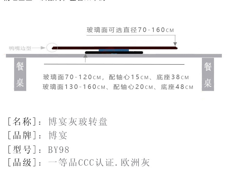 Boyan boutique high-end gray pure black glass new home glass table turntable hotel restaurant club box turntable