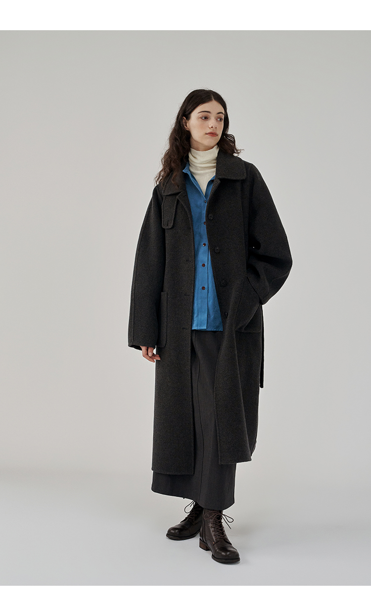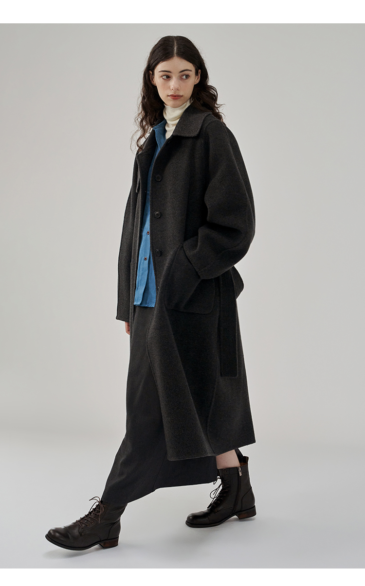 Cunbai Brown Woolen Coat for Women, Winter High-End Long Loose Gray Thick Woolen Coat