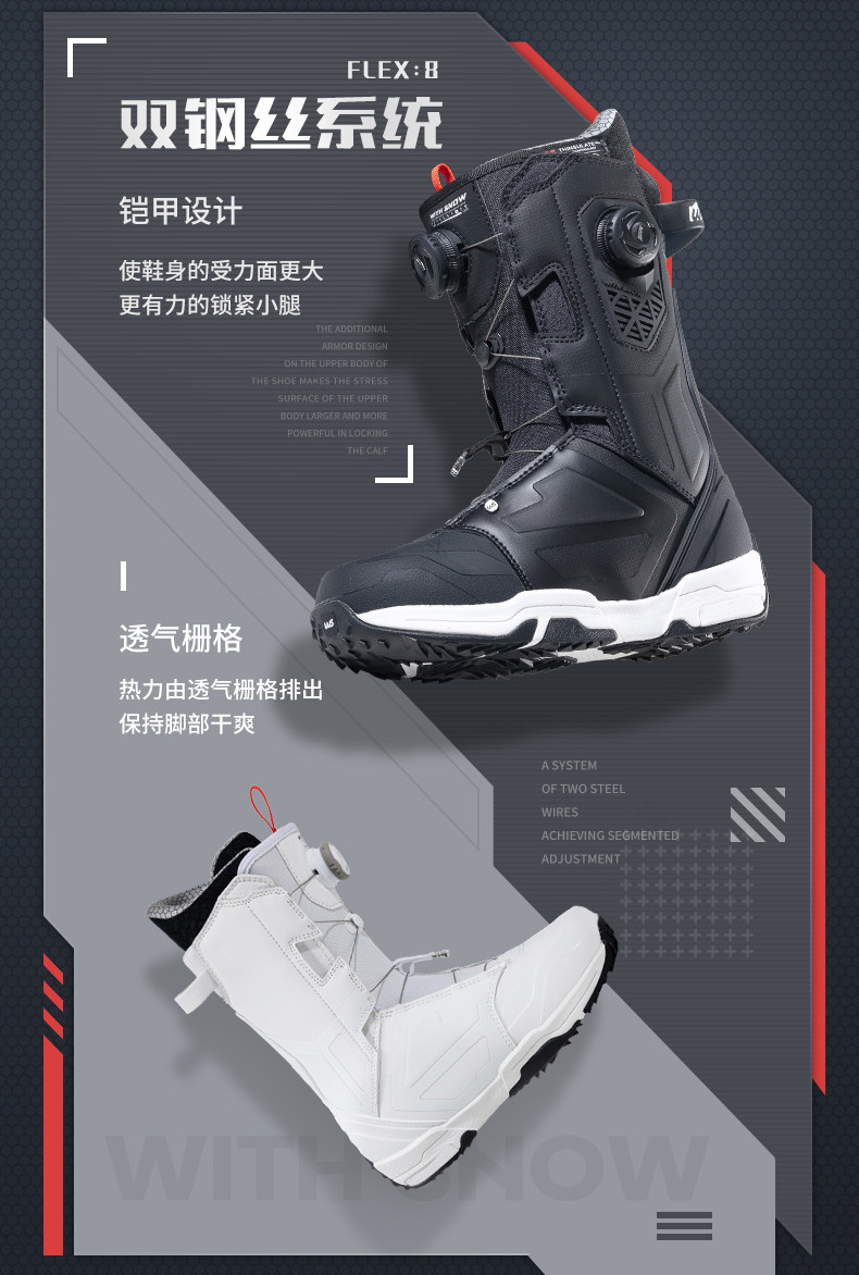 WS Snowboard Shoes Advanced Snowboard Shoes High Hardness Carved Double Steel Buckle Quick Wear Ski Boots Adults