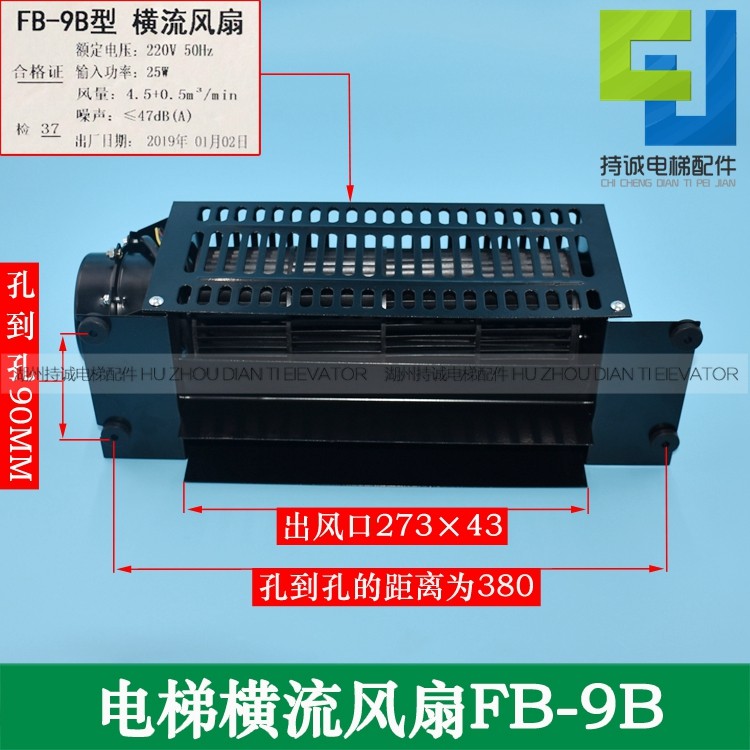 Chicheng Elevator Cross Flow Fan 9K Car Fan FB-9B-330 FB-1042B-J Car Top Ventilation Fan Accessories