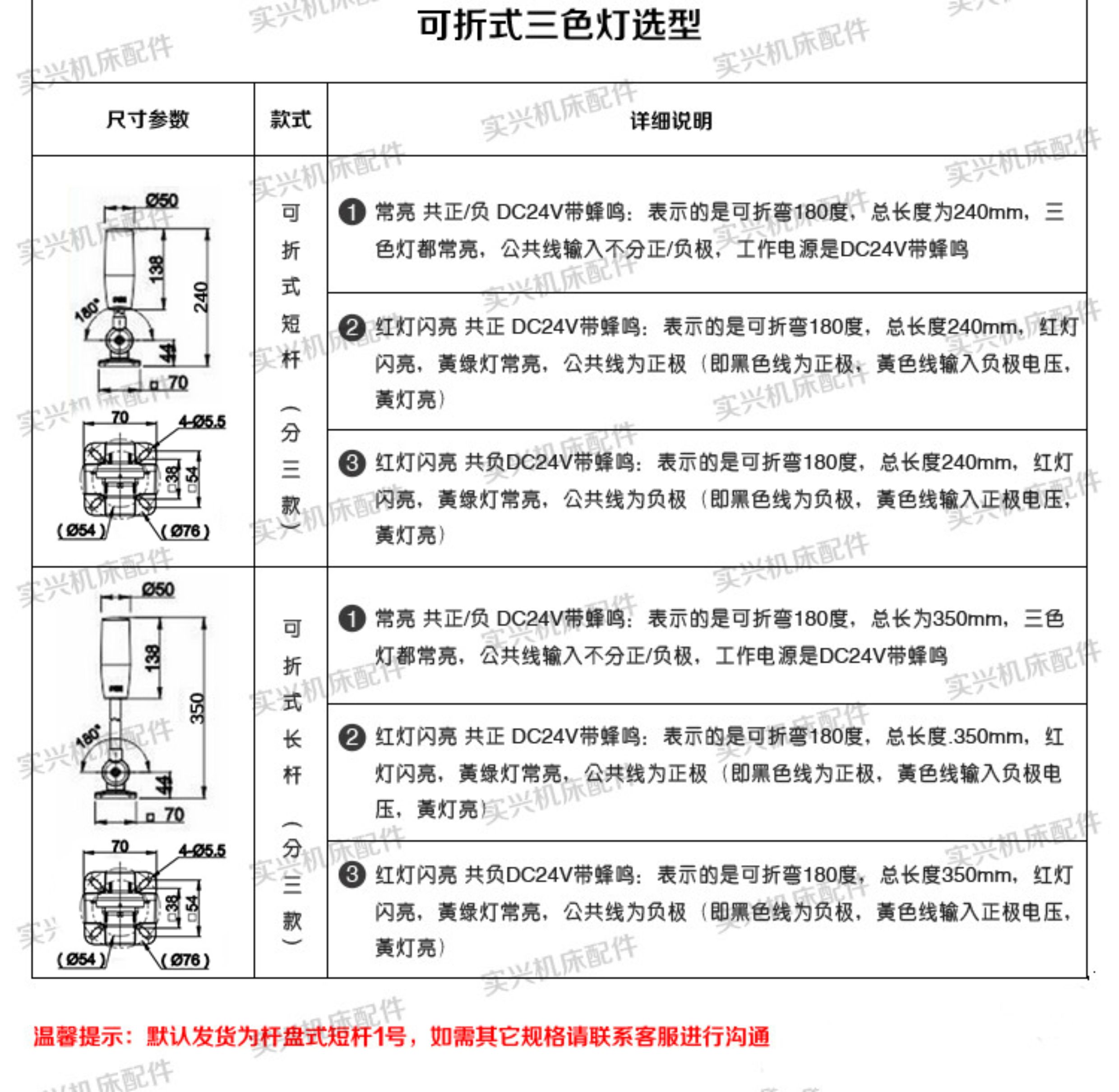 Sort by color 24V three colors, always on + folding + buzzing, total length 240mm (white),24V three colors, always on + folding + buzzing, total length 350mm (red),24V three colors, always on + disc + buzzer, total length 190mm (black),24V three colors, always on + disc + buzzer, total length 300mm (orange),24V three colors, red flashing + folding + buzzing, total length 240mm (blue),24V three colors, red flashing + folding + buzzing, total length 350mm (brown),24V three colors, red flash + disc + buzzer, total length 190mm (green),24V three colors, red flash + disc + buzzer, total length 300mm (purple),24V three colors, always on + L rod + buzzer, total length 290mm (dark gray),12V three-color, always on + folding + buzzer, total length 240mm (burgundy),12V three colors, always on + disc + buzzer, total length 190mm (light yellow),220V three colors, always on + folding + buzzing, total length 240mm (sky blue),220V three colors, always on + folding + buzzer, total length 350mm (color),220V three colors, always on + disc + buzzer, total length 190mm (violet),Warm reminder: Due to changes in specifications, if you have any questions about your order, please contact customer service for consultation.,Note that the colors of the three-color lights are red, yellow and green. The (color) after the order specification does not mean anything, so don’t pay attention to it.