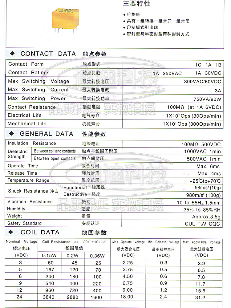 Huike Relay HK4100F-DC3V 5V 9V 12V 24V-SHG 3A 6-pin 4100 relay