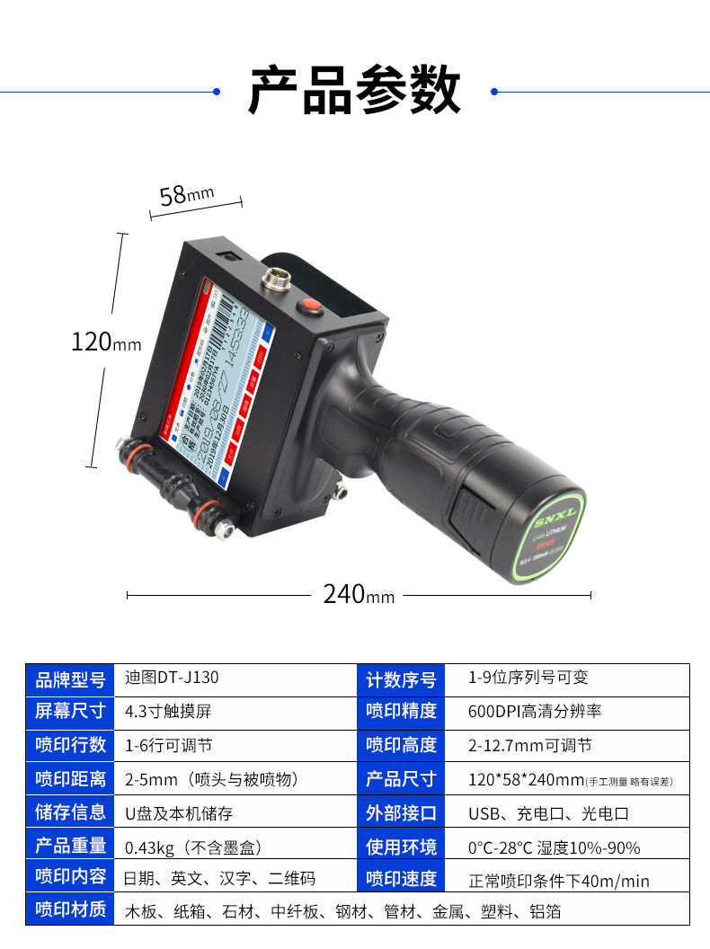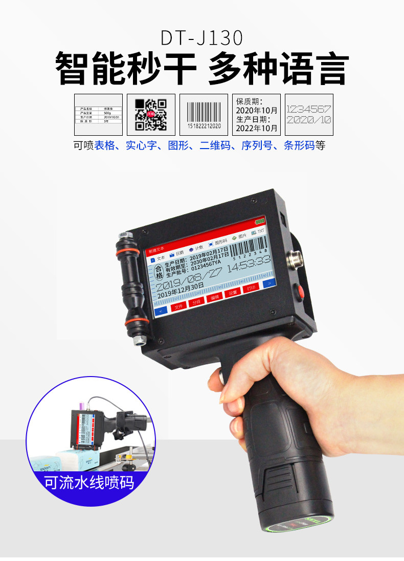Ditu DT-J130 smart handheld inkjet printer small production date coder price fully automatic multi-language laser coder assembly line printing production date coder