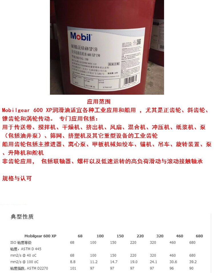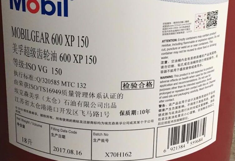 Mobil gear oil 600XP150 No. 68 100 220 320 460 680 super elevator gear oil 18L
