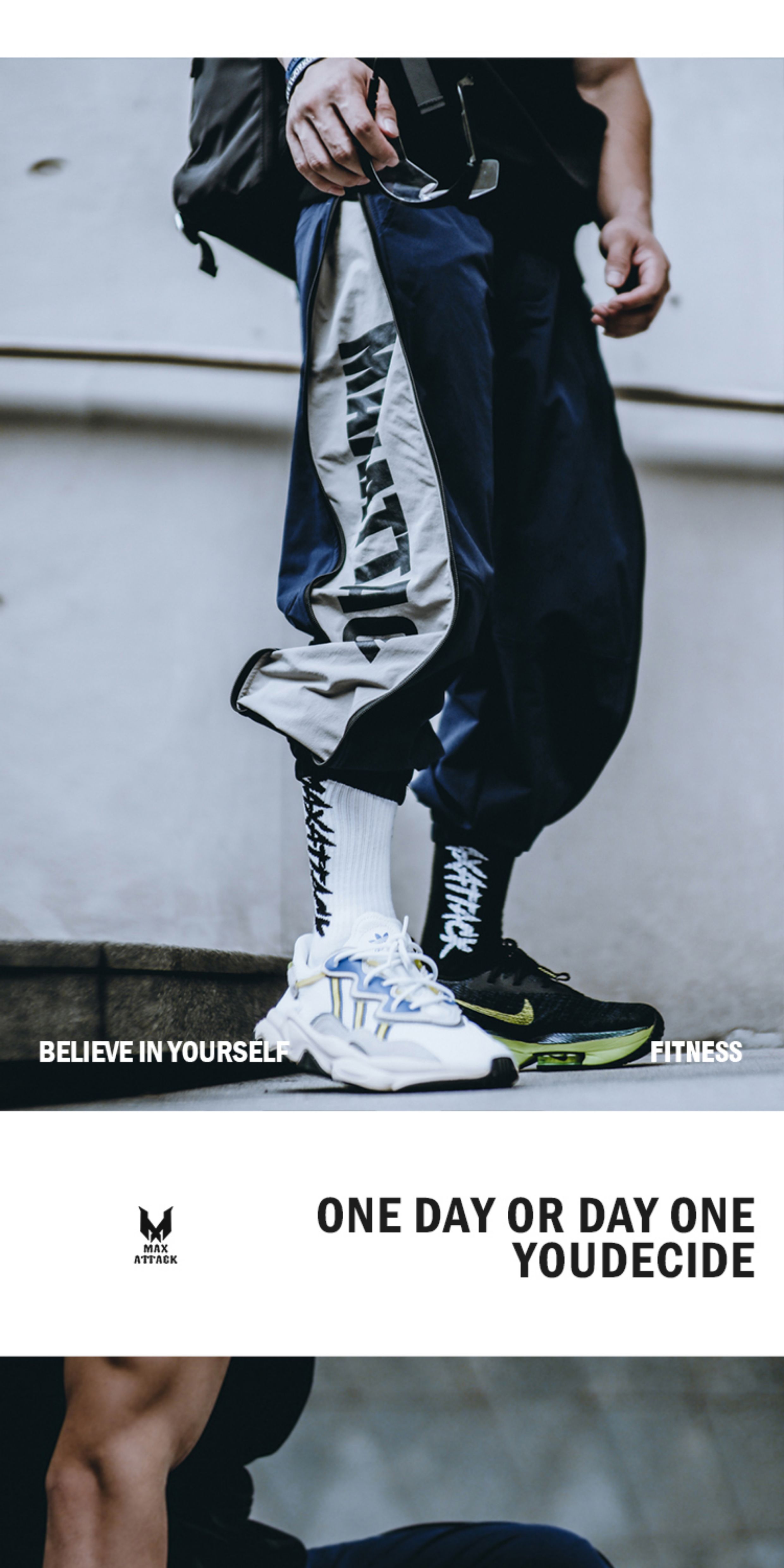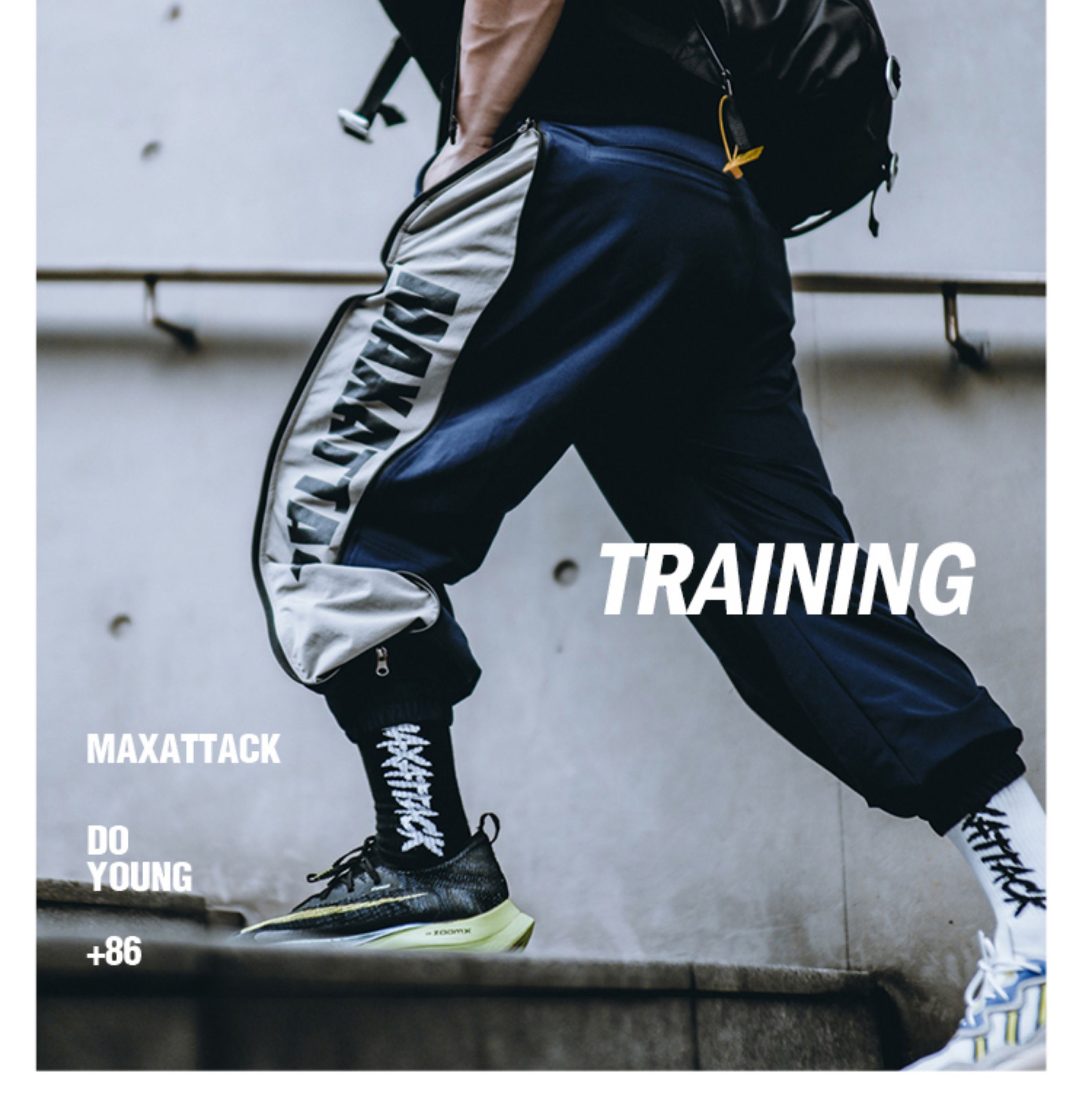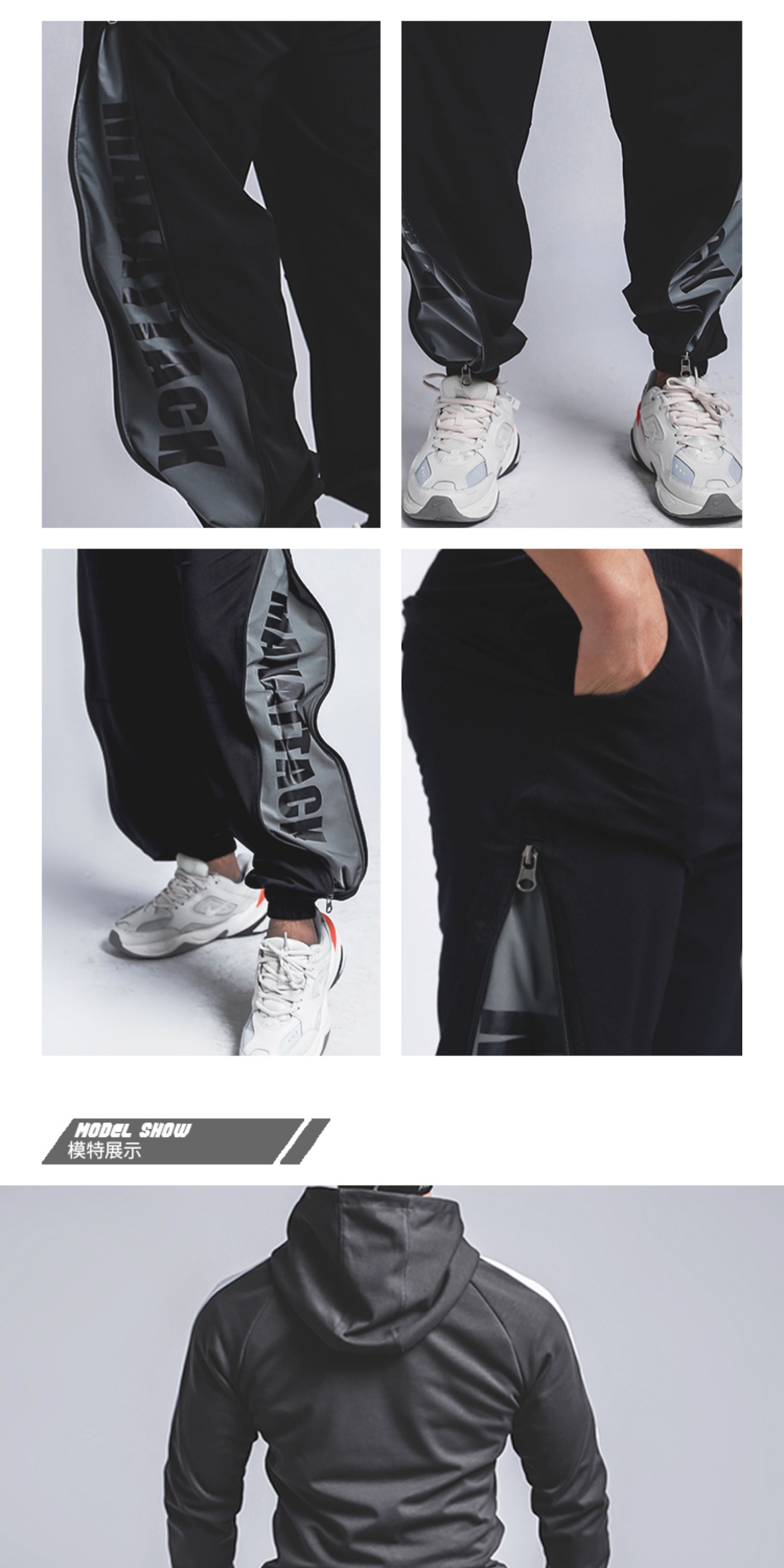 MAXATTACK宽松健身长裤男潮牌休闲运动裤肌肉阔腿束脚拉链裤训练