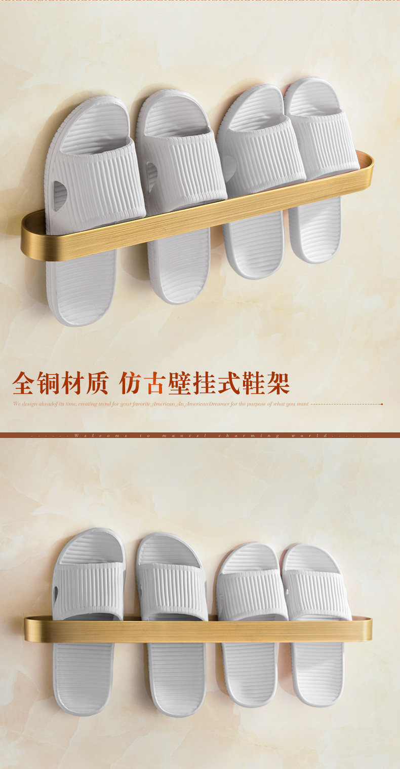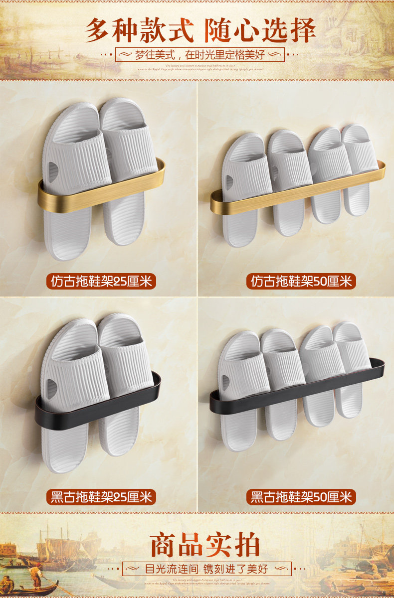 Sort by color No drilling installation, all copper material, antique slipper rack 25 cm,No punching installation, all copper material, black slipper rack 25cm,No drilling installation, all copper material, antique slipper rack 50 cm,No drilling installation, all copper material, black slipper rack 50 cm,(No need to drill/punch holes) All copper material black gold slipper rack 30 cm,(No need to drill/punch holes) All copper material black gold slipper rack 50 cm