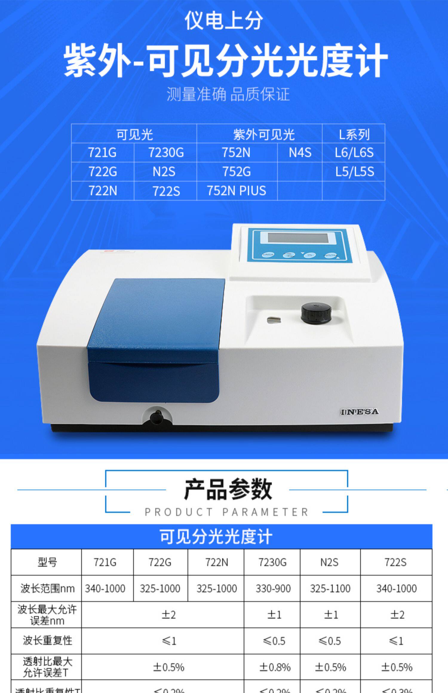 Shanghai Instrument Analysis 721/722N visible spectrophotometer Shanghai Jingke 752N UV photometer