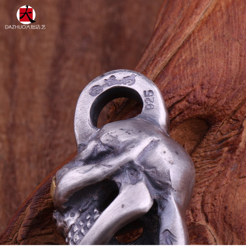 Dazhuo Shop Art Stop Light One-Eyed Skull Pendant S925 Sterling Silver Handmade Takayama Takashi Retro Men's Fashion