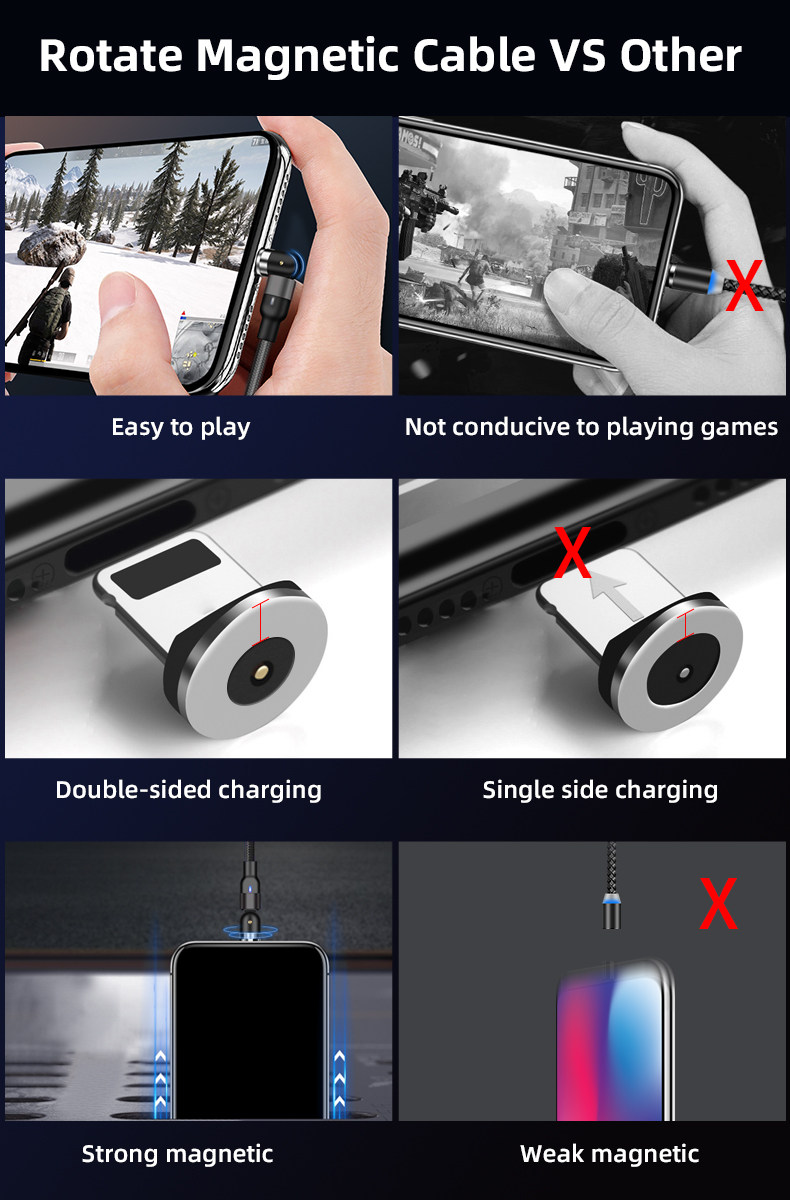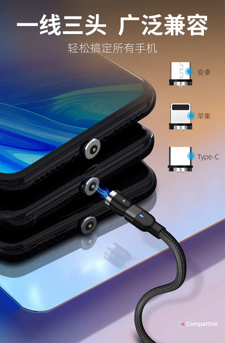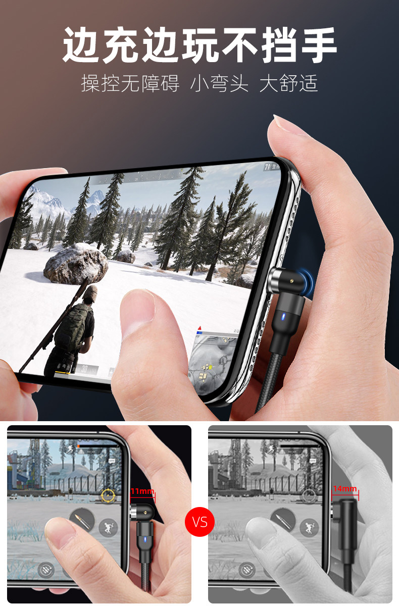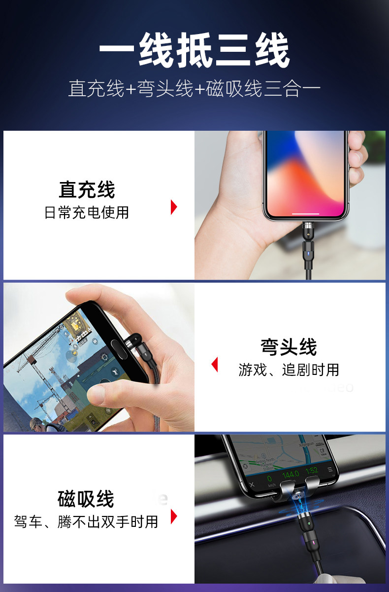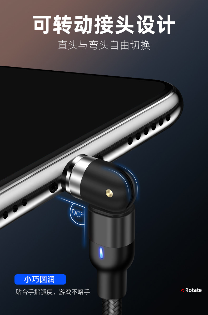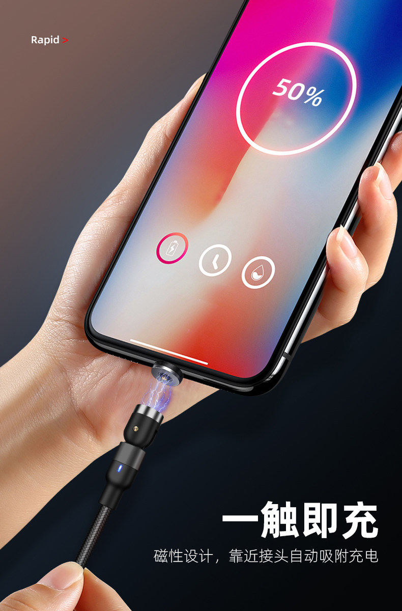 Xit Magnetic Rotating Data Cable Elbow Gaming Charging Cable Strong Magnetic Cable 540-Degree One-To-Three Charging Cable Suitable for Fruit/Android Chargers Black Data Cable Red Fast Charging Cable