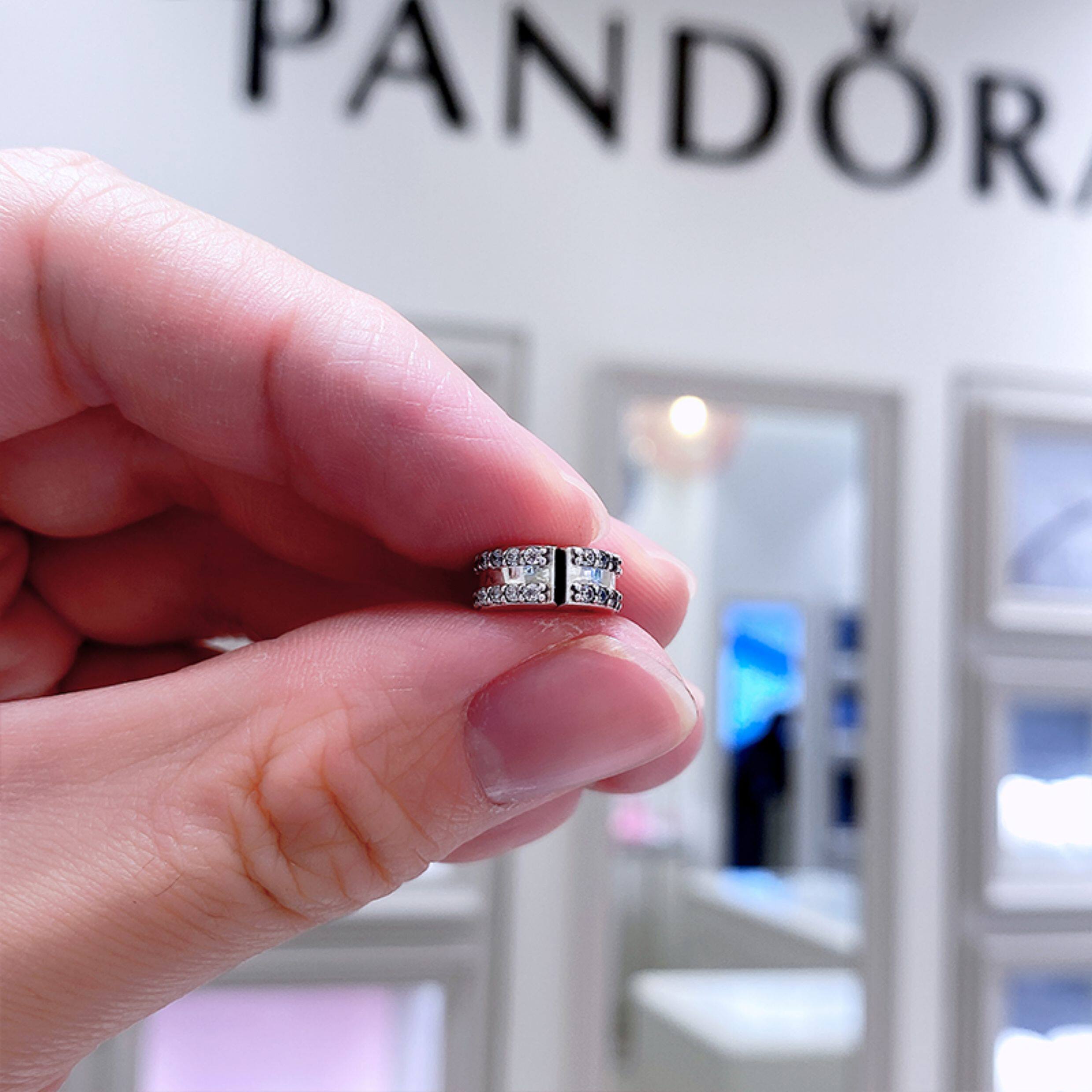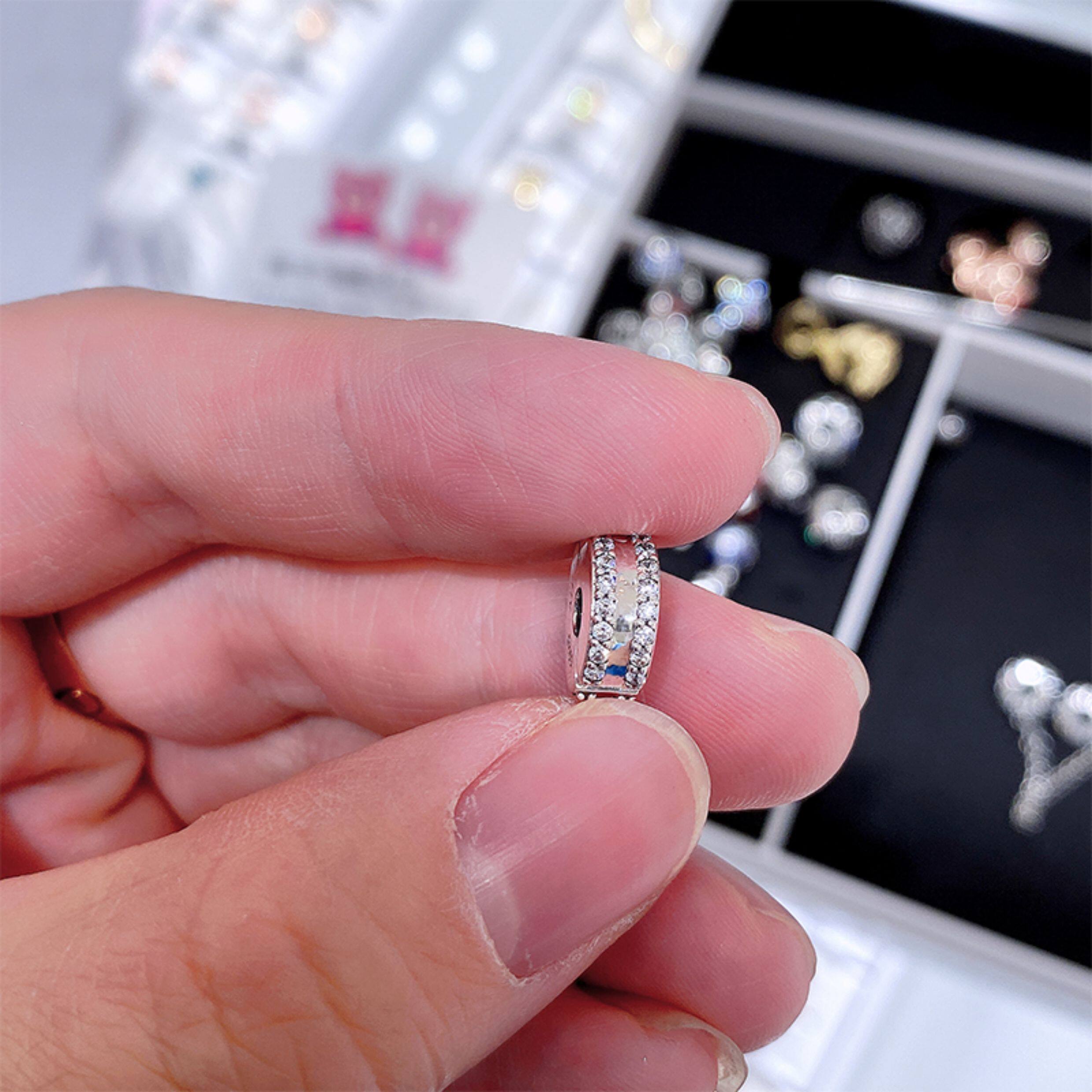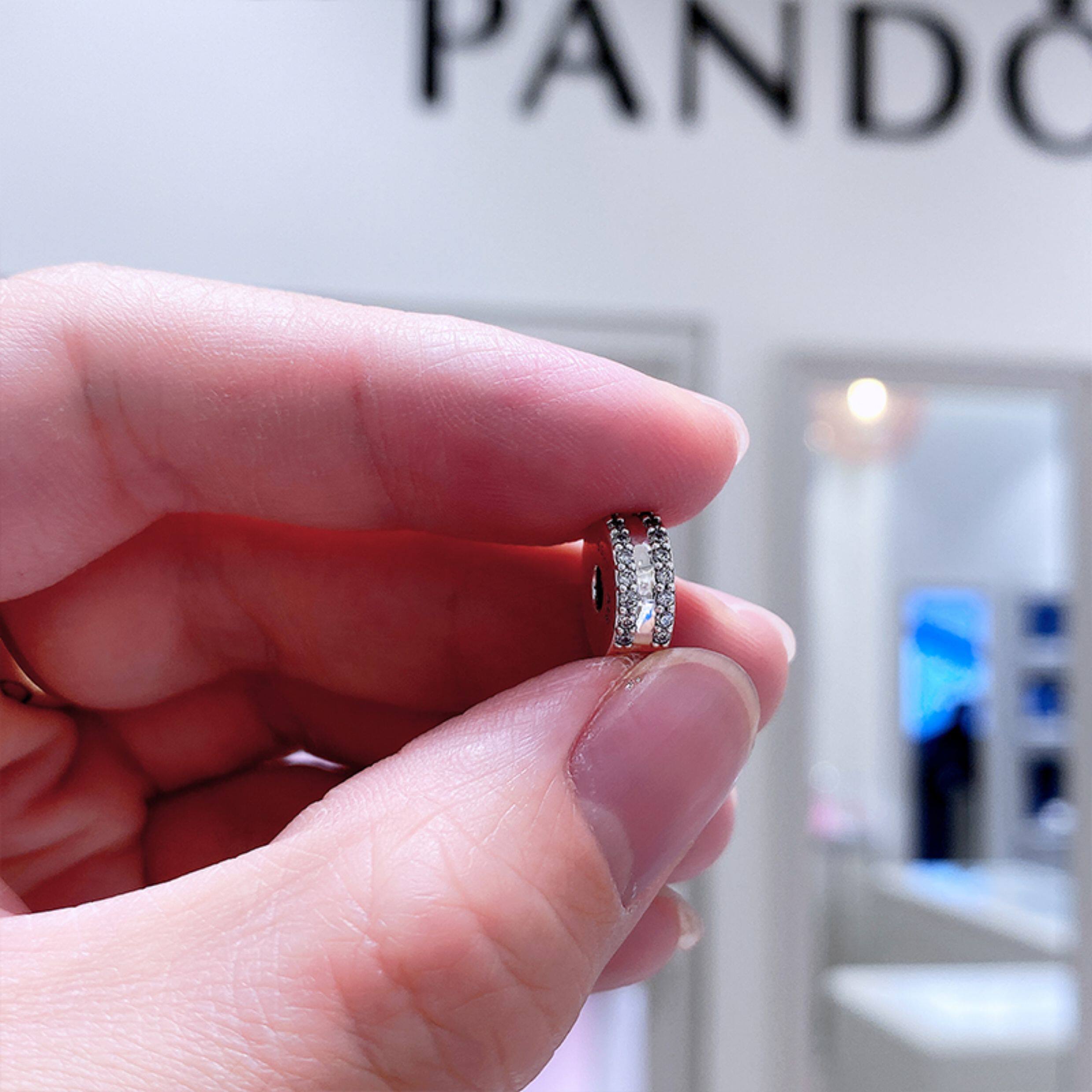 Pandora beads Pandora official website double ring pavé zircon 925 silver silicone fixed clip 798422C01