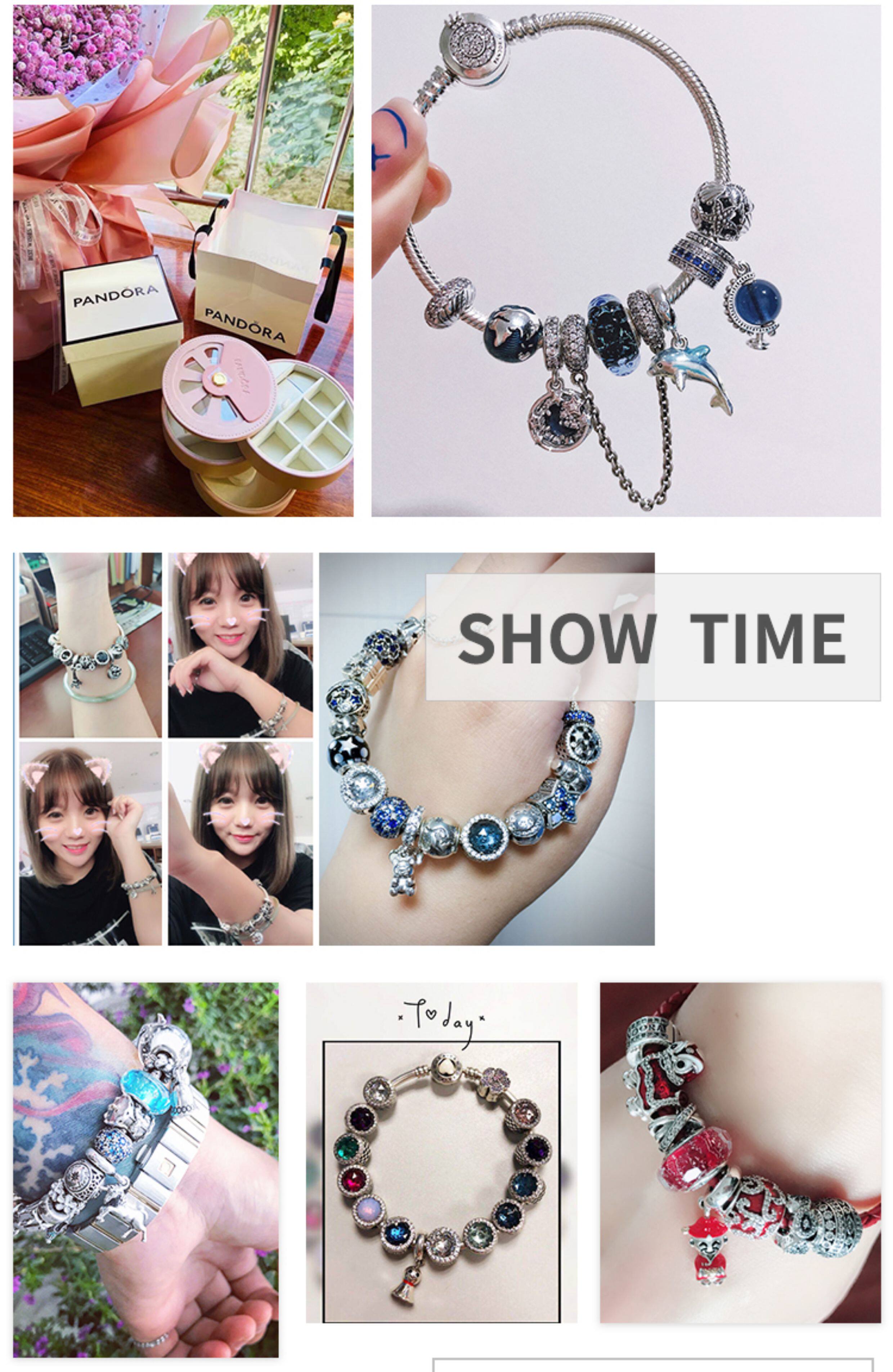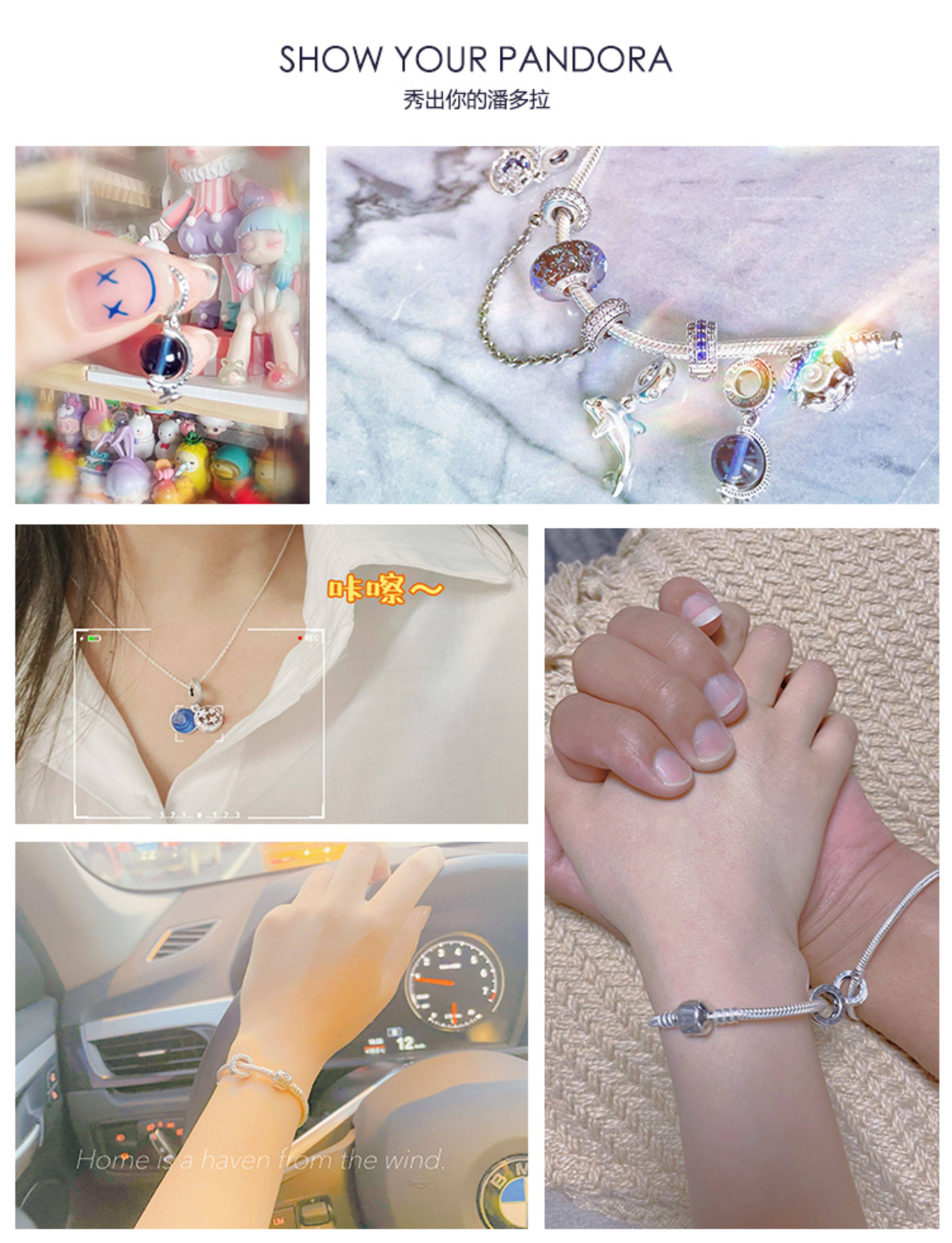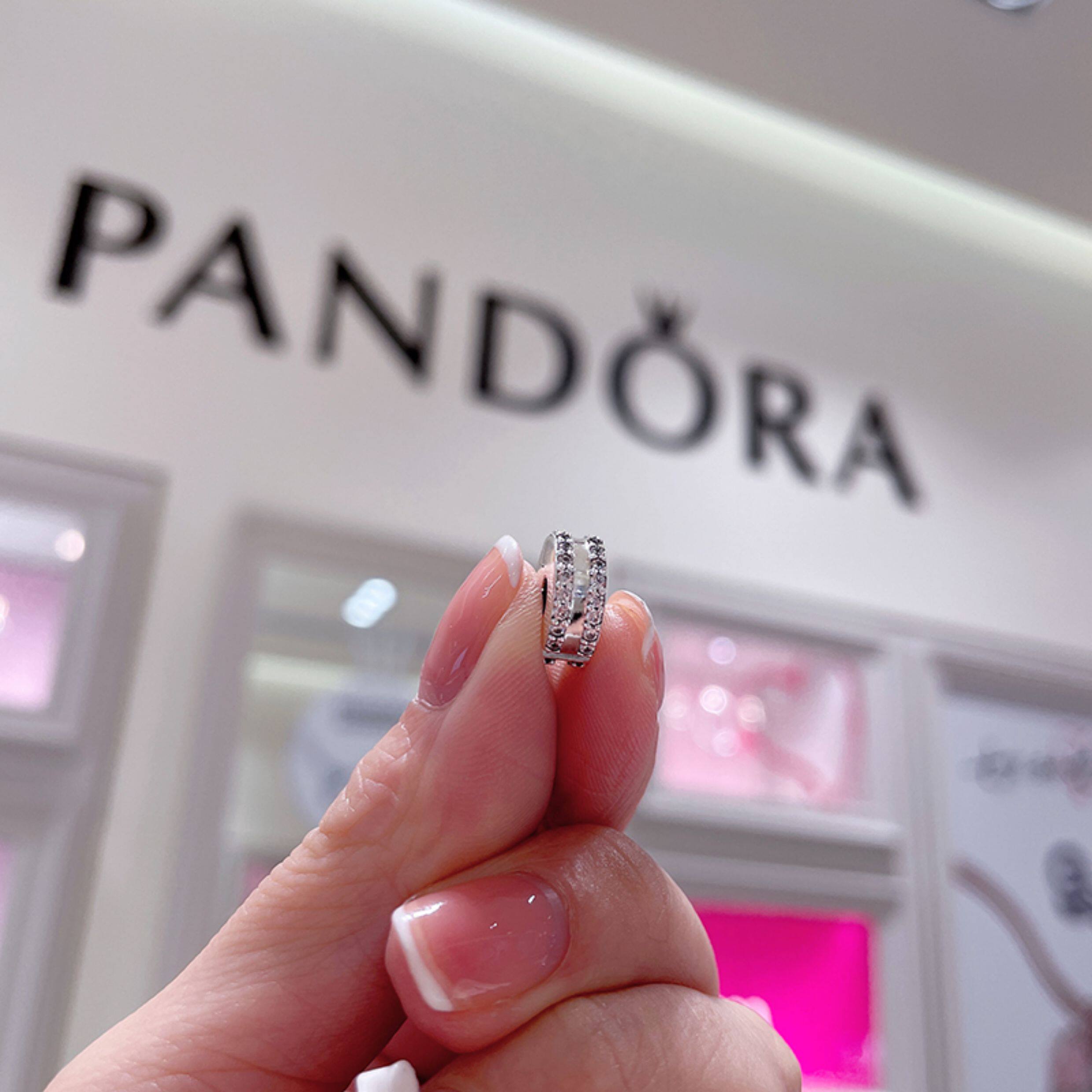 Pandora beads Pandora official website double ring pavé zircon 925 silver silicone fixed clip 798422C01