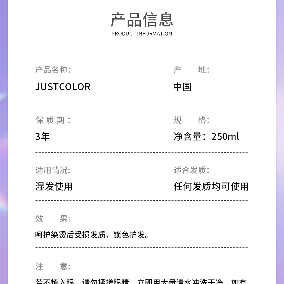 Product Name JUSTCOLOR尊色焕彩洗发水