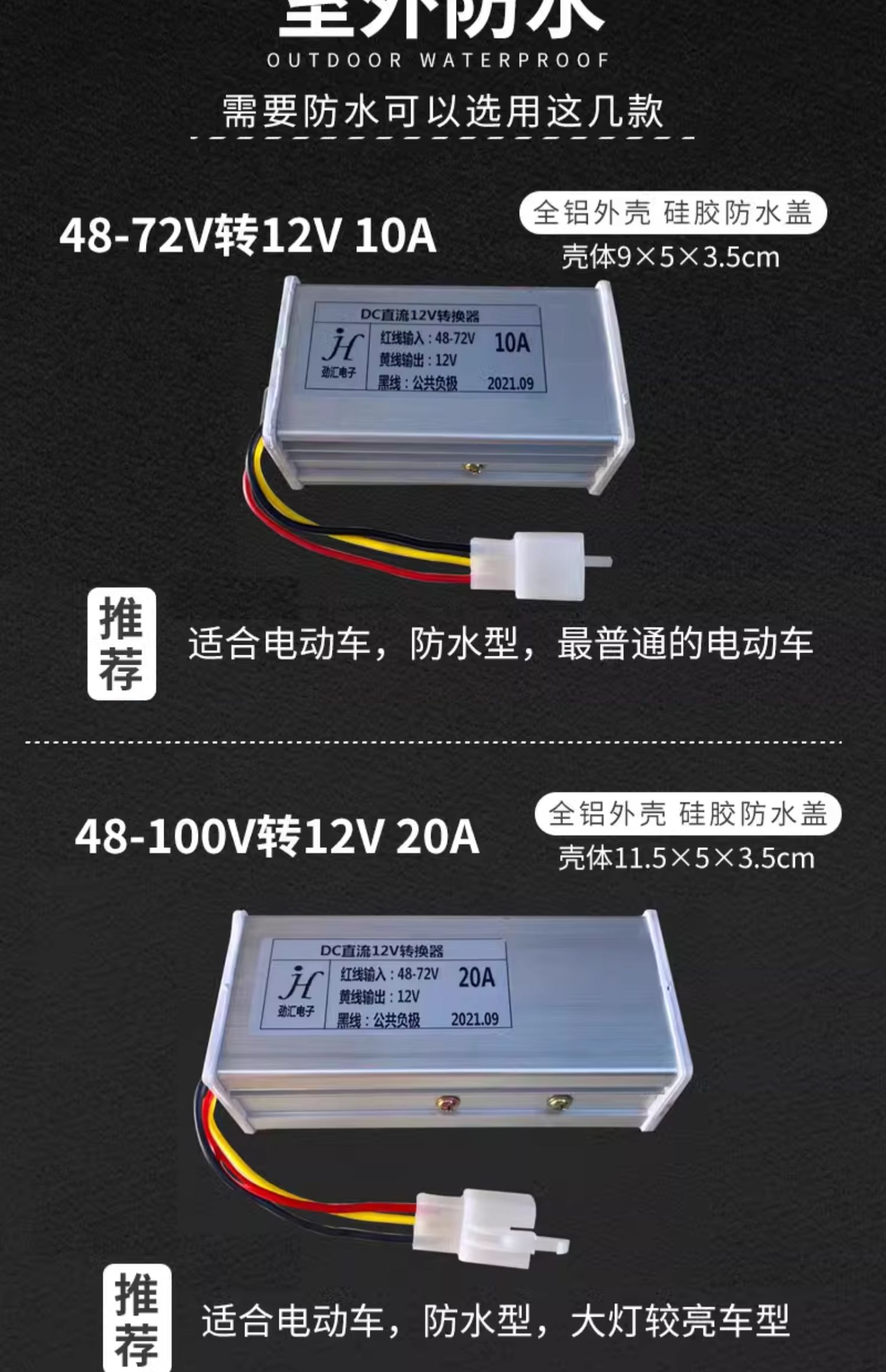 Electric vehicle voltage reduction DC current DC12V transformer converter 48v60V72 glue injection waterproof conversion 10A