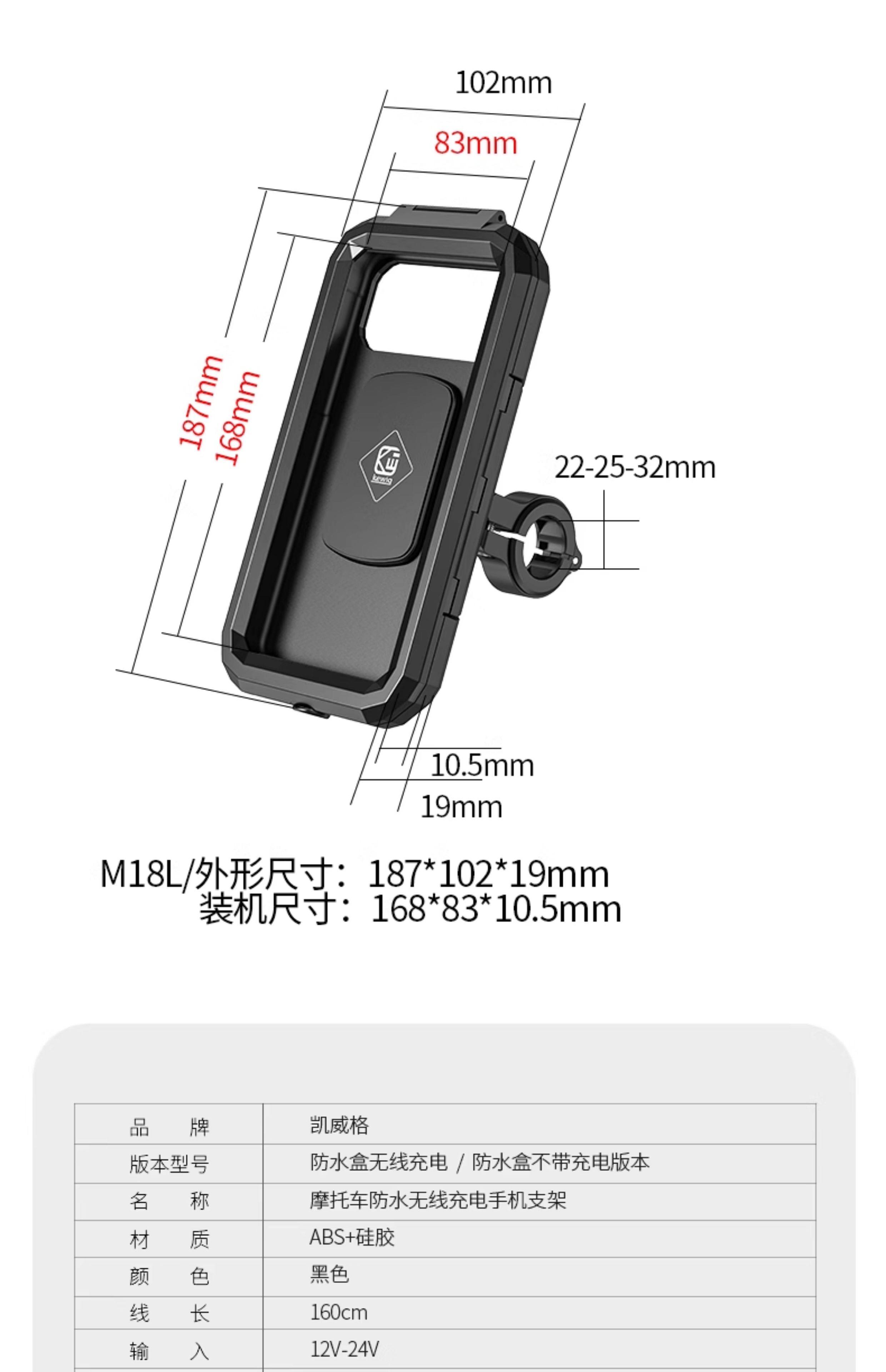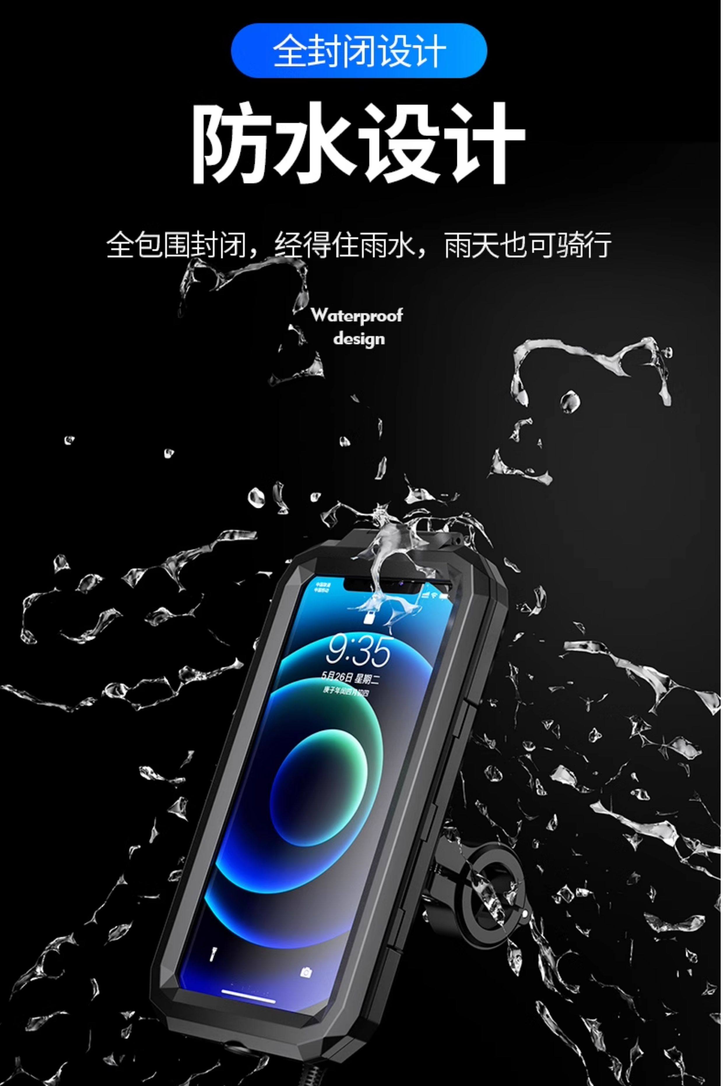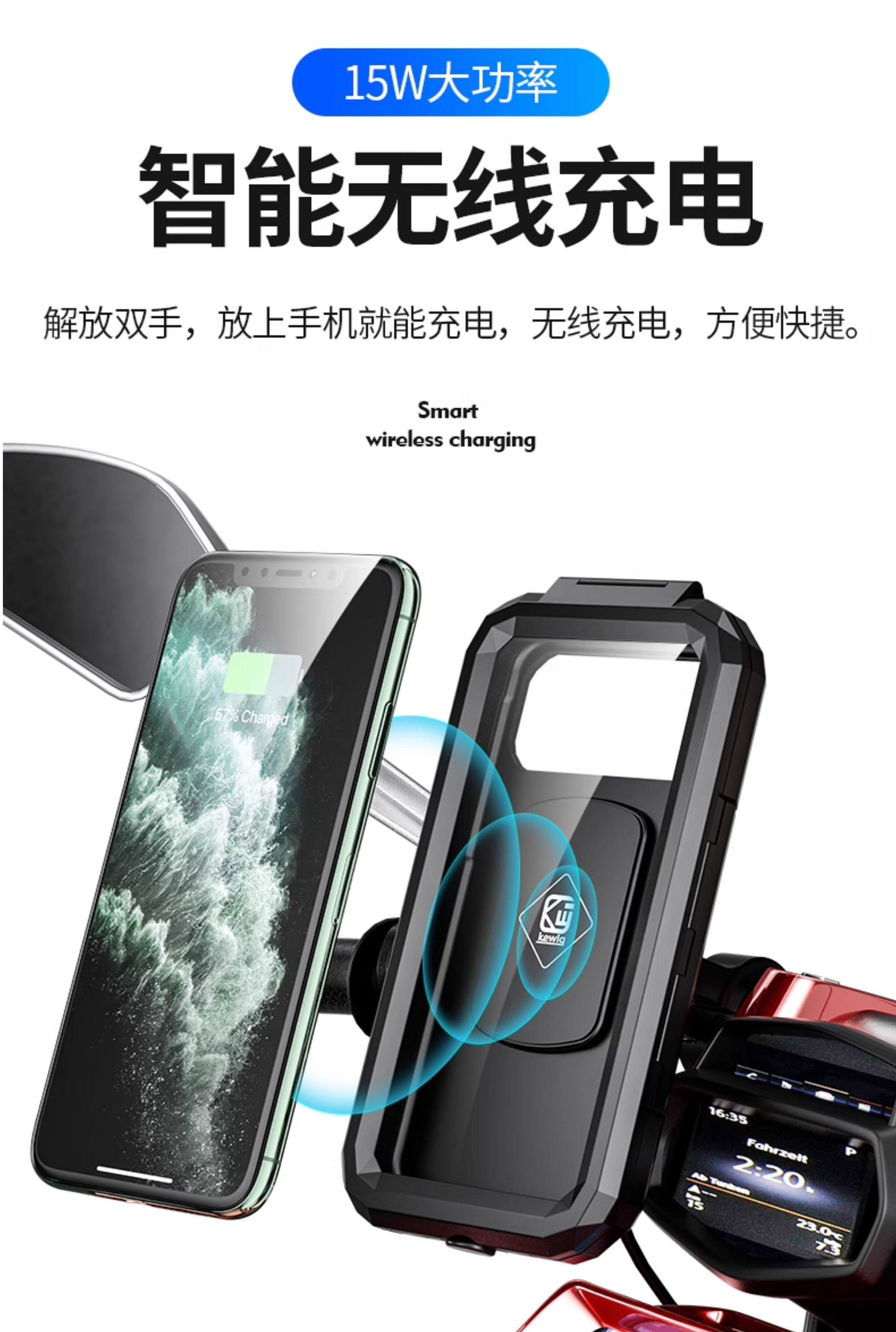 Kaiweige motorcycle waterproof mobile phone holder motorcycle electric vehicle navigation shockproof takeaway wireless charging bracket rainproof