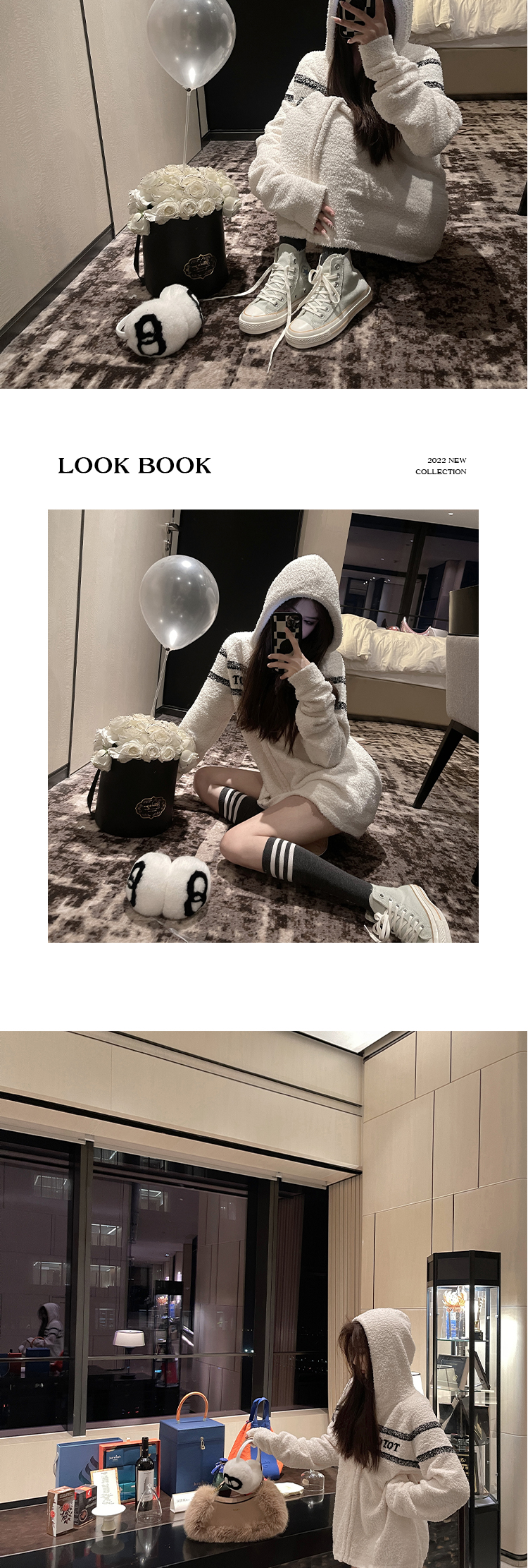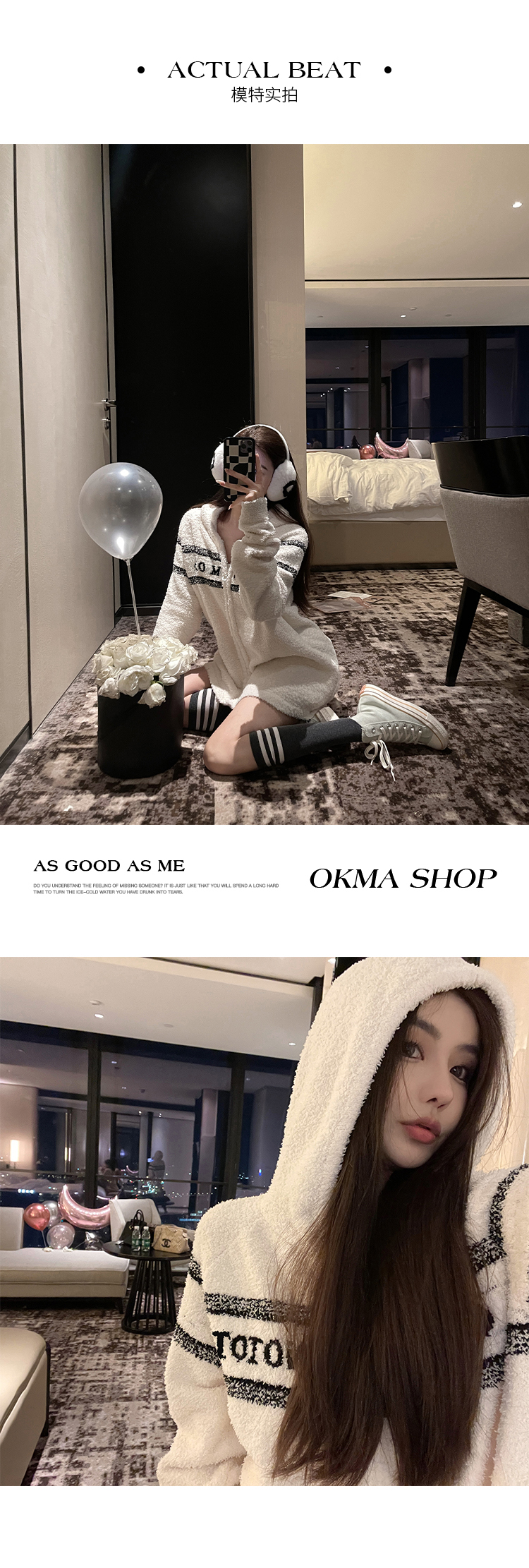 Okmashop Hooded Sweater Jacket for Women, Cardigan for Outer Wear, Autumn Lazy Style, High-End Soft and Fluffy Knitwear