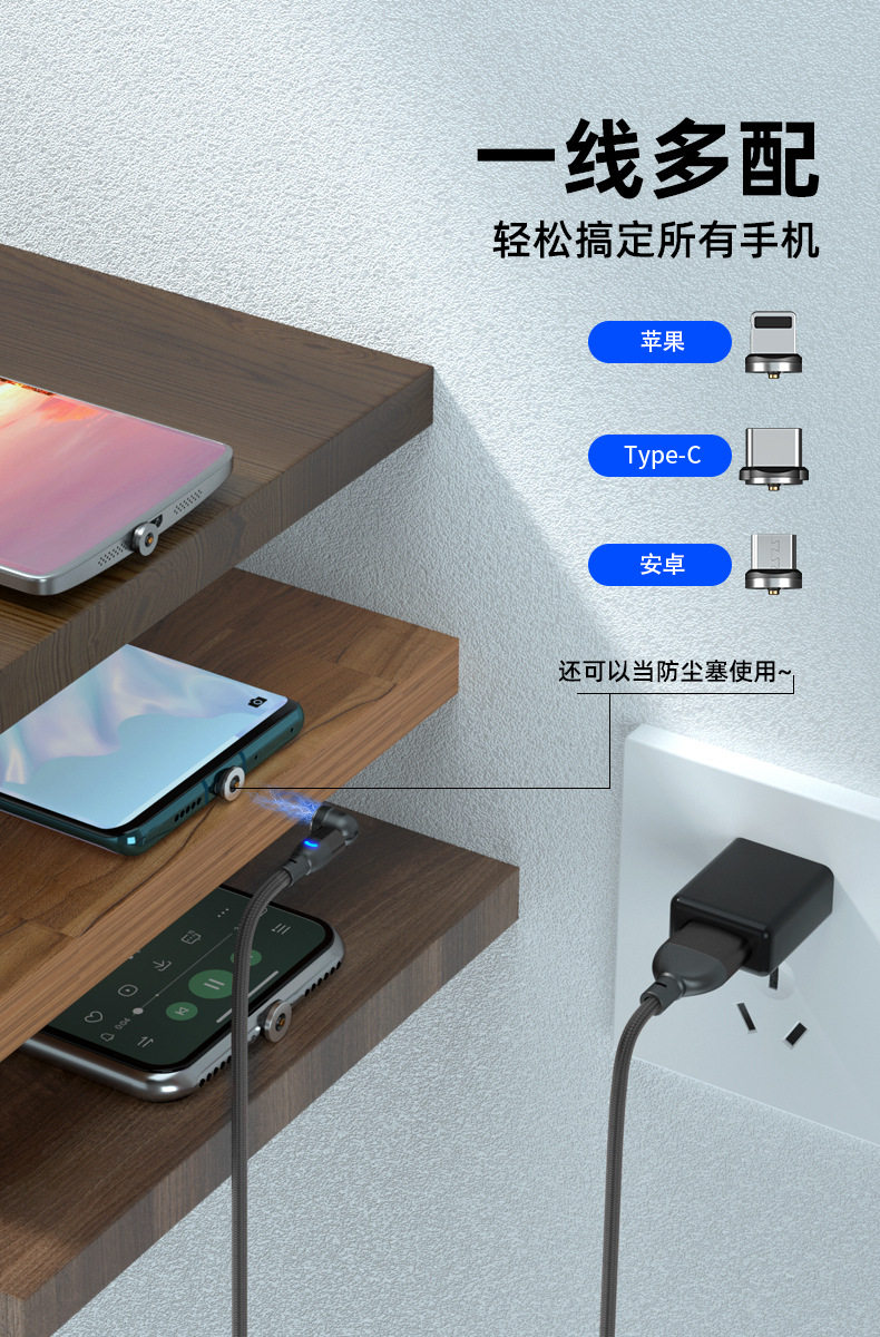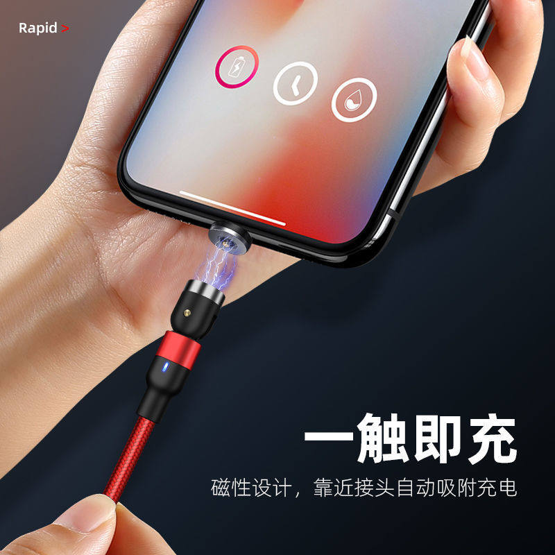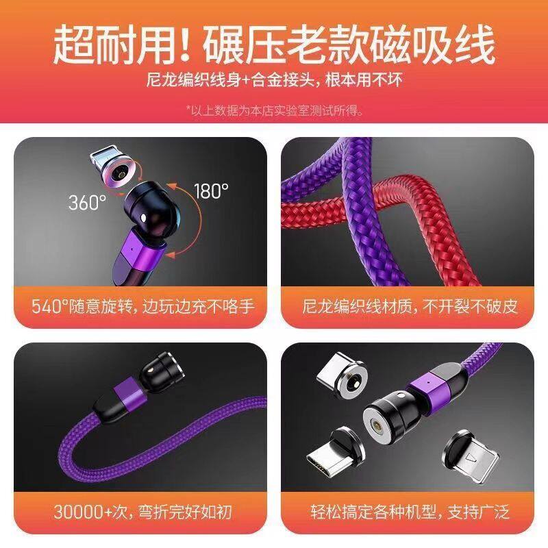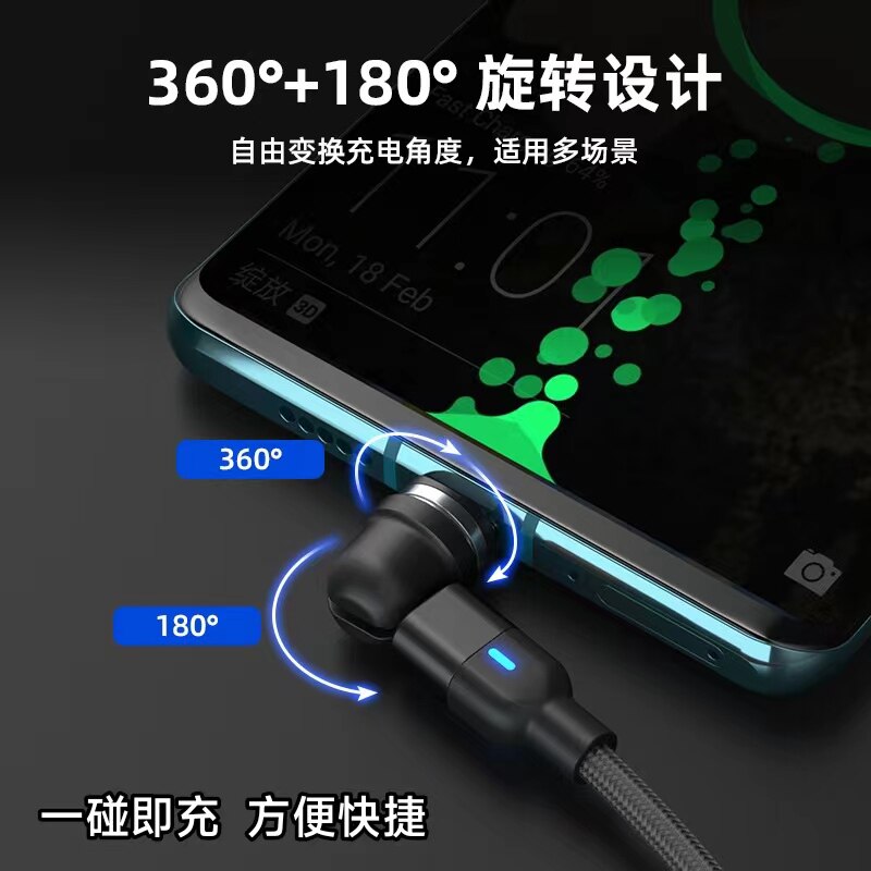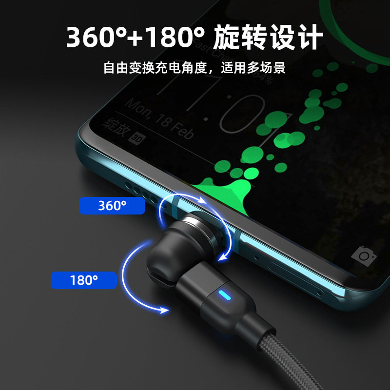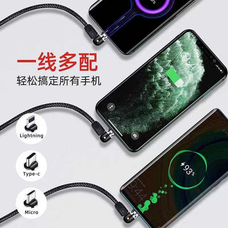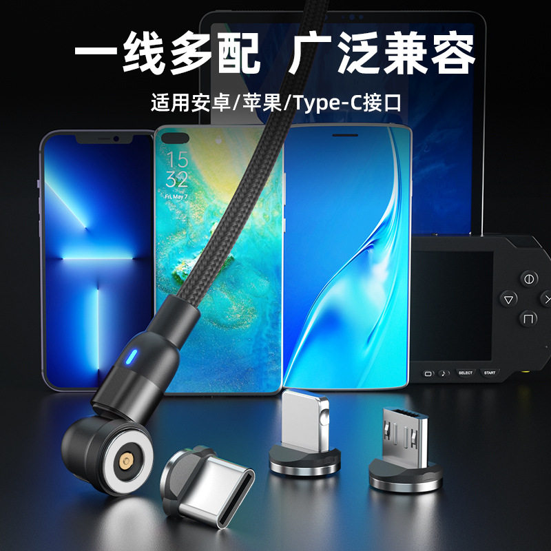 Magnetic Data Cable with 540-Degree Rotation for Car Wireless Charging, One-To-Three for Android and Apple, Angled Three-In-One Magnetic Charging Cable, 180-Degree Universal for Tablets, Type C Multi-Functional Magnetic Cable