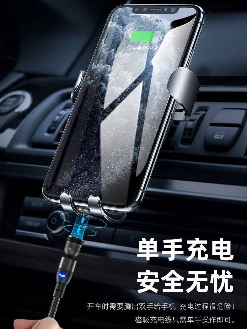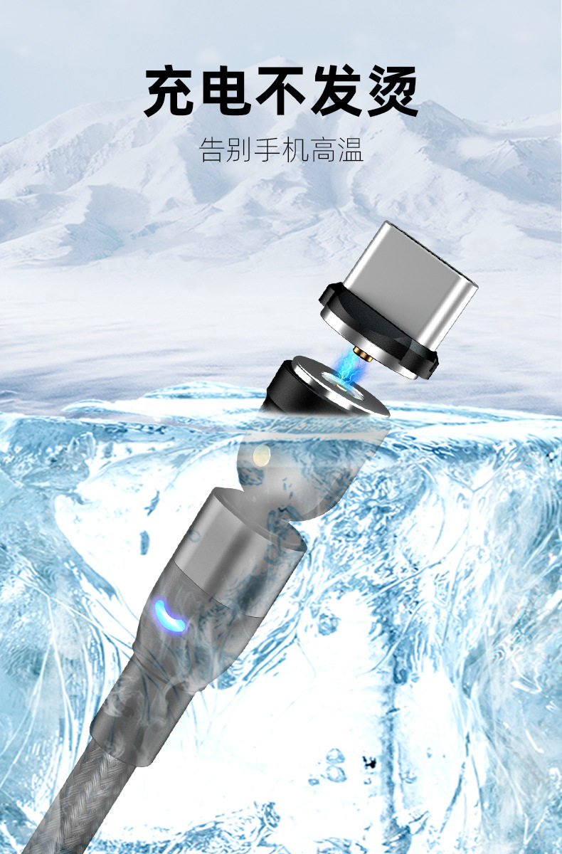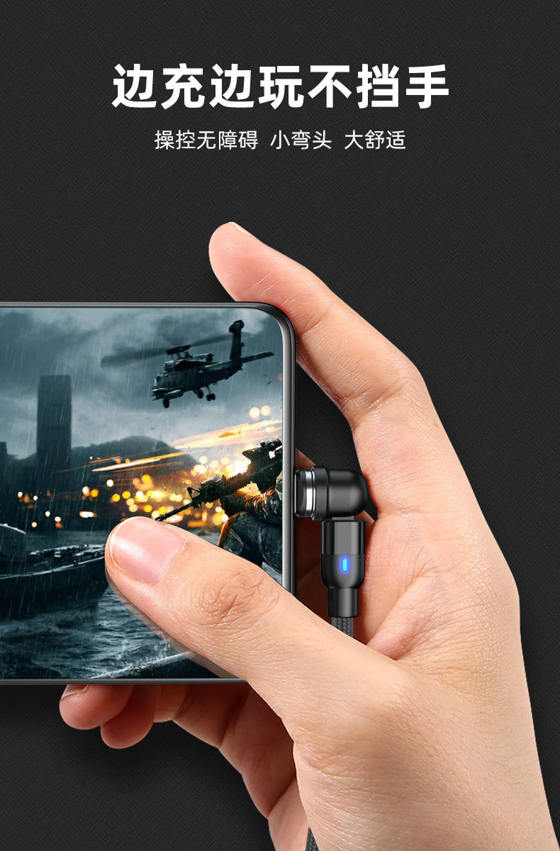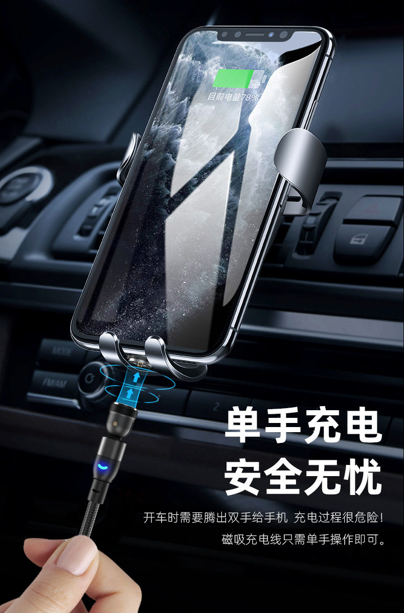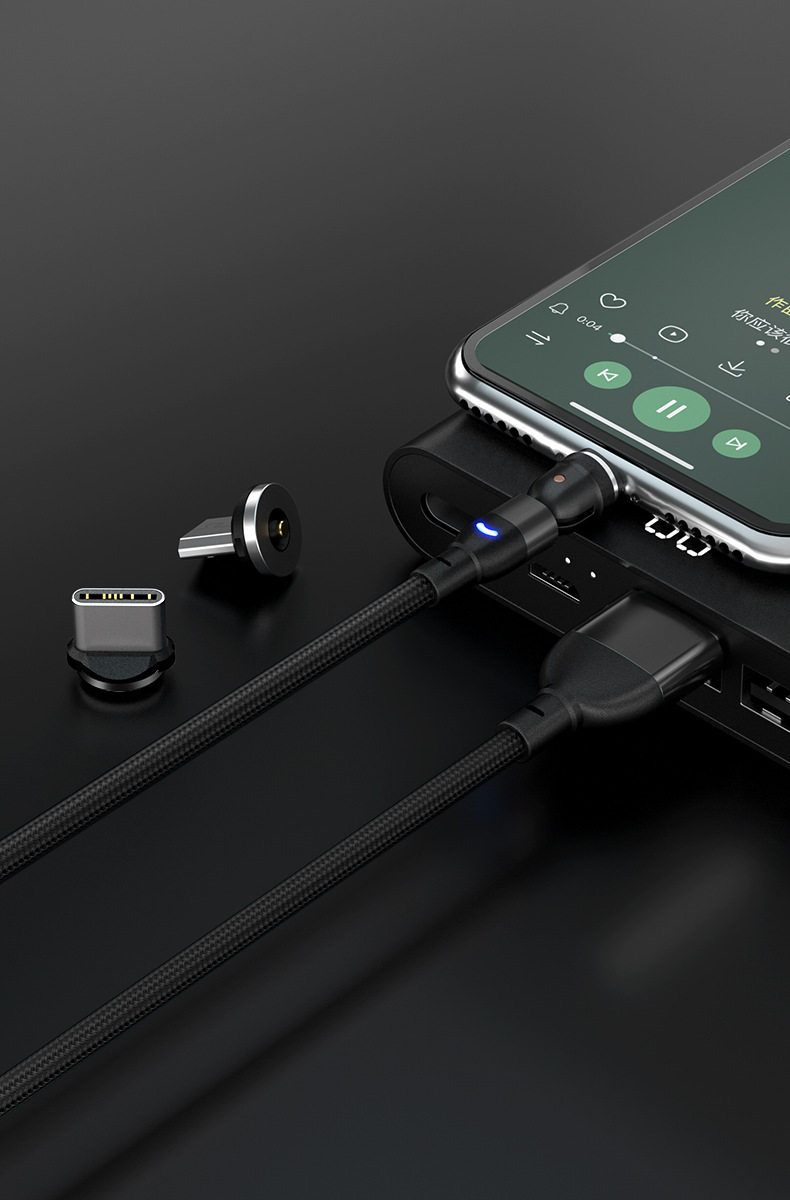 Magnetic Data Cable with 540-Degree Rotation for Car Wireless Charging, One-To-Three for Android and Apple, Angled Three-In-One Magnetic Charging Cable, 180-Degree Universal for Tablets, Type C Multi-Functional Magnetic Cable