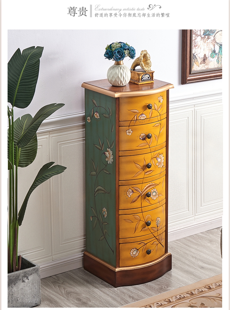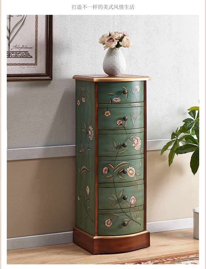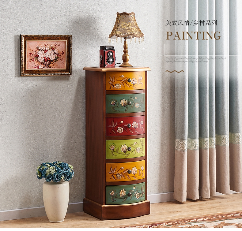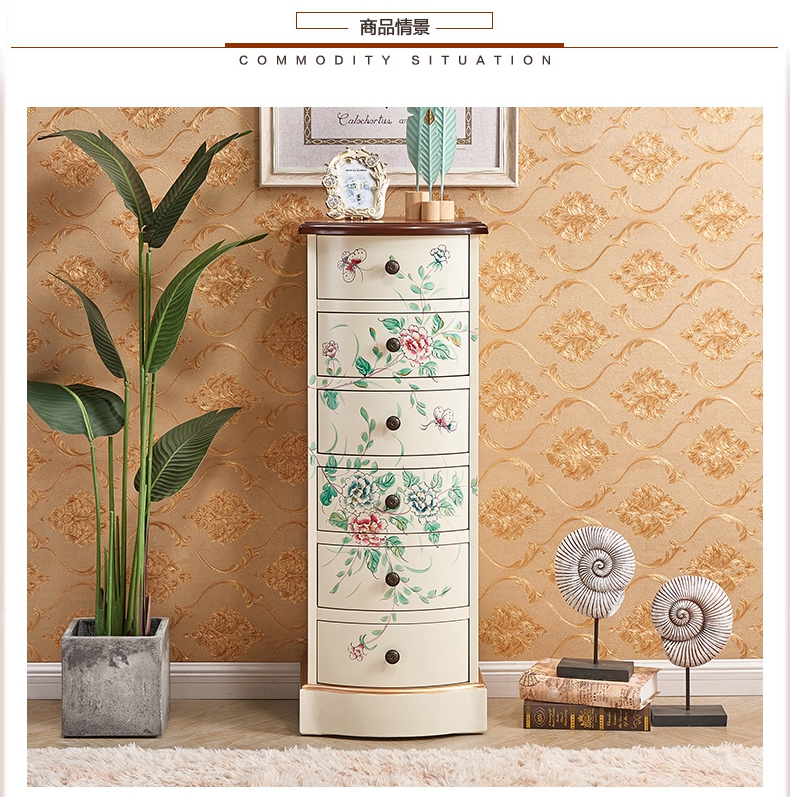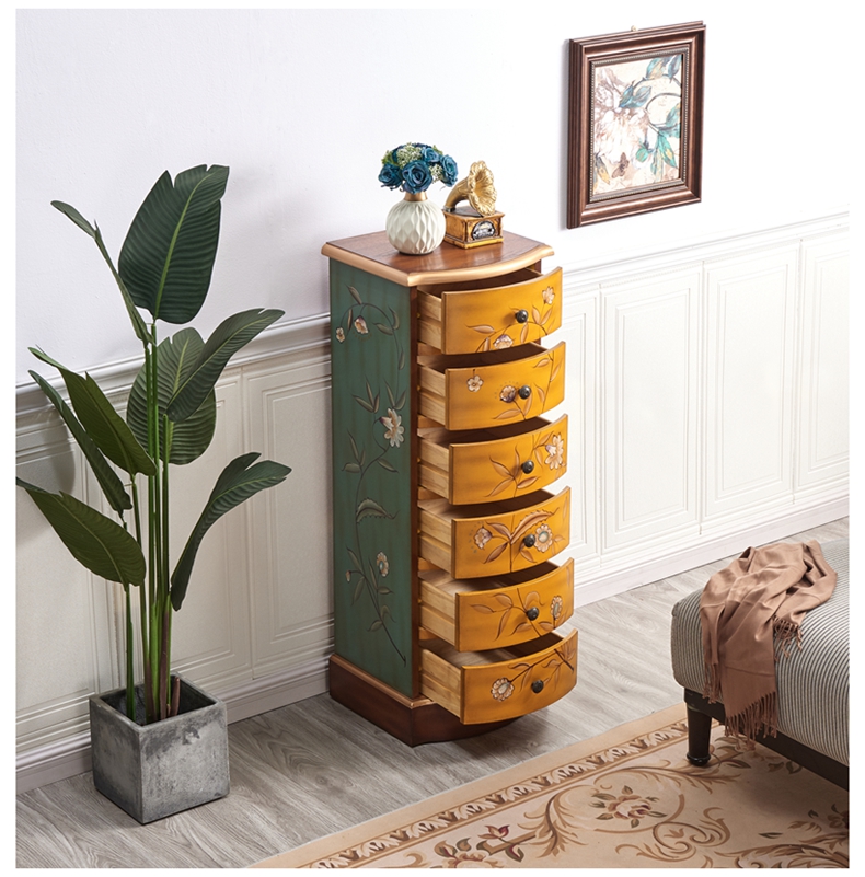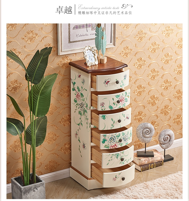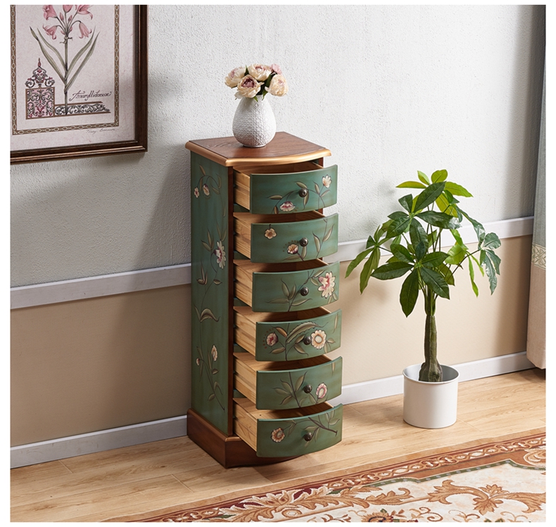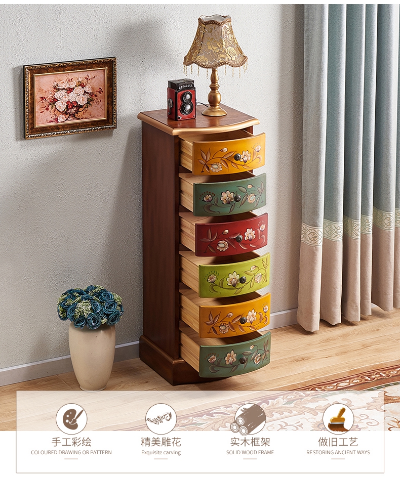 Vintage Painted 6-Drawer Sideboard Solid Wood Storage Drawer Cabinet European and Chinese Style Narrow Sideboard 40cm Wide Ready-To-Assemble
