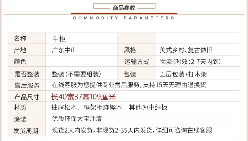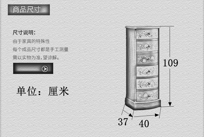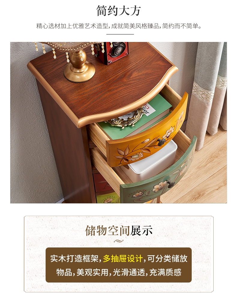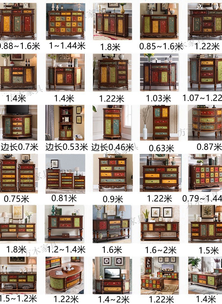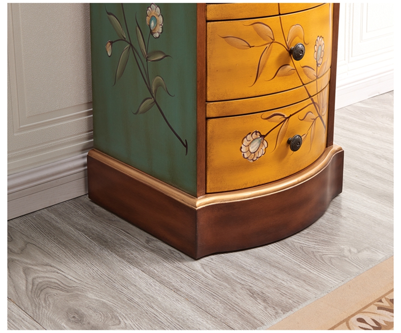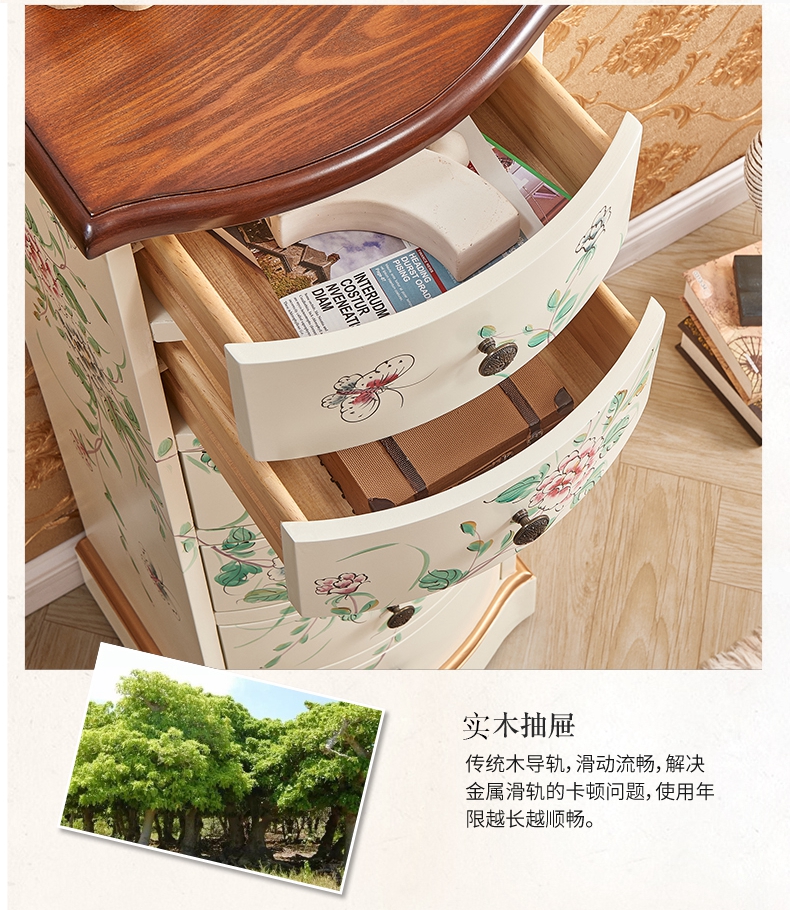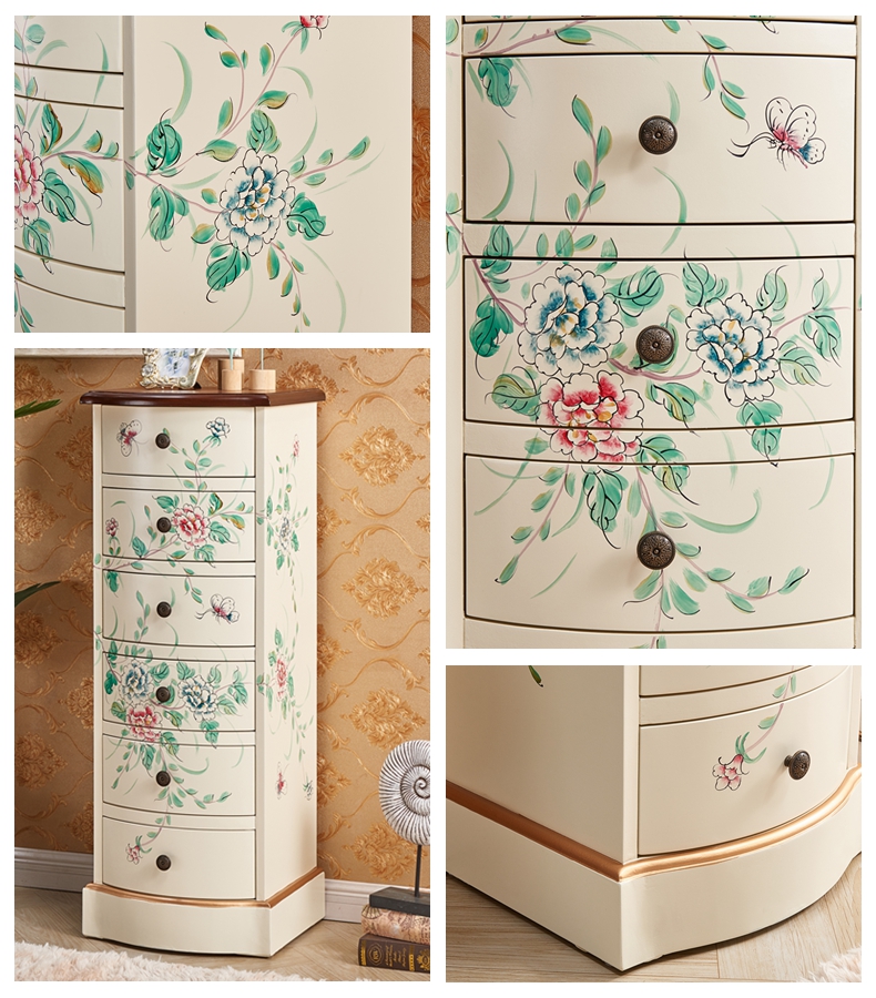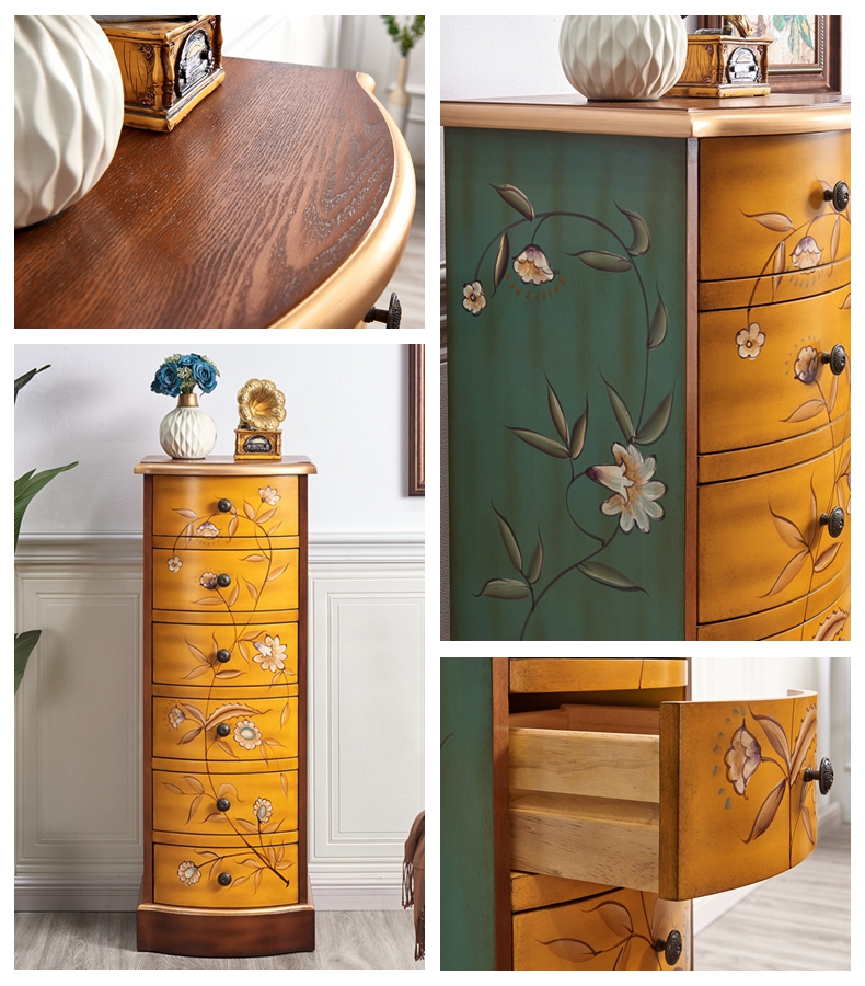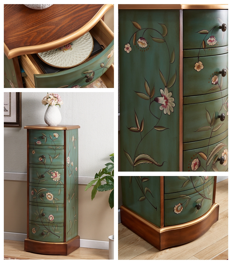 Vintage Painted 6-Drawer Sideboard Solid Wood Storage Drawer Cabinet European and Chinese Style Narrow Sideboard 40cm Wide Ready-To-Assemble