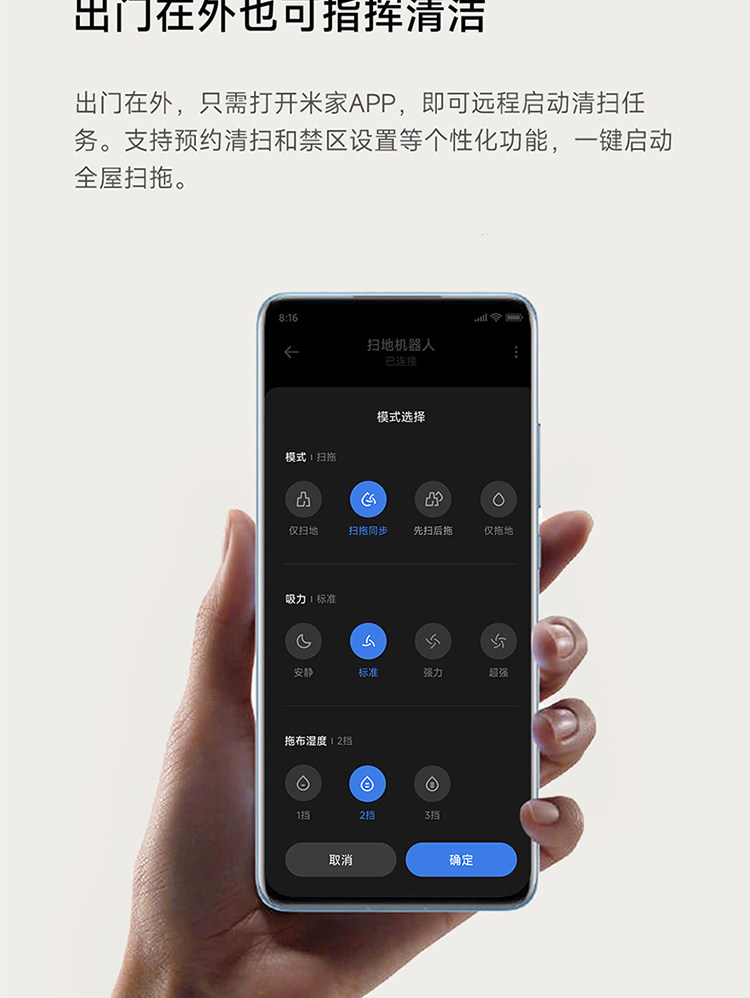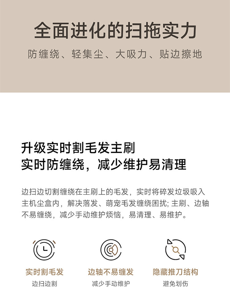 Additional features Power off and sweeping,APP control,Anti-hair tangle